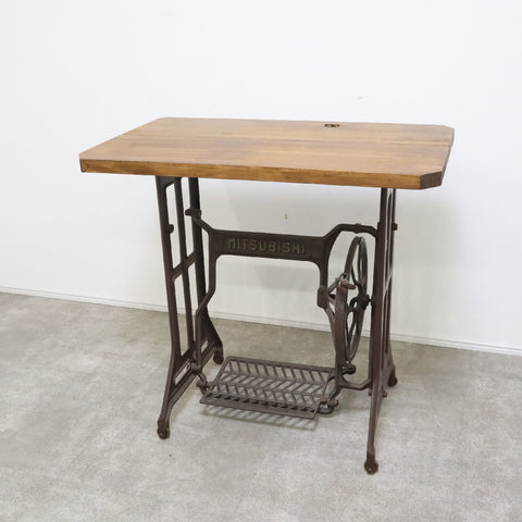 | ヴィンテージのミシン脚に木天板を組合わせたテーブルです。 ミシン脚は重量もあるのでしっかり安定します。キャスターも付いているので少しの移動なら簡単にできます! アンティークチェアと組み合わせたお茶スペース、サイドテーブルや店舗什器としていかがでしょうか。 使用した際の汚れ・キズ、がありますが、がたつきはなく、まだまだ問題なくご使用頂けるかと思われます。 |