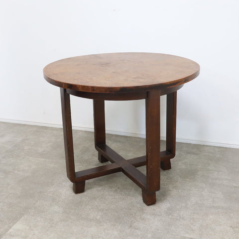 | 素朴な質感が感じられるラウンドテーブルです。 木目が互い違いに配置された天板が他のものと一味違い印象的です。 4本の足が組み合わさっており、大変しっかりとした作りです。 リビングのティースペースにアンティークチェアと組み合わせてもぴったりです! 使用した際の汚れ・キズ、がありますが、がたつきはなく、まだまだ問題なくご使用頂けるかと思われます。 |