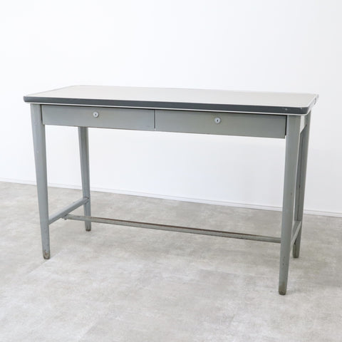 スチールデスク 作業机 ヴィンテージ オフィスデスク 長机 昭和 鍵無し No.1【04C2204005】