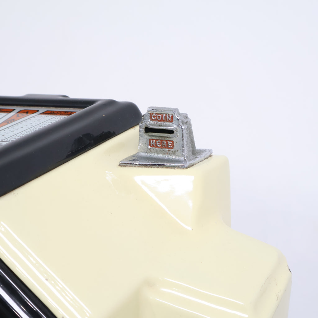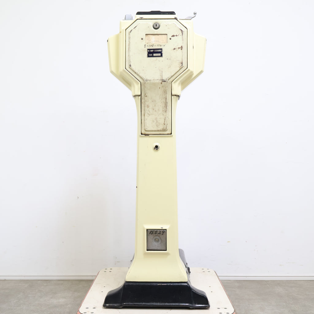 かつては商業施設やデパートの一角で使われていたような、ノスタルジックな存在感。 現在は動作しませんが、ディスプレイや店舗什器としては抜群のインパクトがあります。 アイボリー×ブラックのツートンカラーが目を惹き、インテリアとしてもおしゃれ。 ショップの演出、カフェの装飾、フォトスポットなどにもおすすめです。