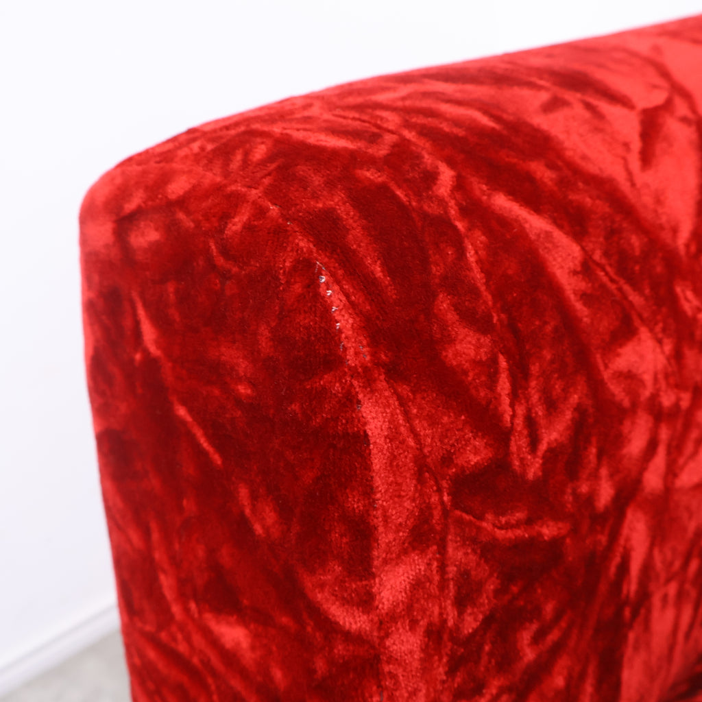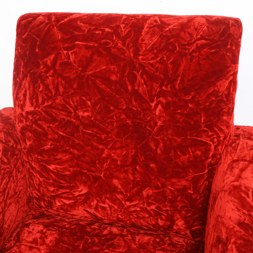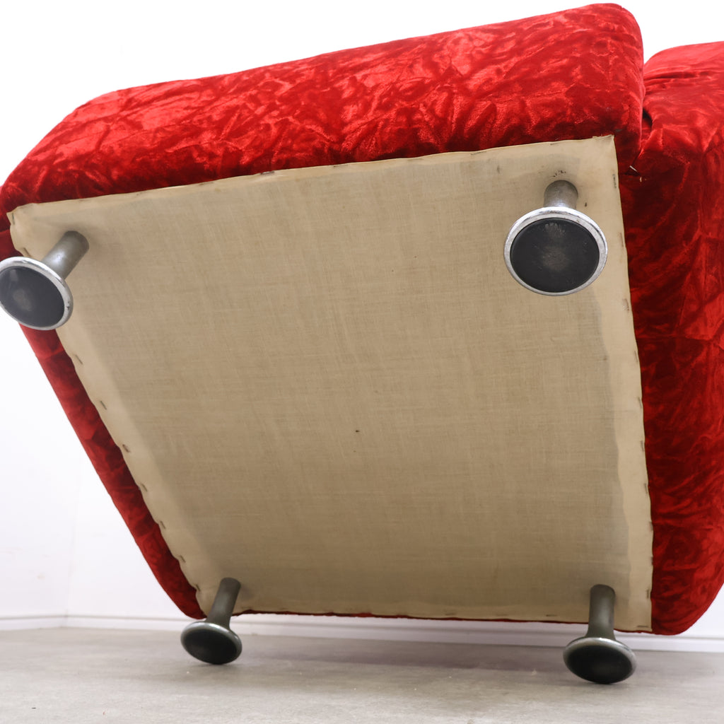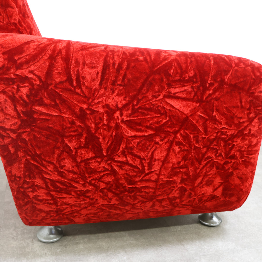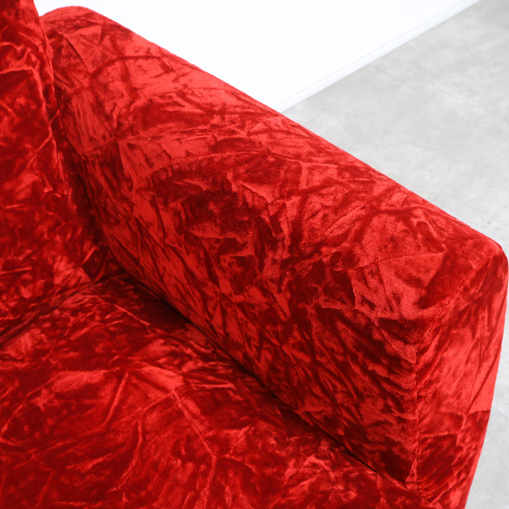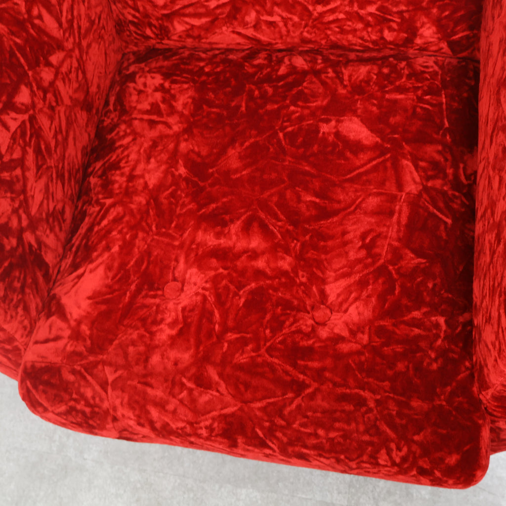 深みのあるレッドベルベットが印象的な、昭和レトロの一人掛けソファ。