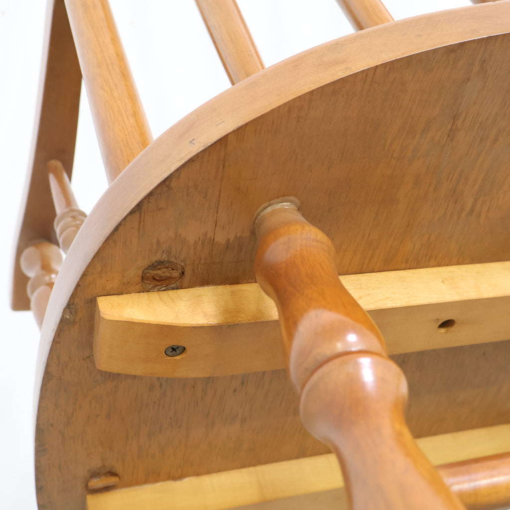 背もたれから座面にかけての曲線の美しさや、垂直に並ぶスピンドル軽快なデザインが特徴。どこか懐かしく温かみのある佇まいは、北欧やカントリースタイルとも調和します。 マルニが得意とする曲木技術を活かし、脚部にも美しいカーブが施されており、揺れのストロークが心地よく設計されています。