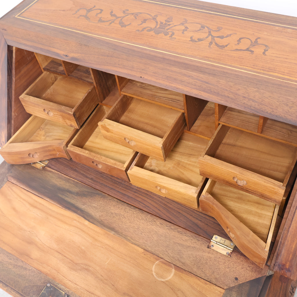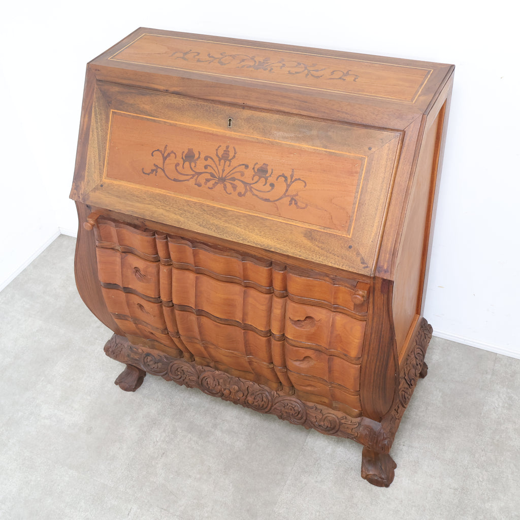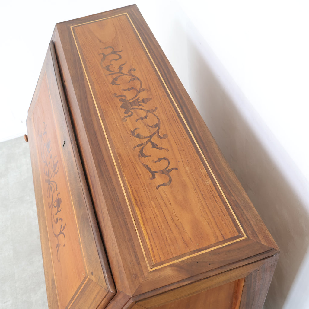前面のライティングビューロには、美しい象嵌装飾が施され、上品な華やかさを演出しています。