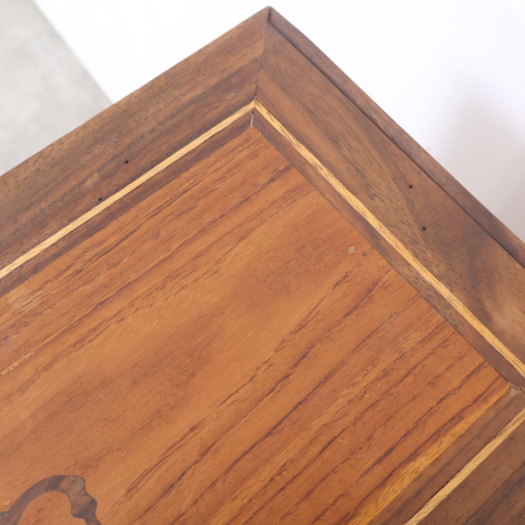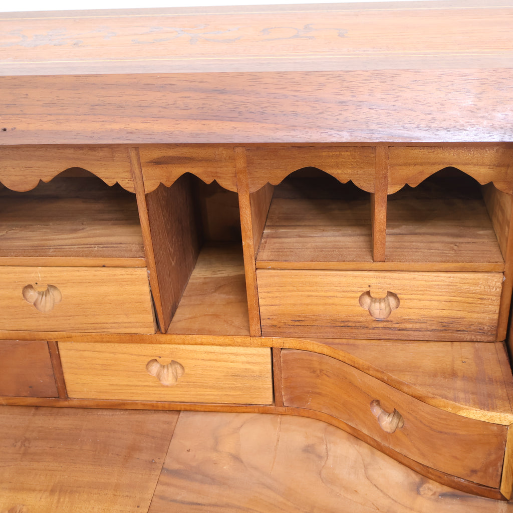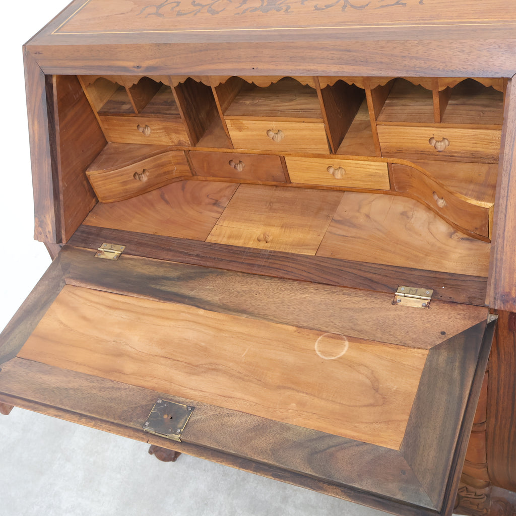 前面のライティングビューロには、美しい象嵌装飾が施され、上品な華やかさを演出しています。