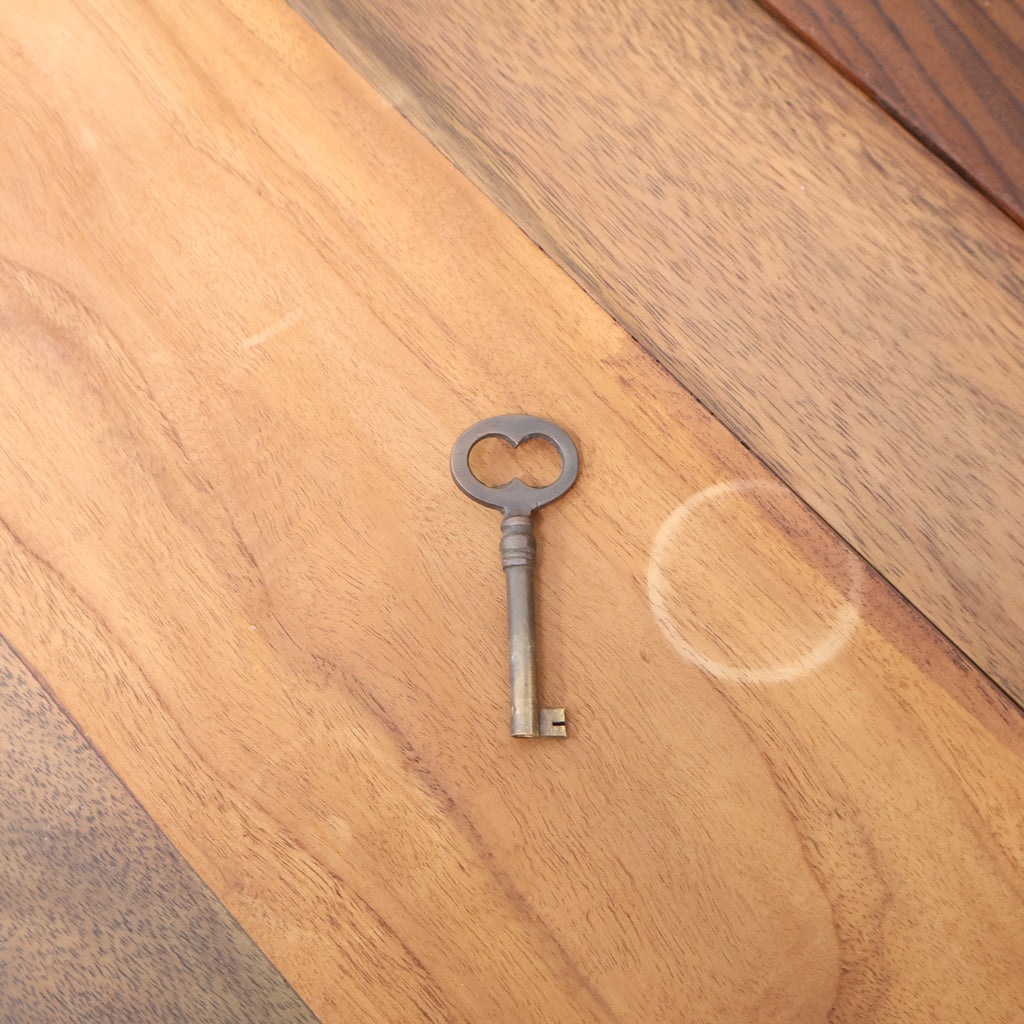 全体的にキズや使用感があり、鍵は付属していますが天板の反りにより施錠できません。