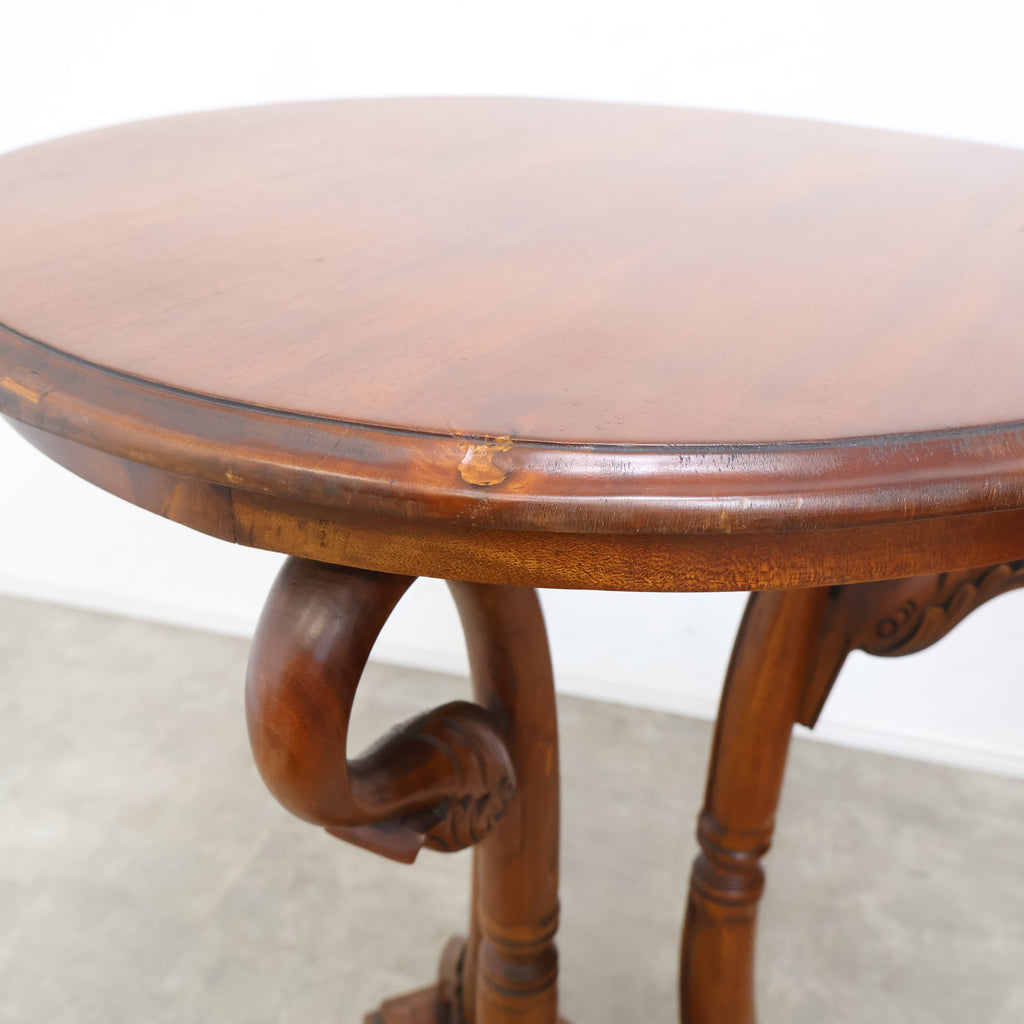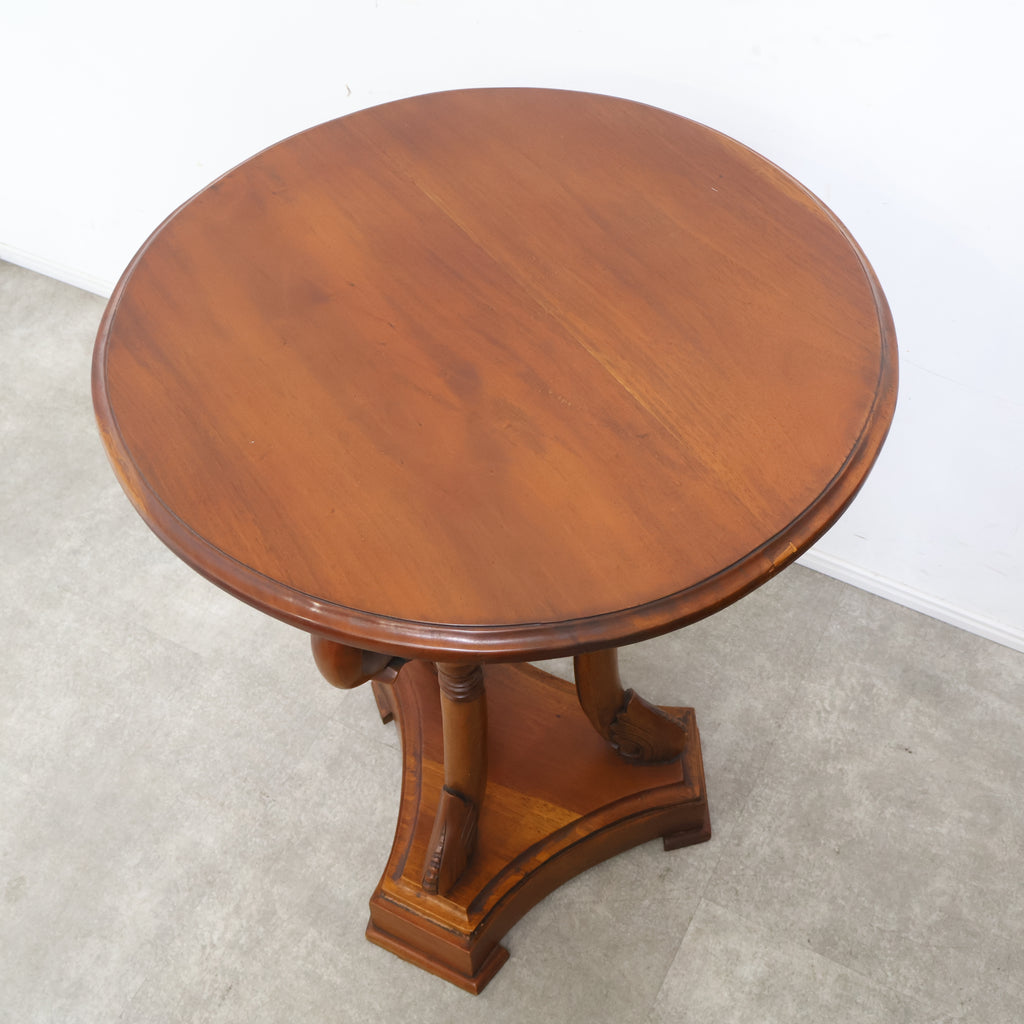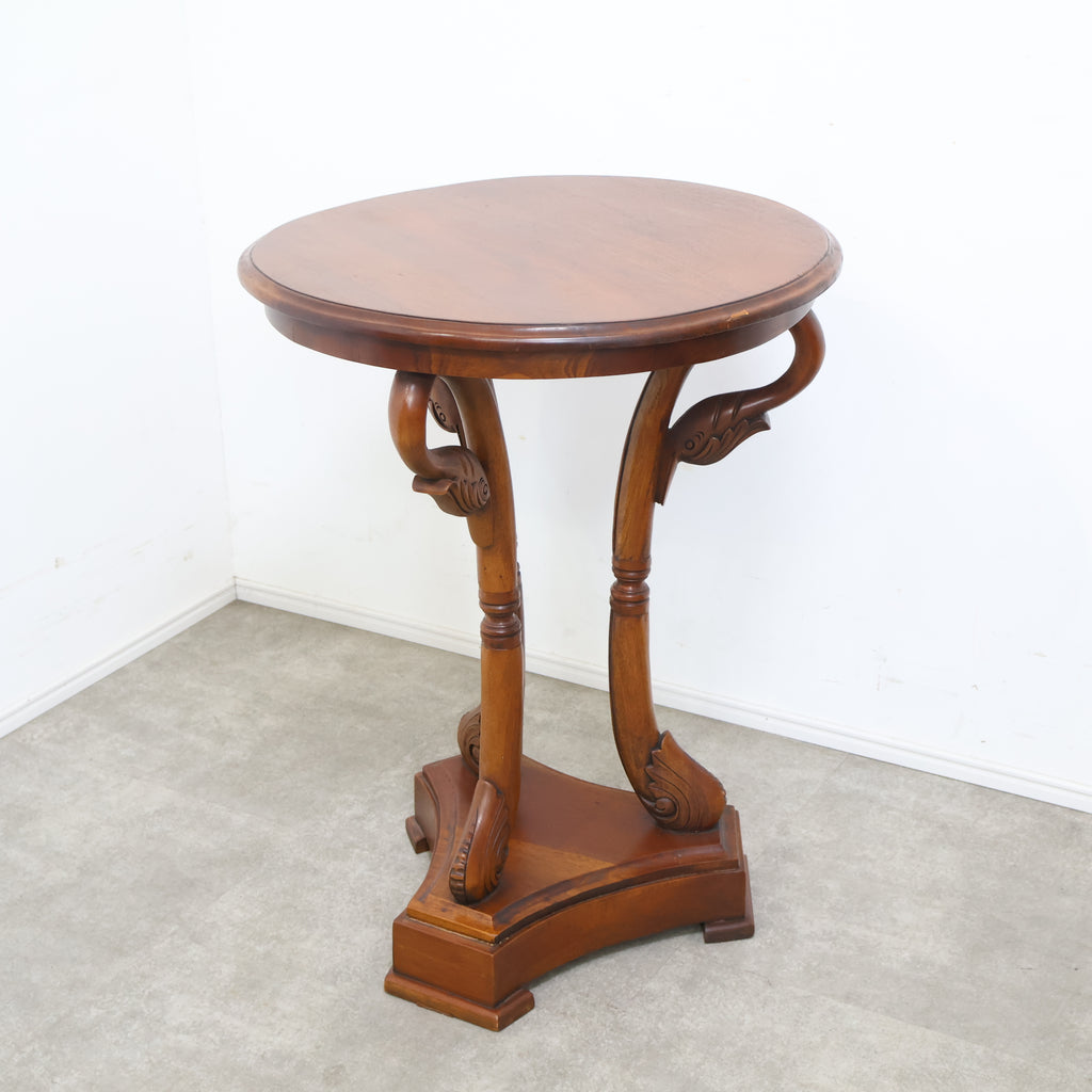優雅な曲線と豪華な彫刻が美しい、クラシックなラウンドサイドテーブルです。