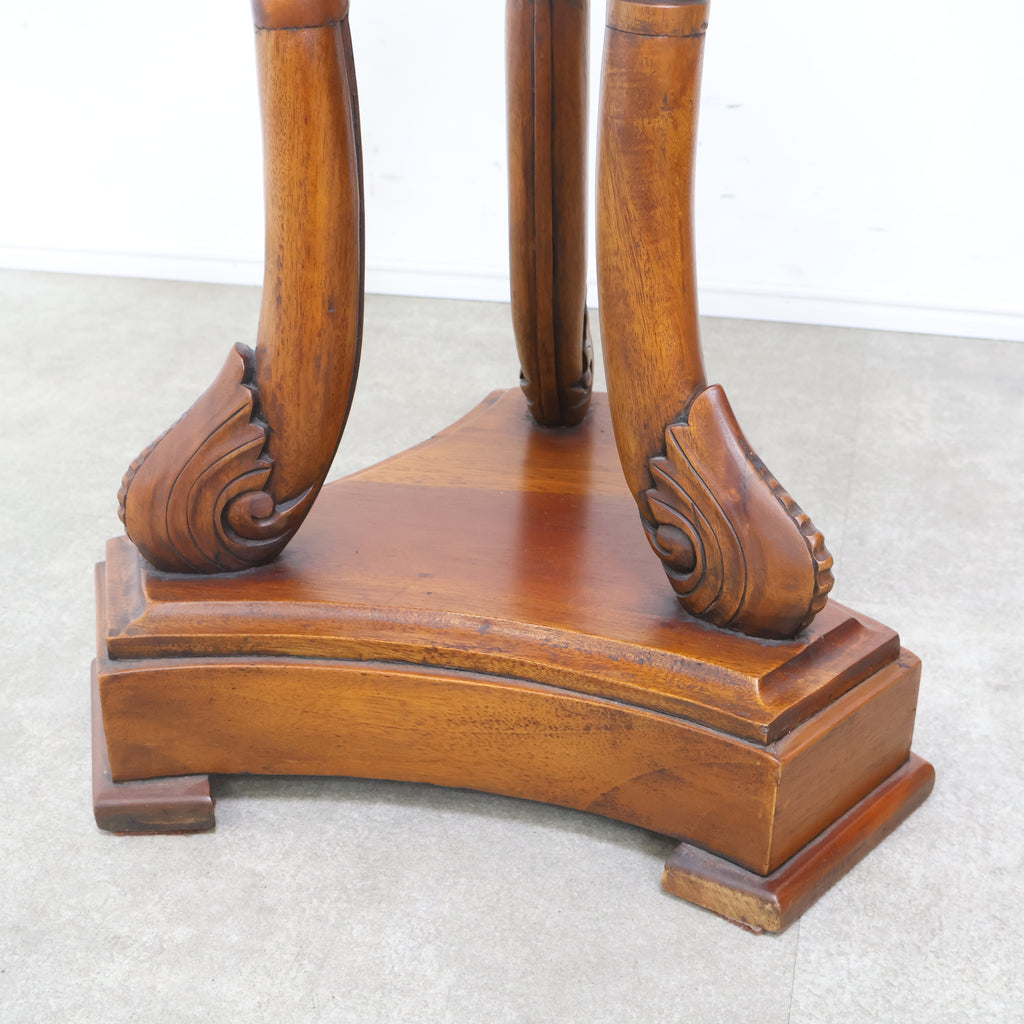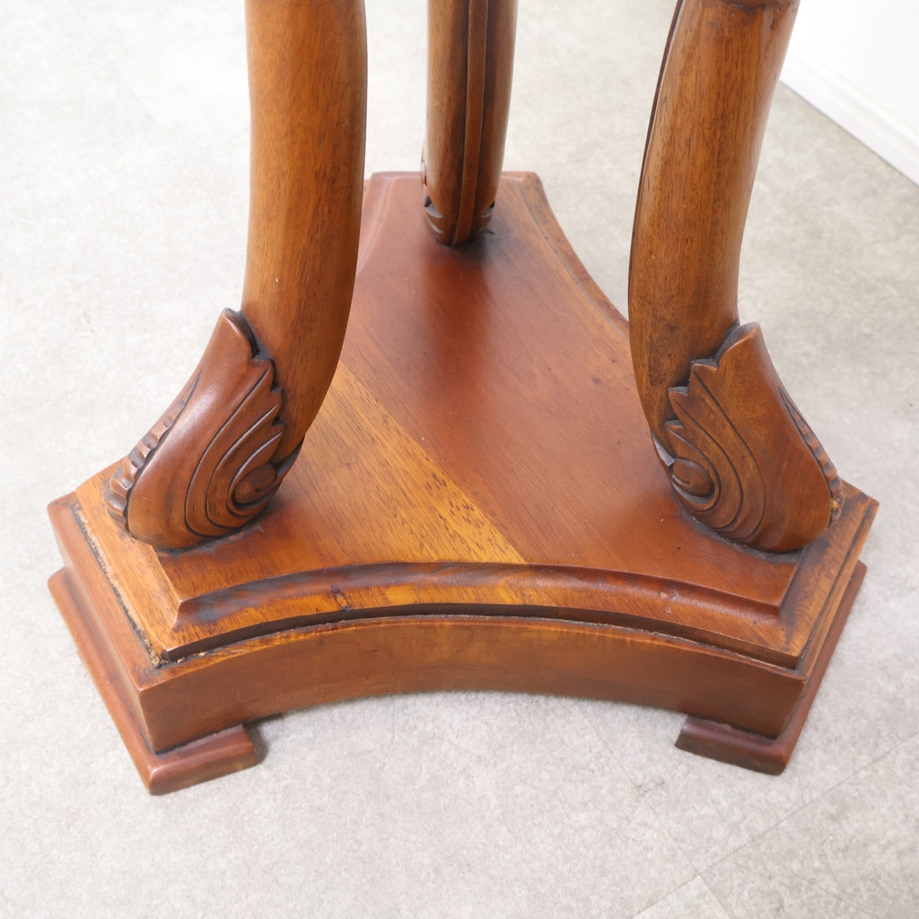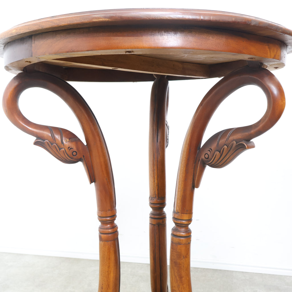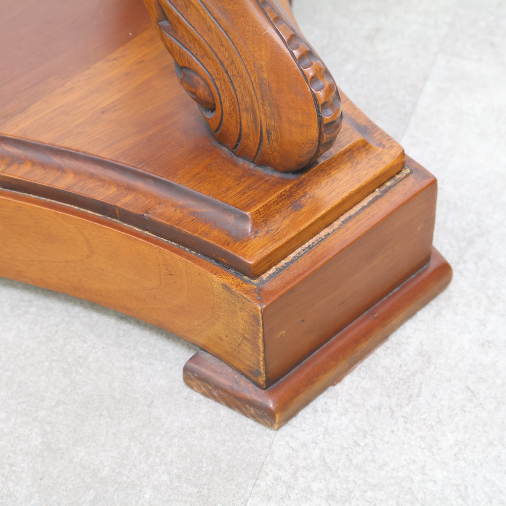 最大の特徴は、脚部に施された**スワン(白鳥)**を思わせる、見事な木彫り装飾です。優美なカーブを描く二本の脚が、このテーブルに比類ない芸術的な価値を与えています。