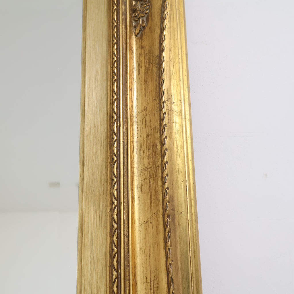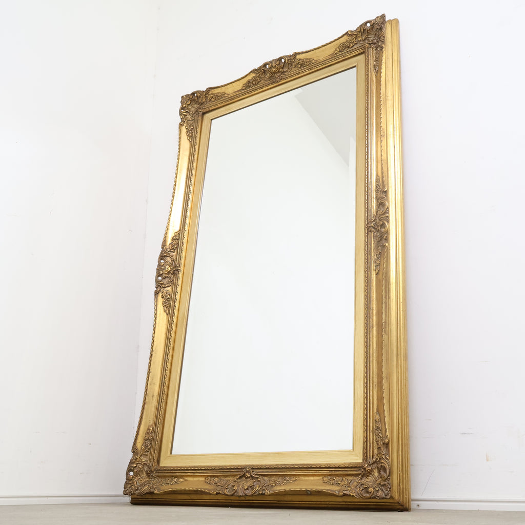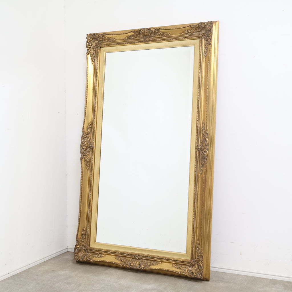 空間に圧倒的な存在感を添える、特大サイズの豪華なゴールドフレームミラーです。