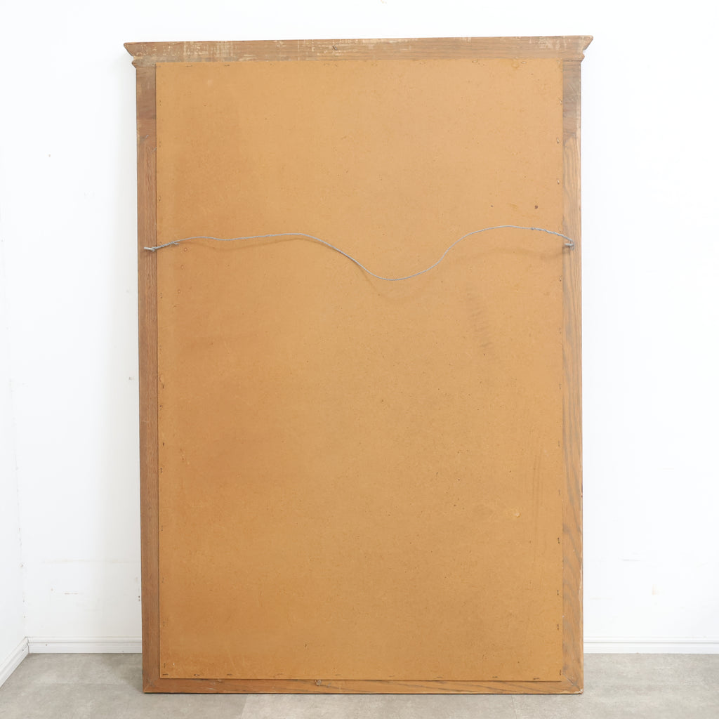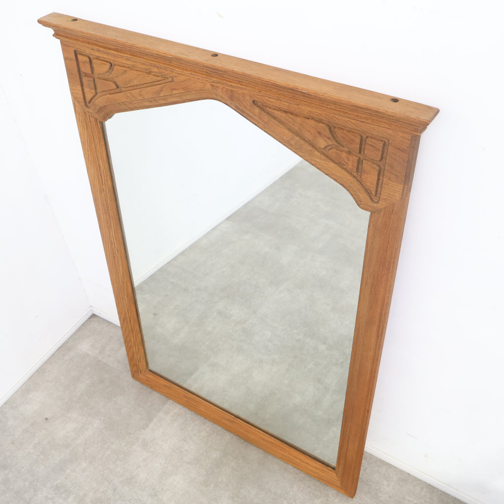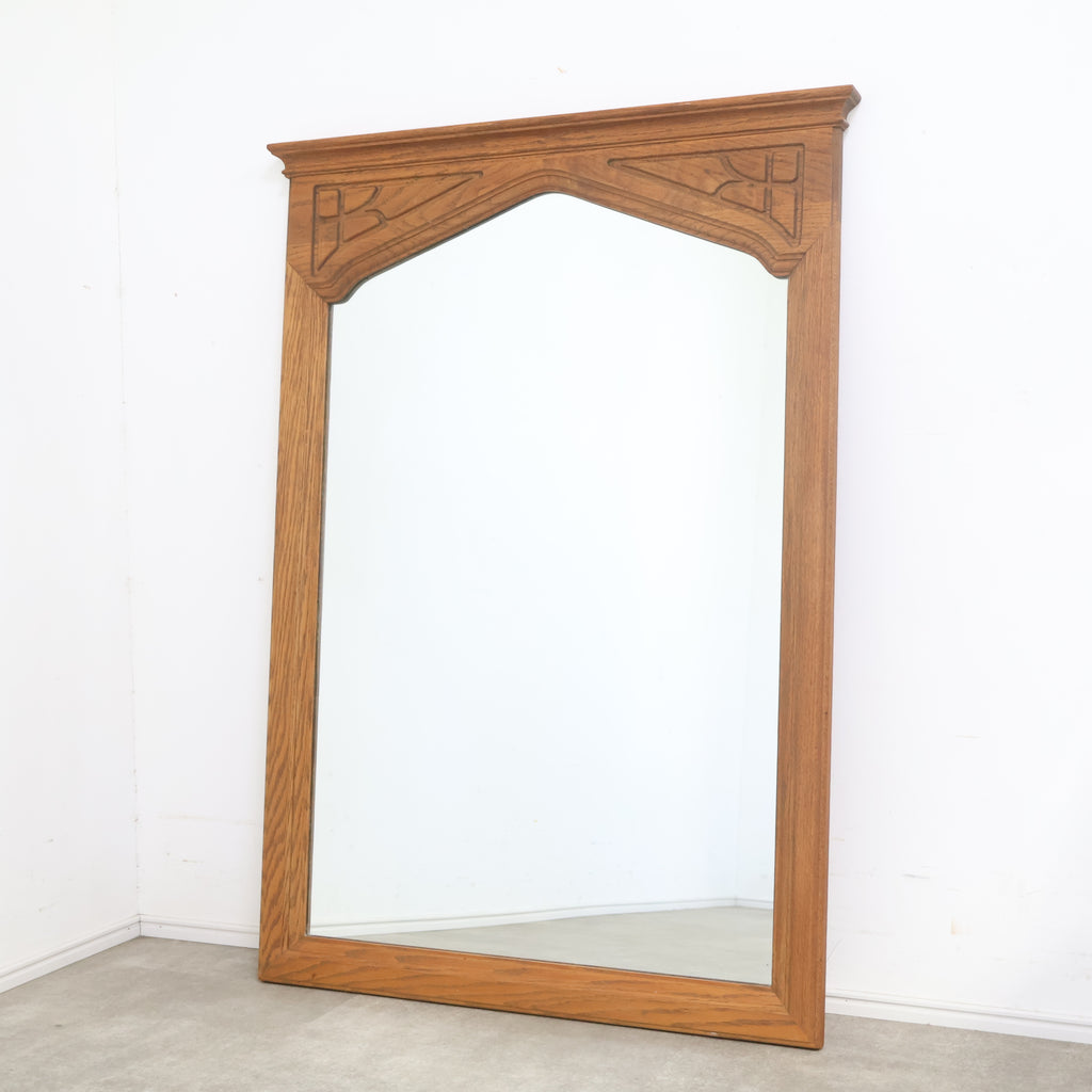 重厚な木製フレームが格調高い、ゴシック様式を思わせるデザインのヴィンテージウォールミラーです。