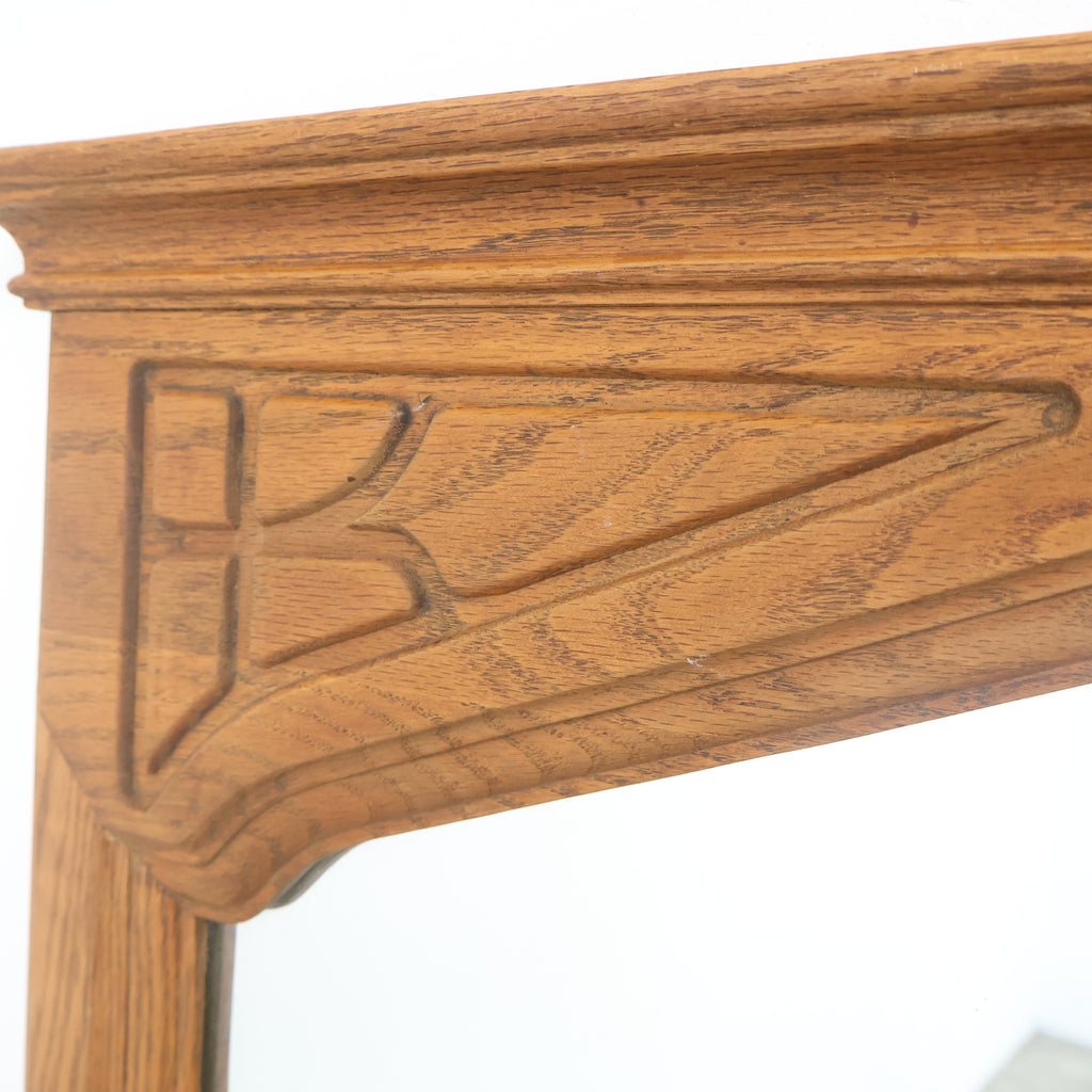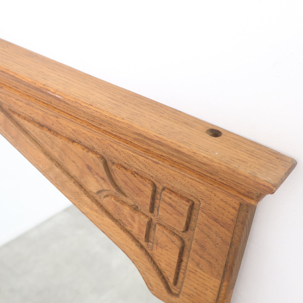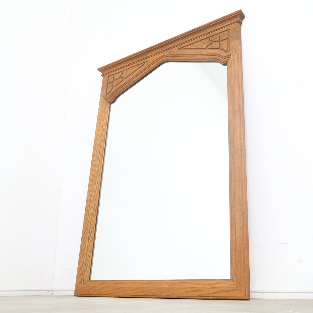 重厚な木製フレームが格調高い、ゴシック様式を思わせるデザインのヴィンテージウォールミラーです。
