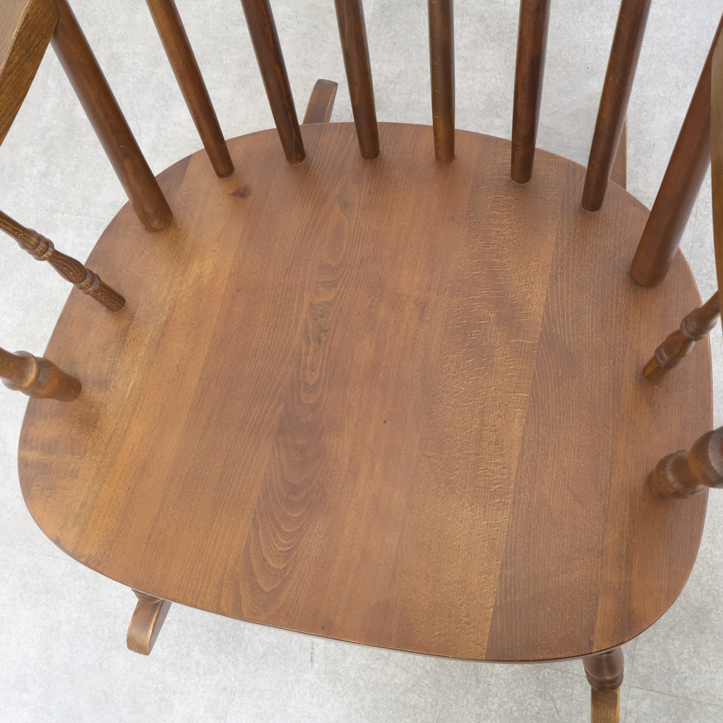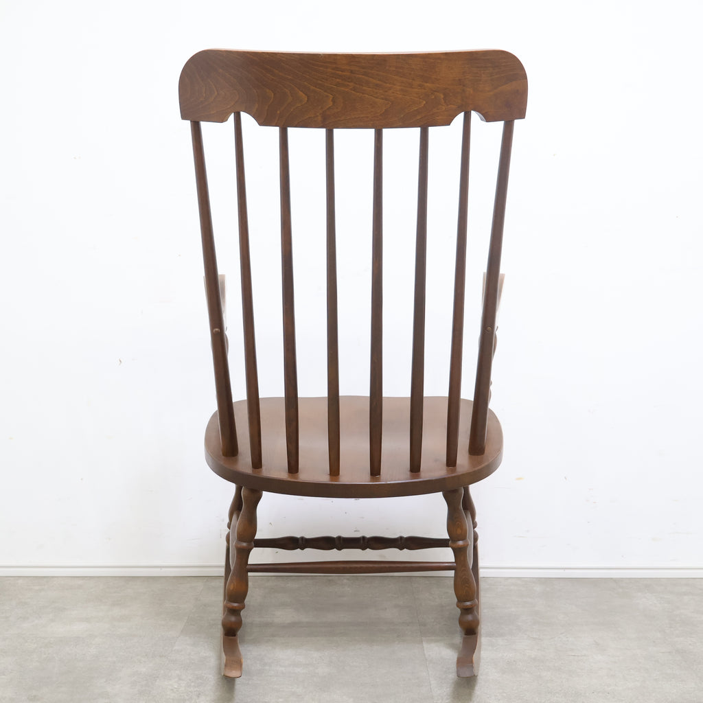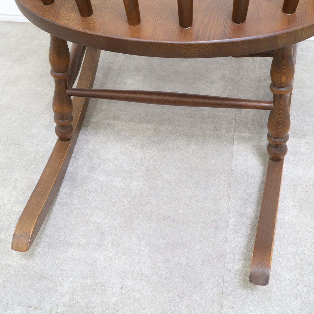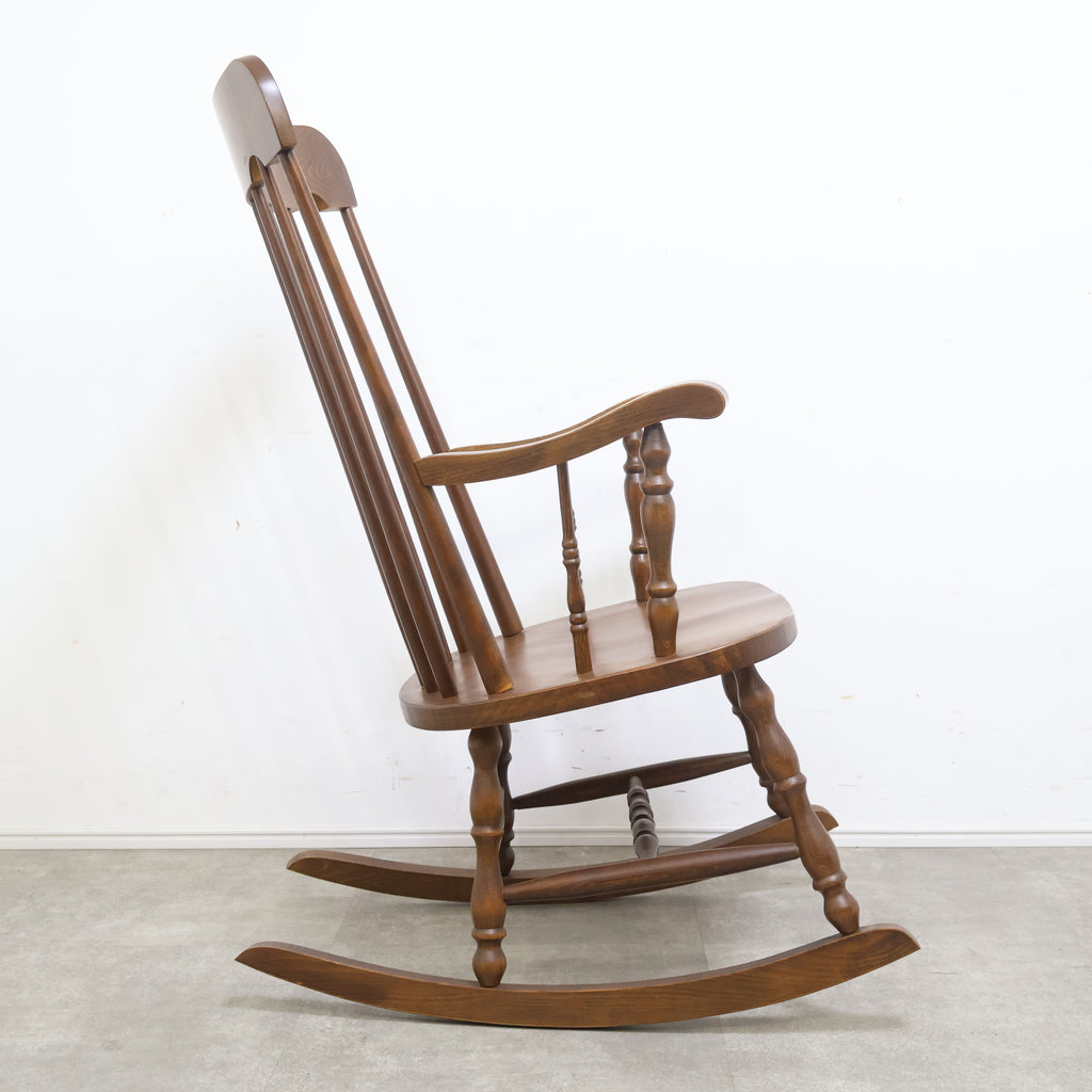 厳選された**ナラ材(オーク材)**の美しい木目と、木のぬくもりが感じられる丁寧な仕上げが特徴です。背もたれから座面にかけての緩やかなカーブが、ゆったりと身体を支え、極上の揺らぎを提供します。スピンドルバック(縦の棒)デザインは、和風、洋風、和モダンなど、幅広いインテリアに調和します。