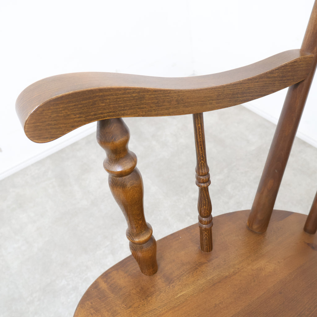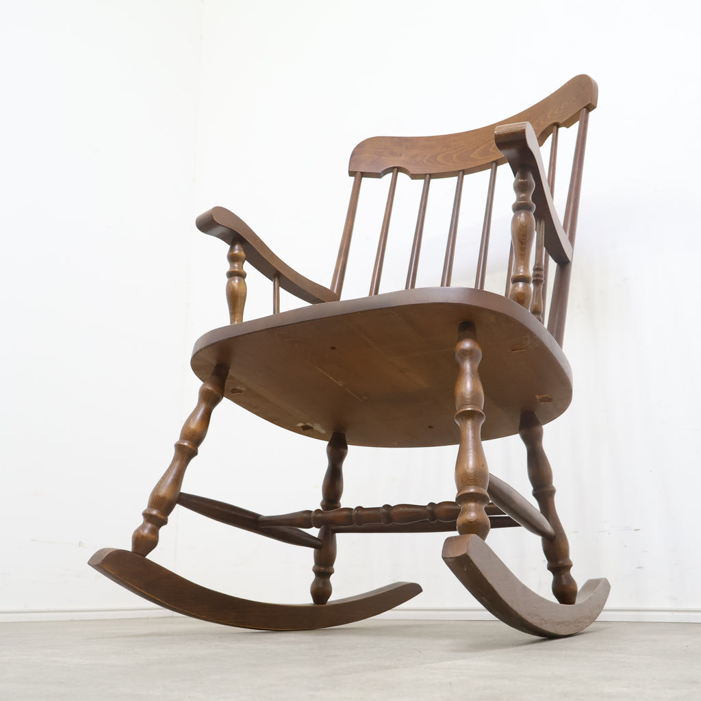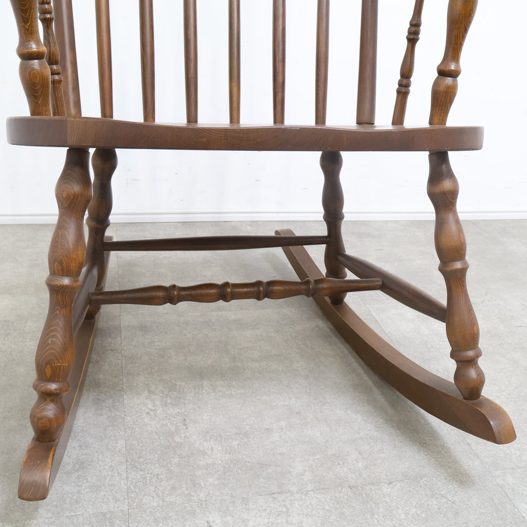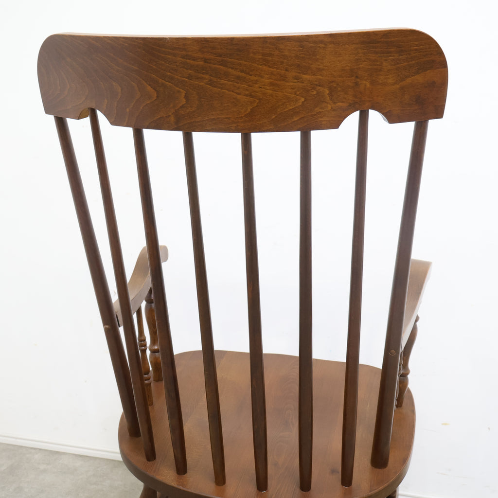 厳選された**ナラ材(オーク材)**の美しい木目と、木のぬくもりが感じられる丁寧な仕上げが特徴です。背もたれから座面にかけての緩やかなカーブが、ゆったりと身体を支え、極上の揺らぎを提供します。スピンドルバック(縦の棒)デザインは、和風、洋風、和モダンなど、幅広いインテリアに調和します。