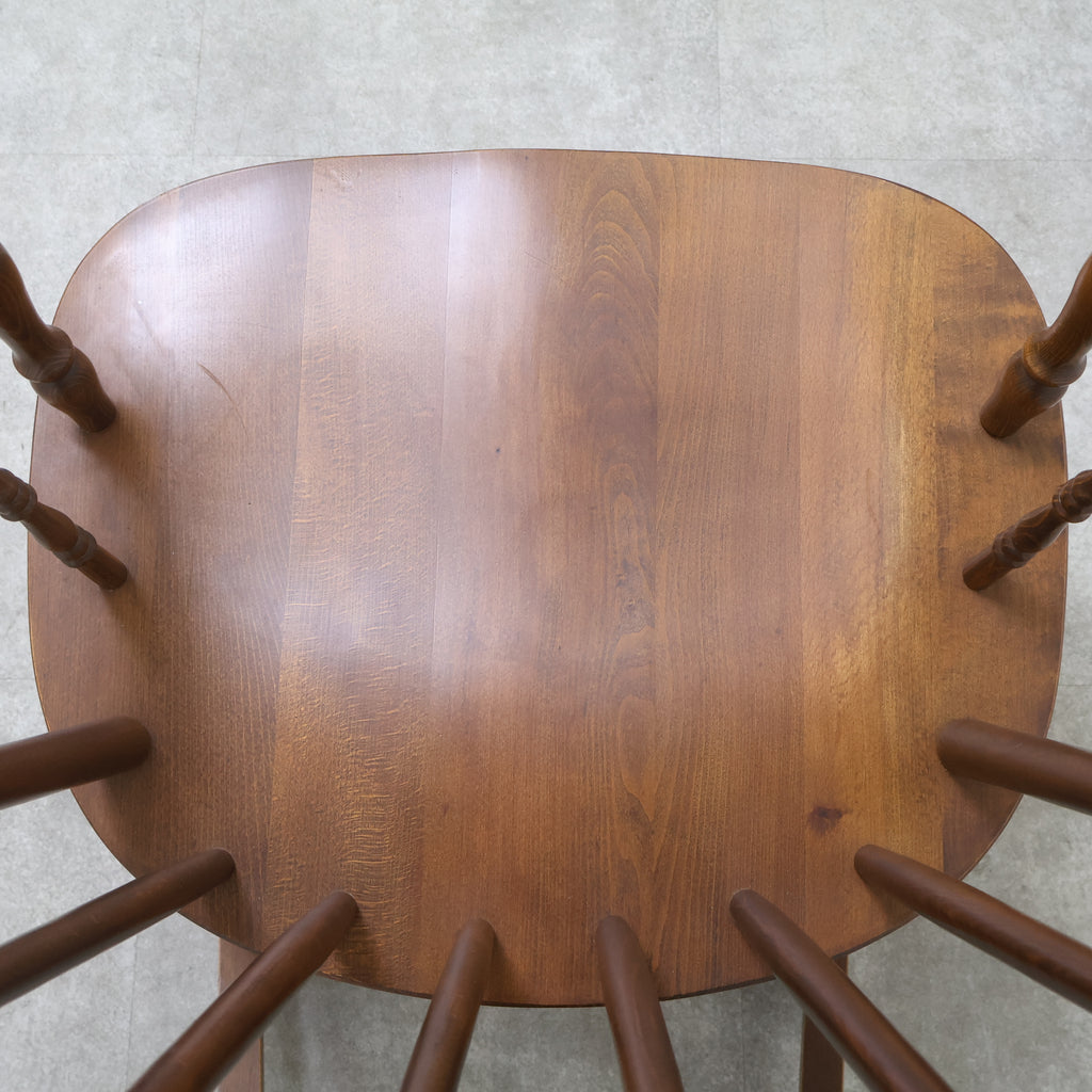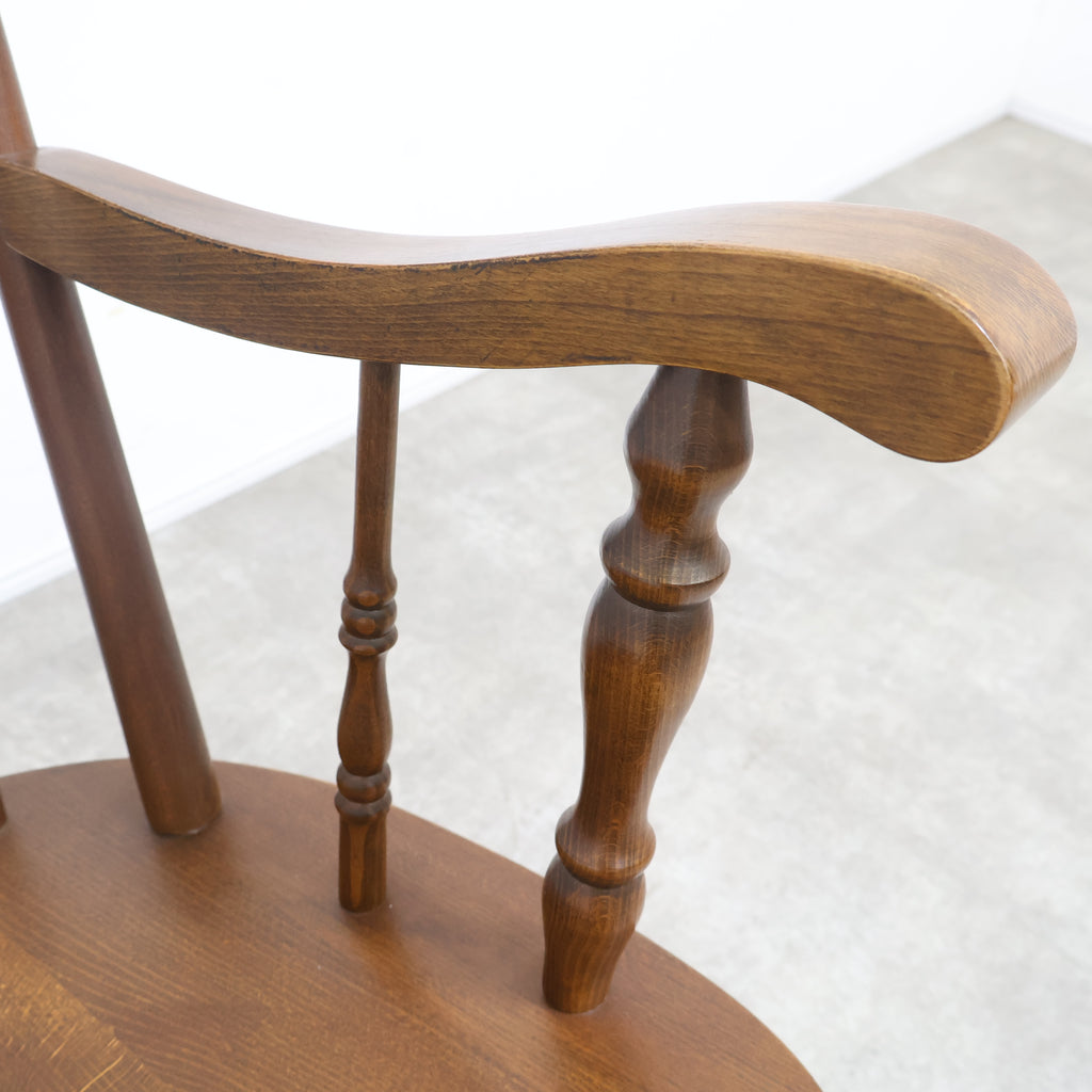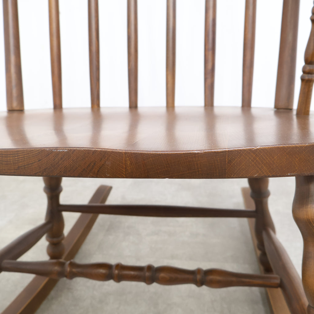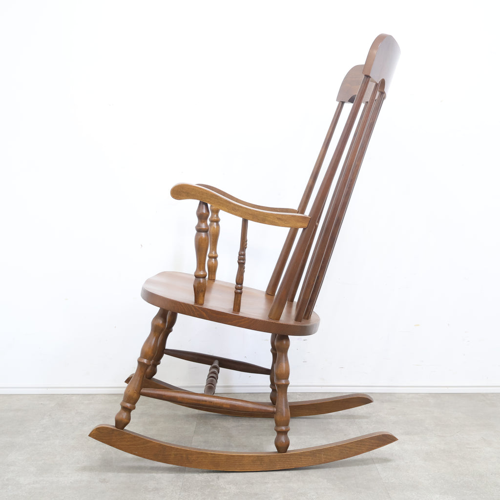 厳選された**ナラ材(オーク材)**の美しい木目と、木のぬくもりが感じられる丁寧な仕上げが特徴です。背もたれから座面にかけての緩やかなカーブが、ゆったりと身体を支え、極上の揺らぎを提供します。スピンドルバック(縦の棒)デザインは、和風、洋風、和モダンなど、幅広いインテリアに調和します。