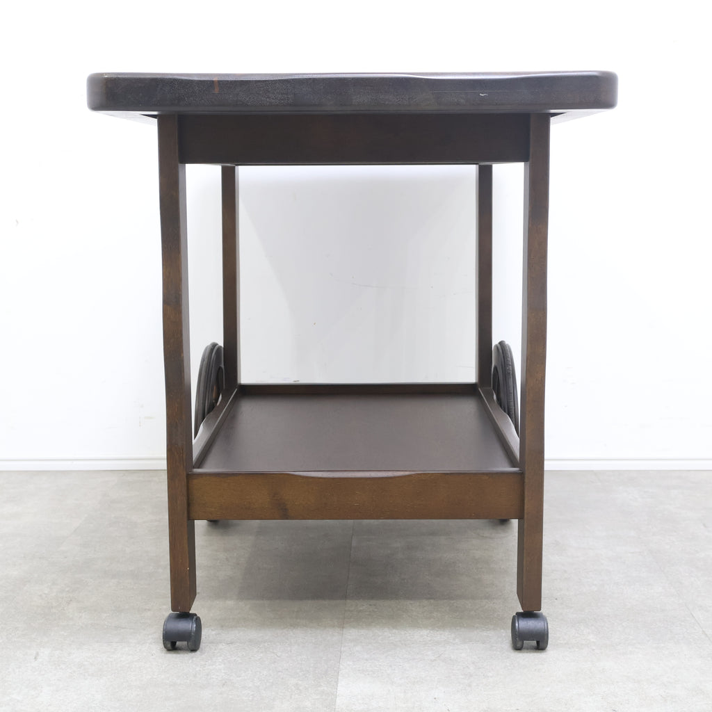 キッチンで調理器具や食器を運ぶキッチンワゴンとして、また、リビングで飲み物や本を置くサイドテーブルとしても活躍します。和風モダンやレトロなインテリアに馴染む、質の高い国産家具です。