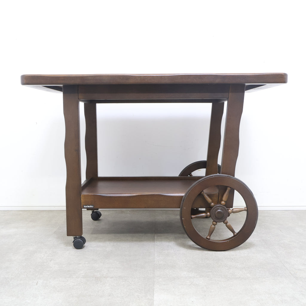 日本の老舗家具メーカー、カリモク家具(Karimoku)による、落ち着いた木目と実用性が魅力のキッチンワゴンです。