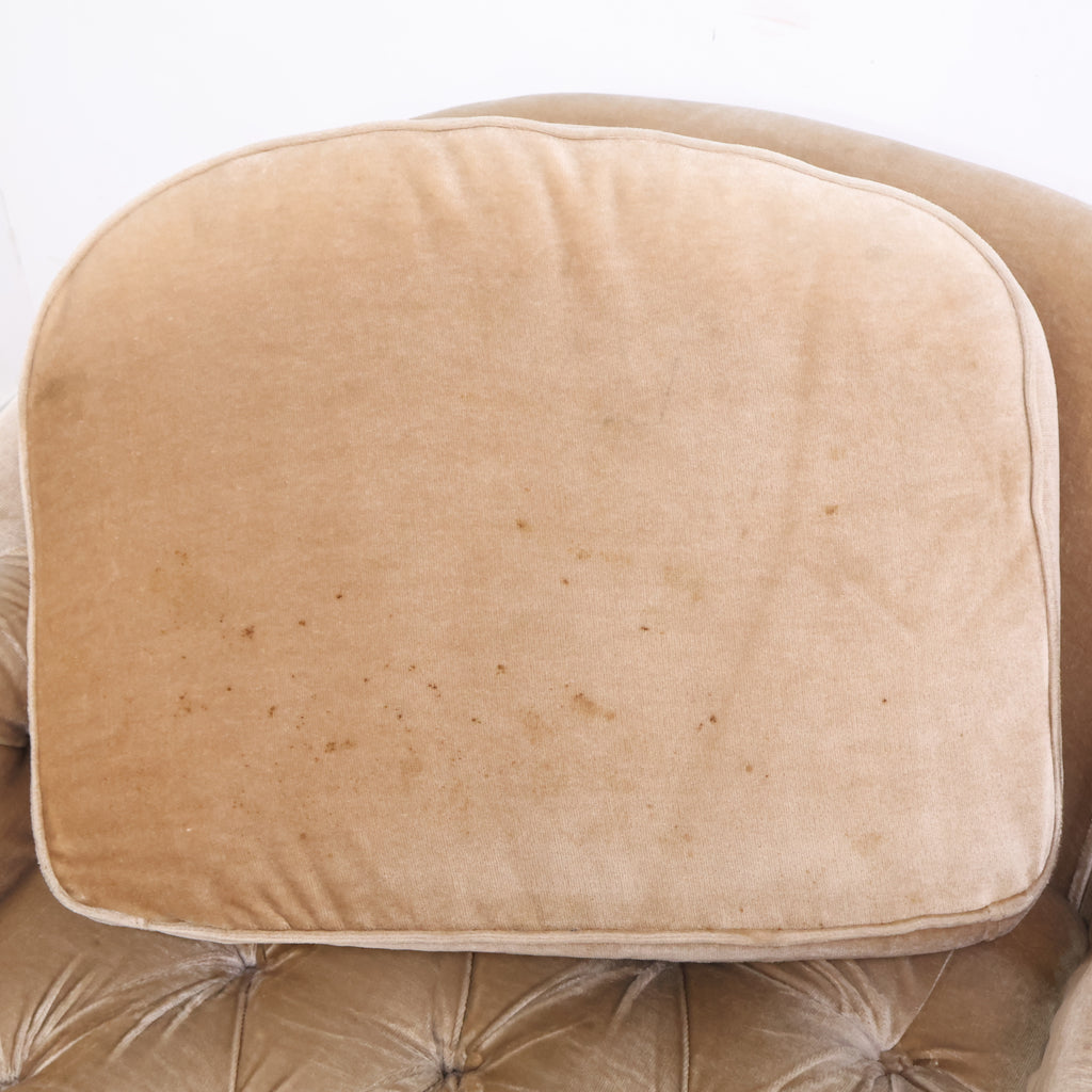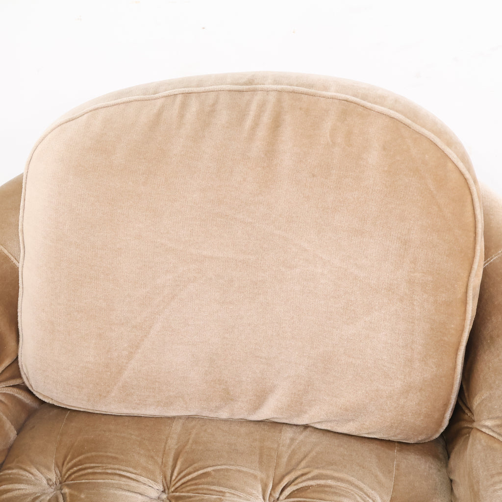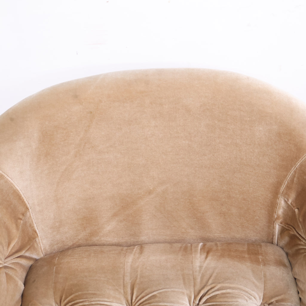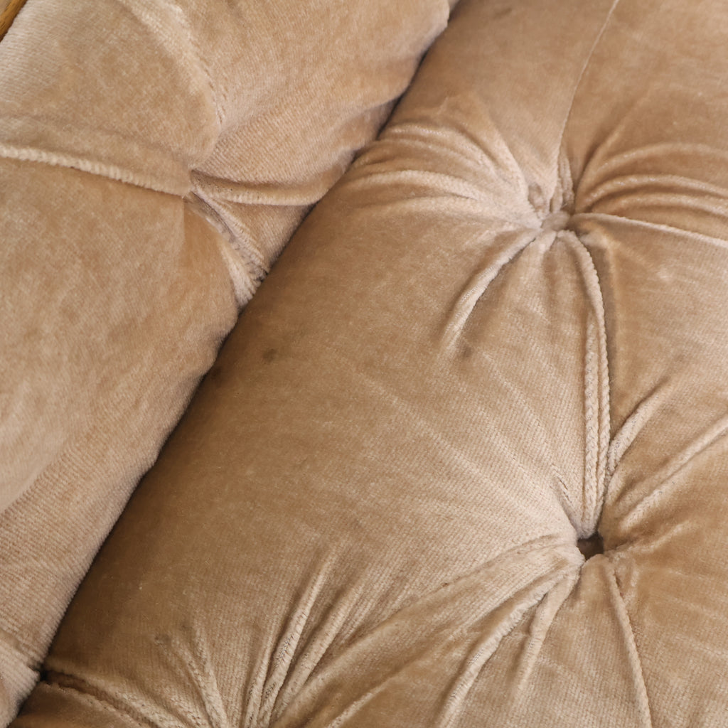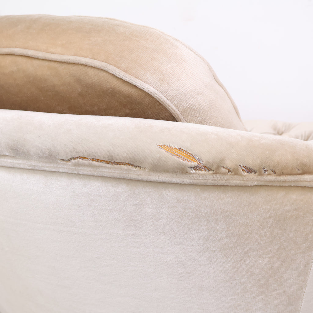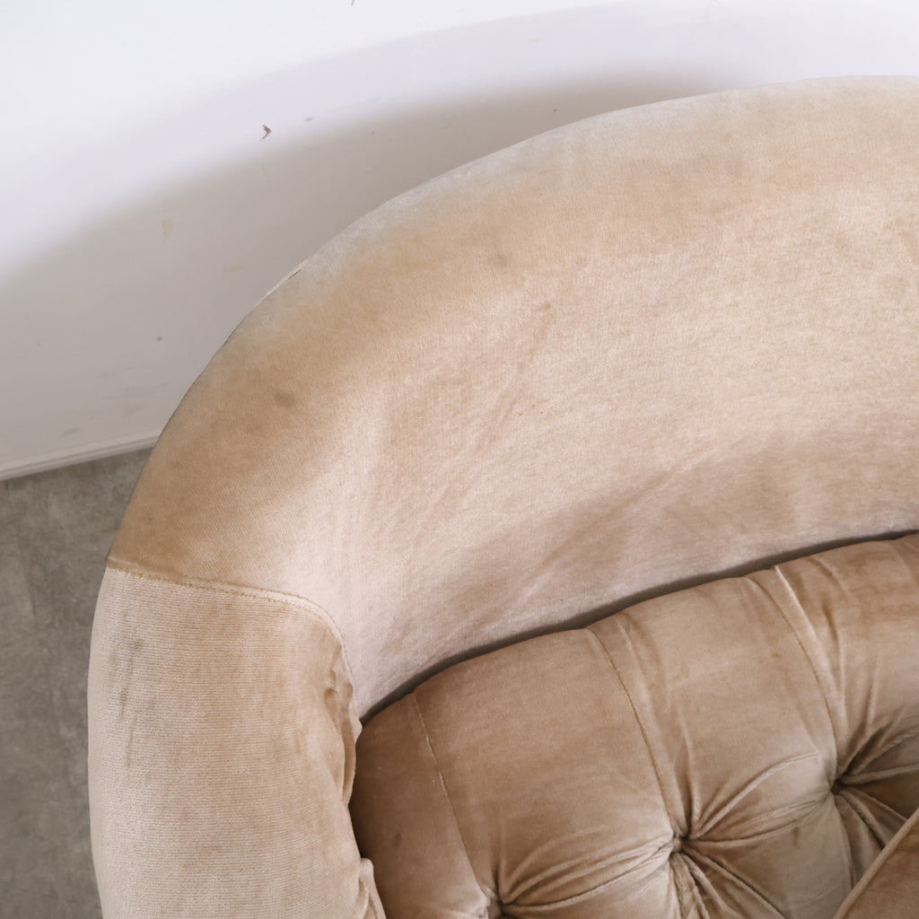 クラシック家具ならではの重厚感と、優雅な曲線を描く木製フレームが魅力の一脚。 柔らかなベロア調ファブリックに深いボタン留めを施した座面は高級感があり、座り心地もしっかり。 気品あるデザインは、クラシック、アンティーク、レトロモダンなど幅広いインテリアに調和します。