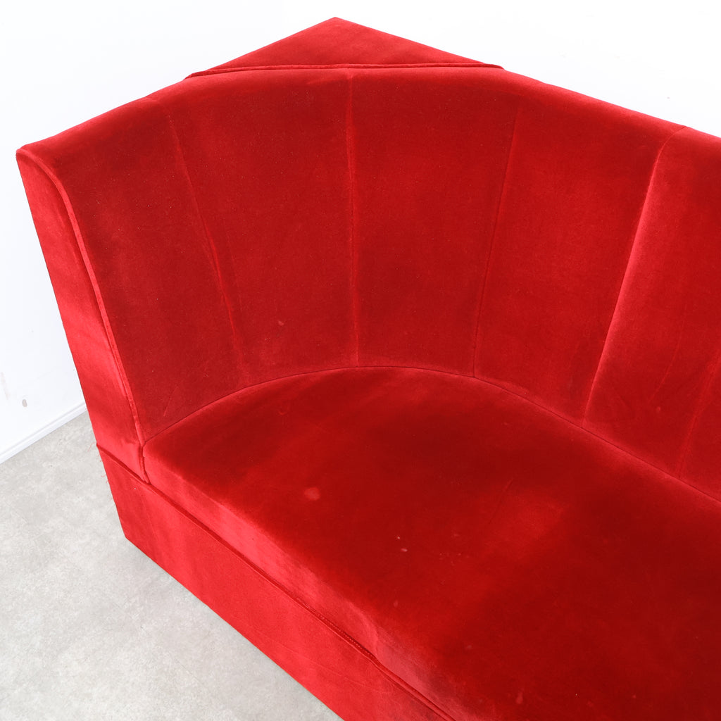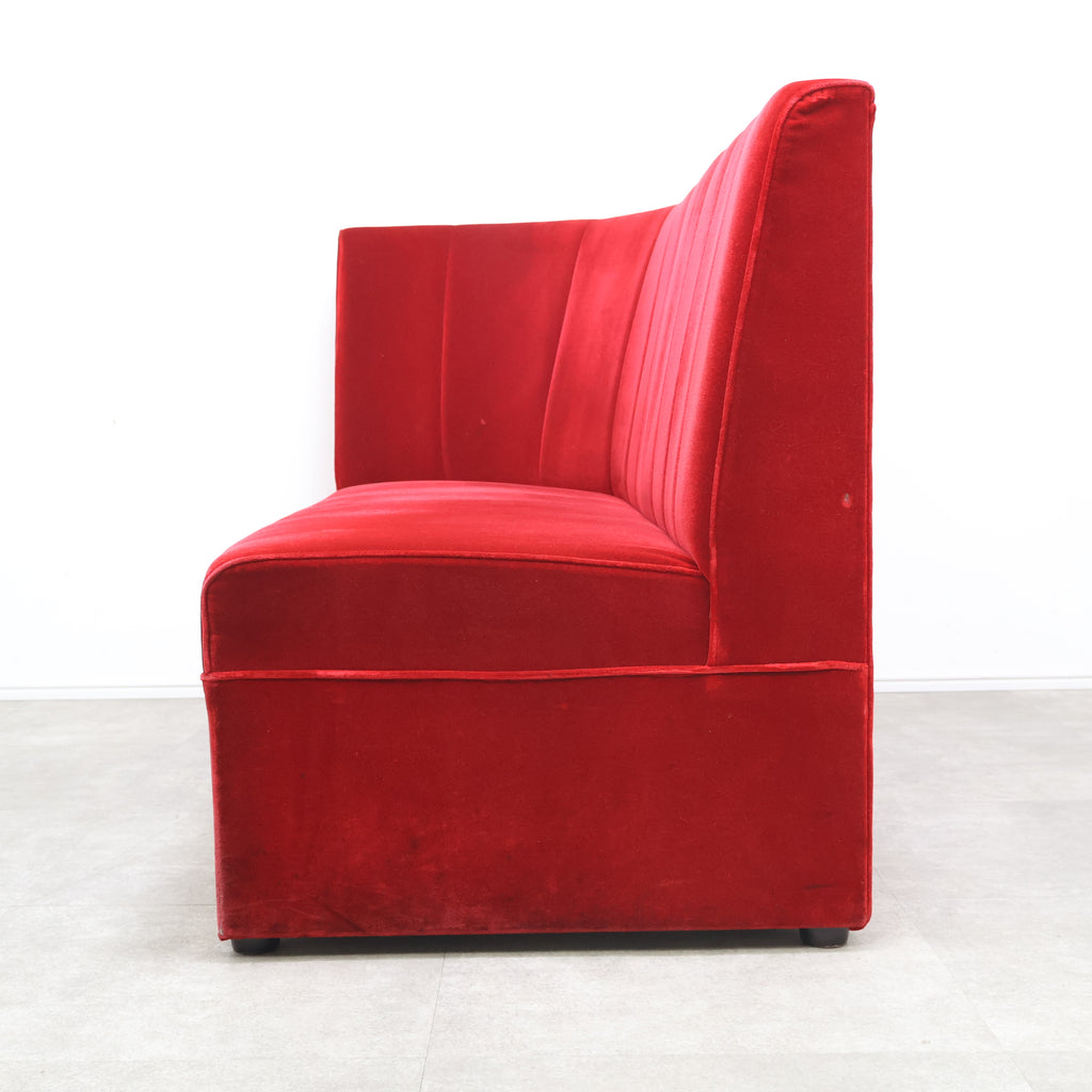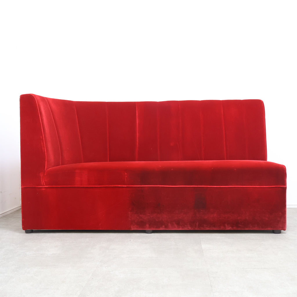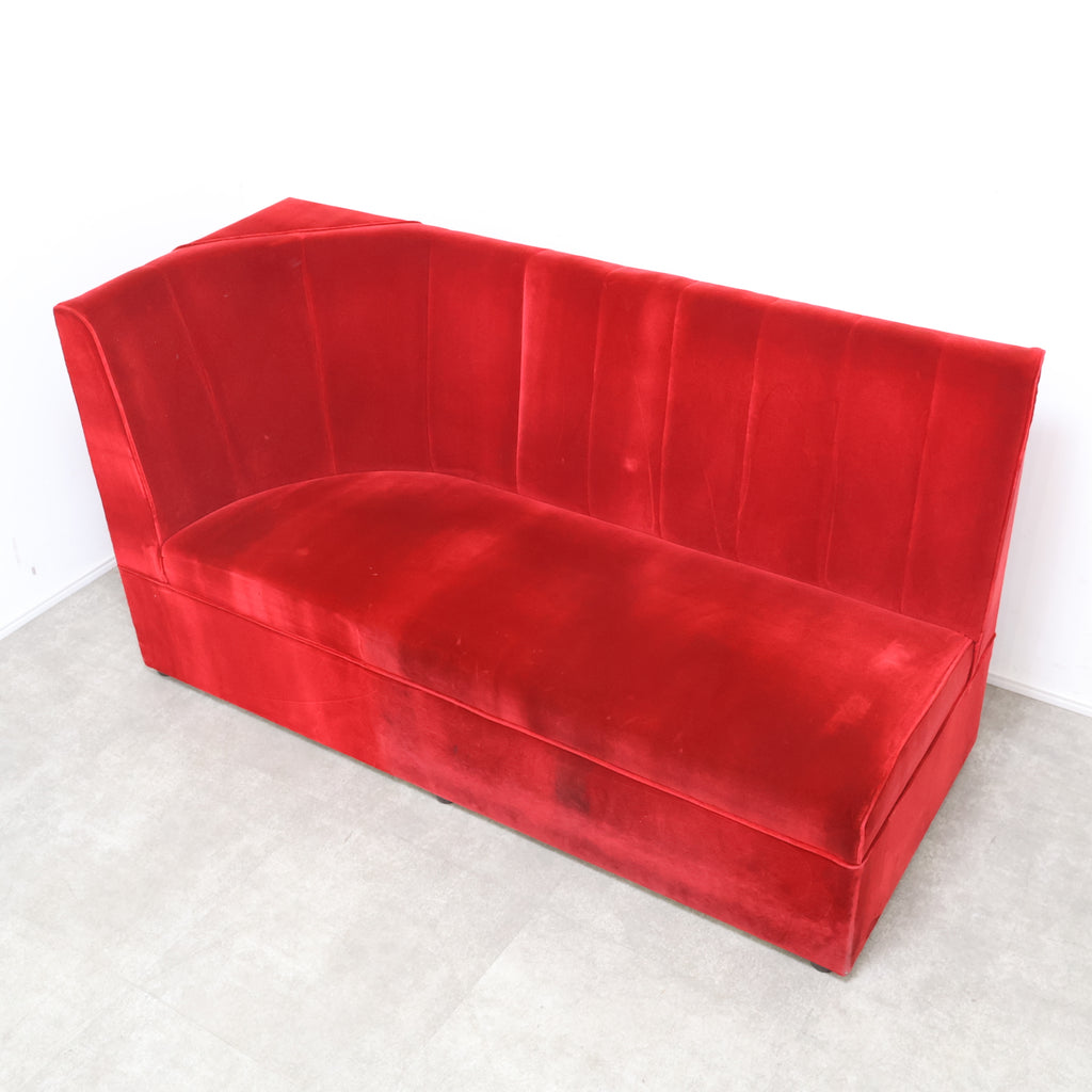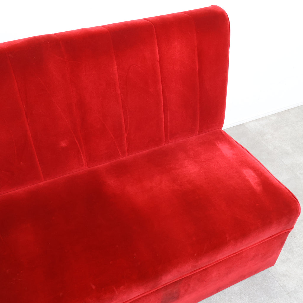 鮮やかなレッドカラーが印象的な、喫茶店・ラウンジで使用されていた2人掛けボックスソファのコーナータイプです。