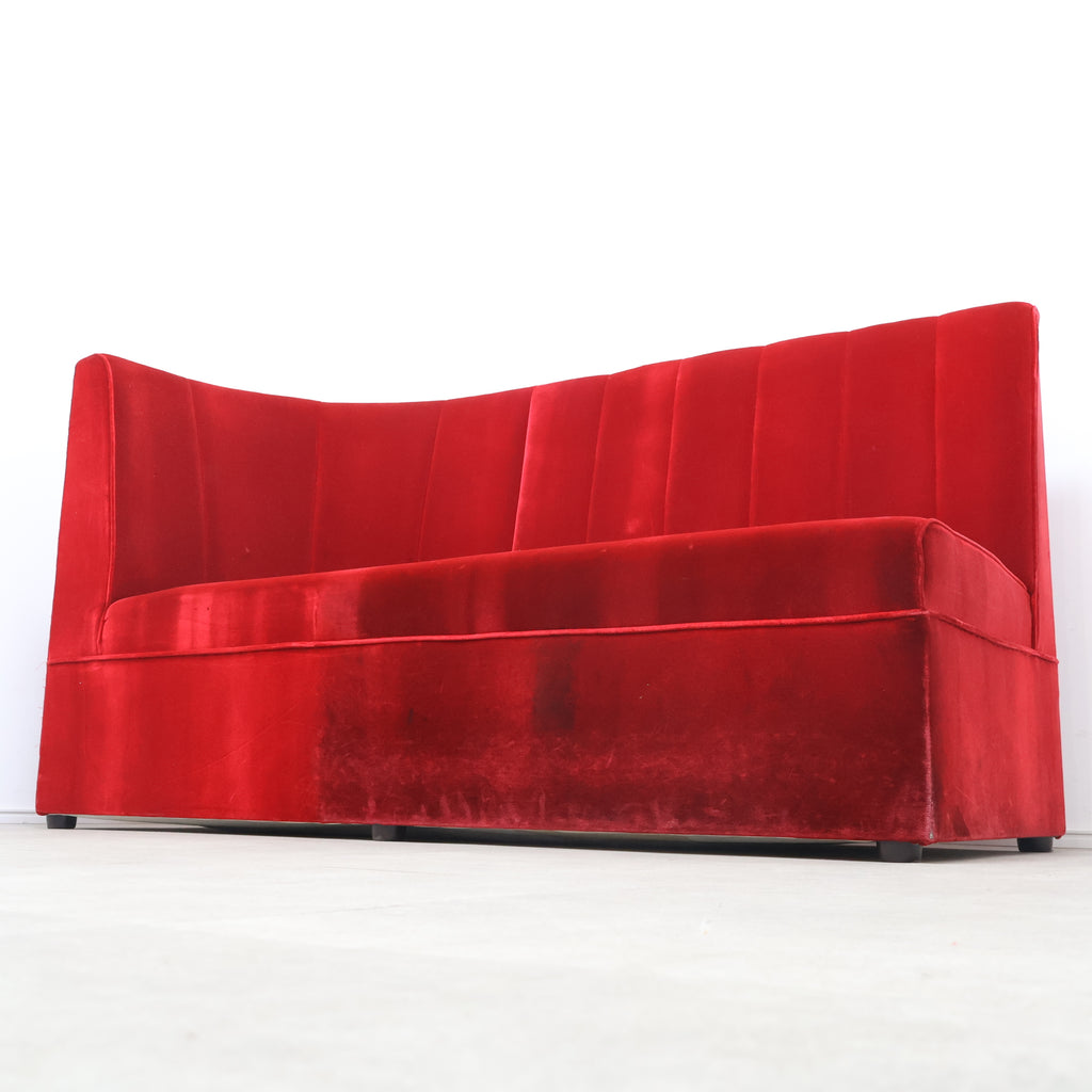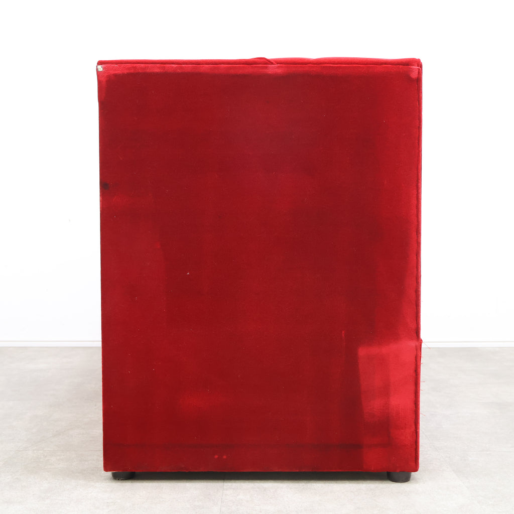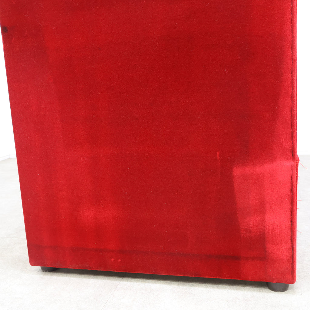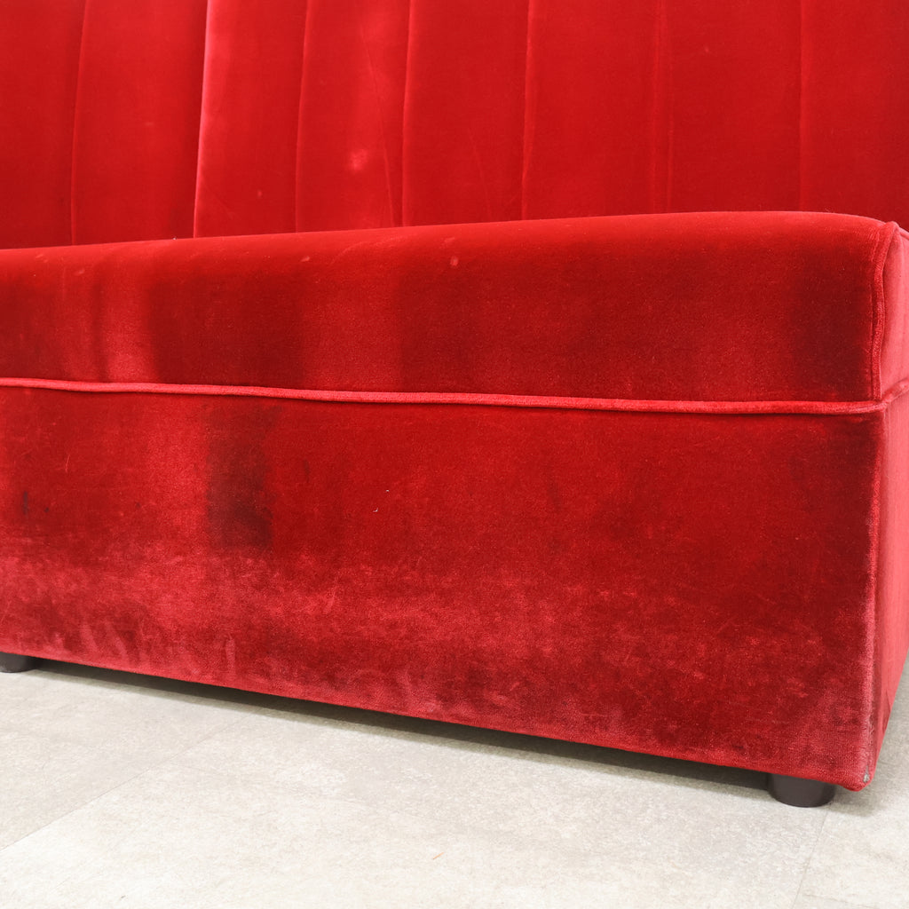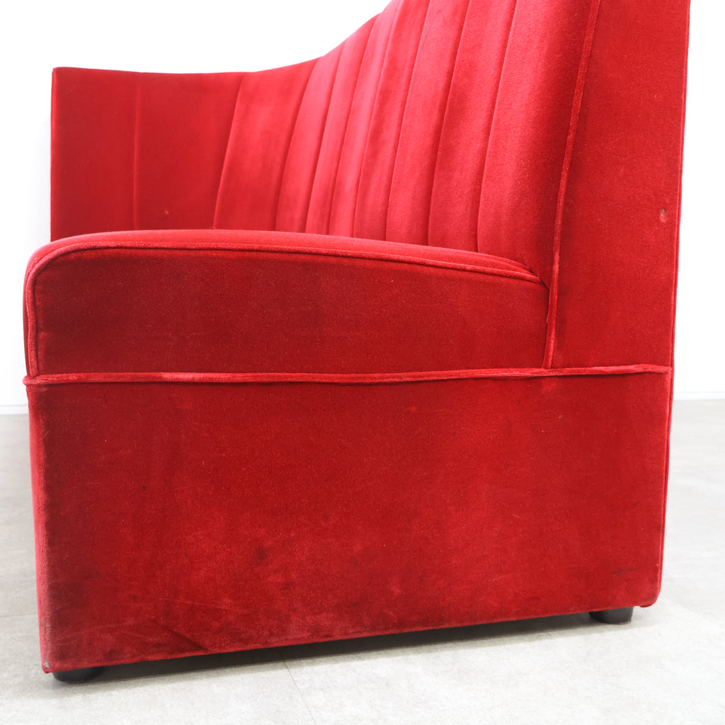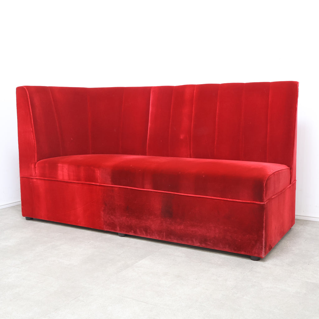 鮮やかなレッドカラーが印象的な、喫茶店・ラウンジで使用されていた2人掛けボックスソファのコーナータイプです。