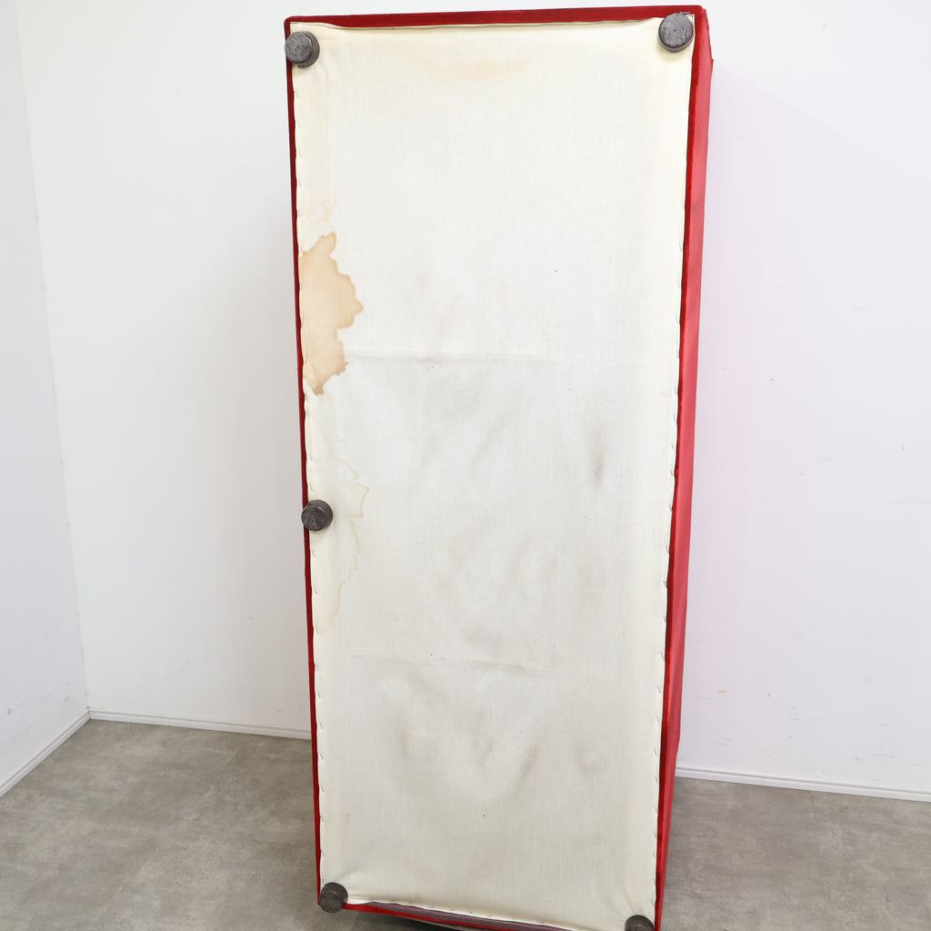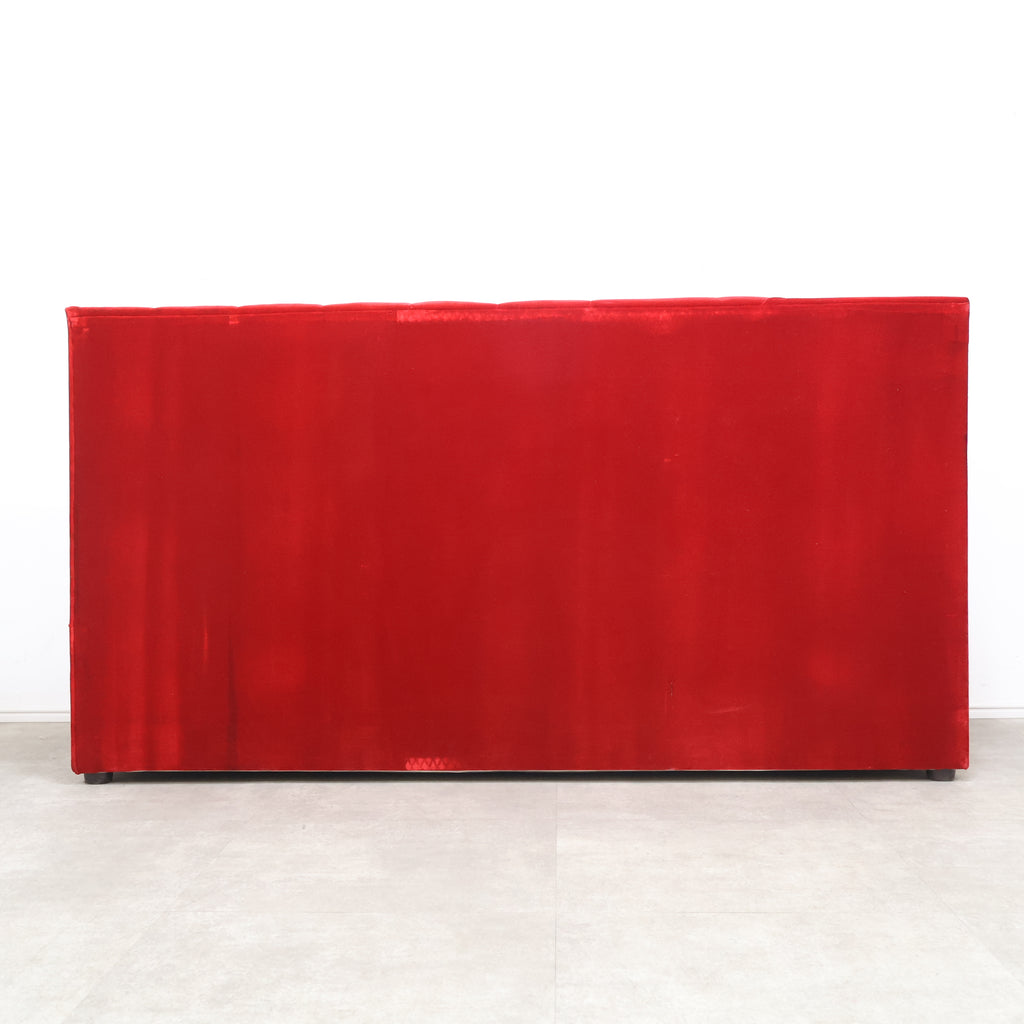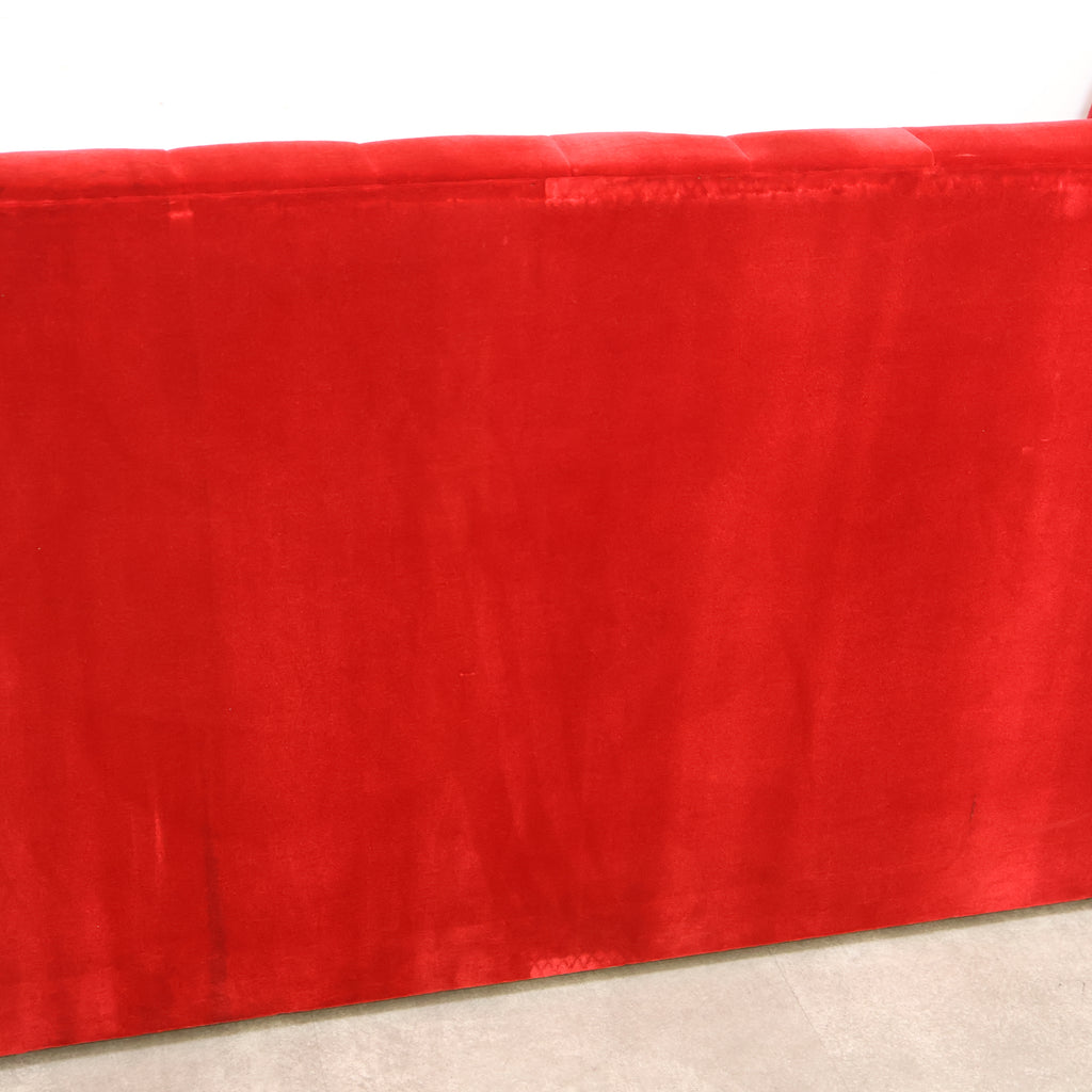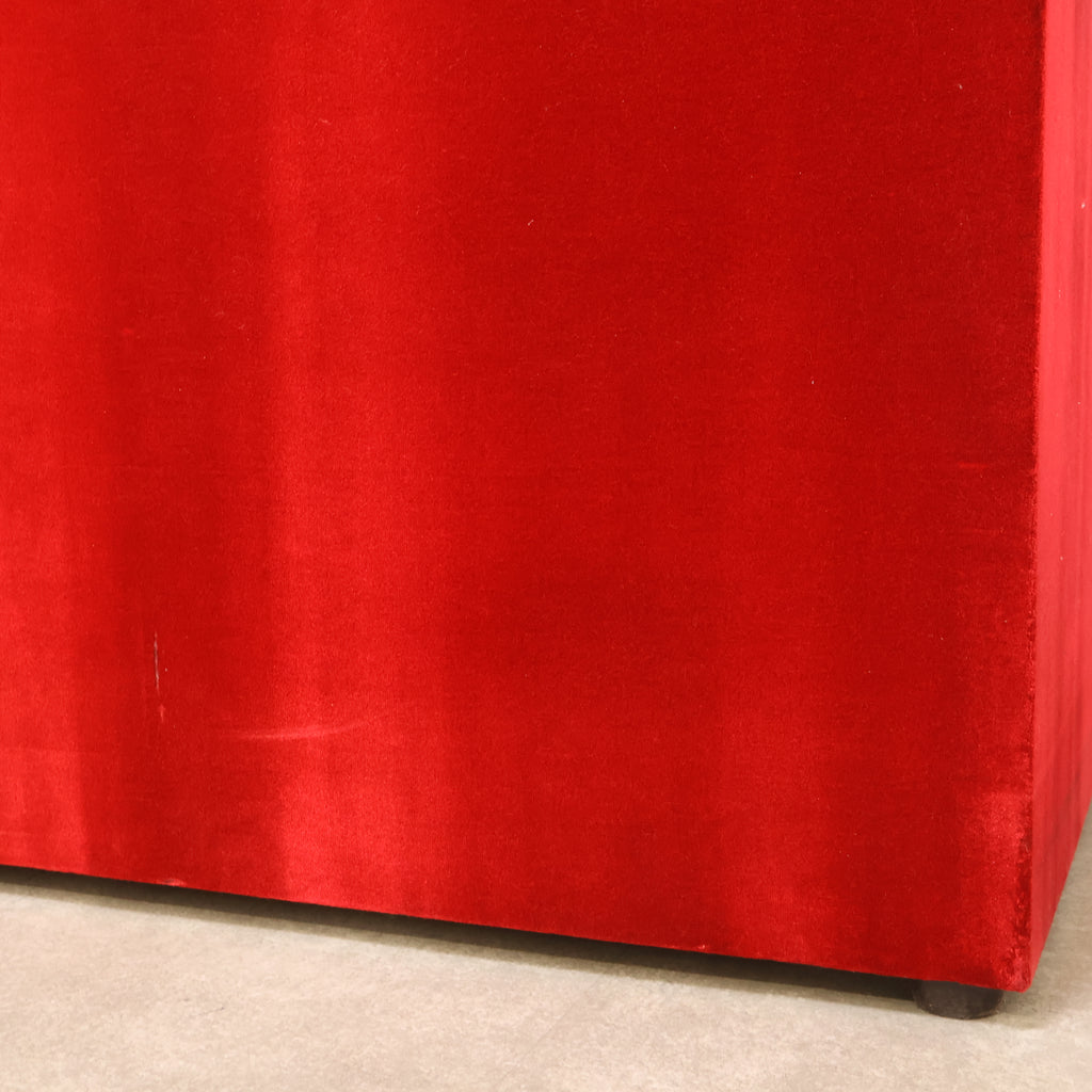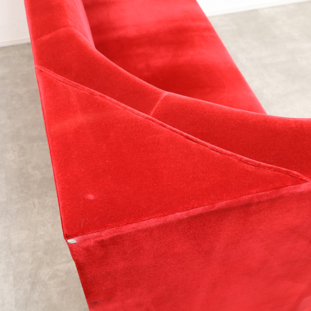 鮮やかなレッドカラーが印象的な、喫茶店・ラウンジで使用されていた2人掛けボックスソファのコーナータイプです。