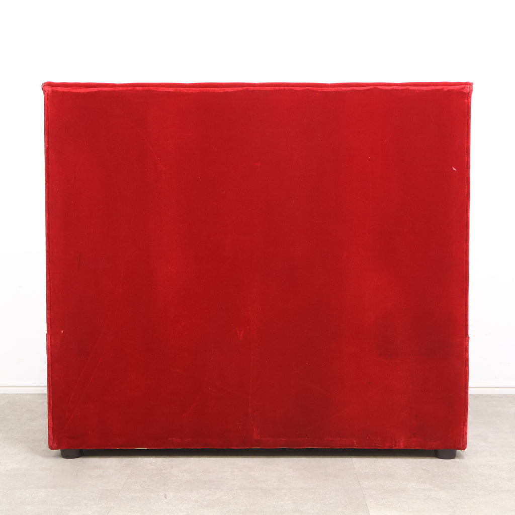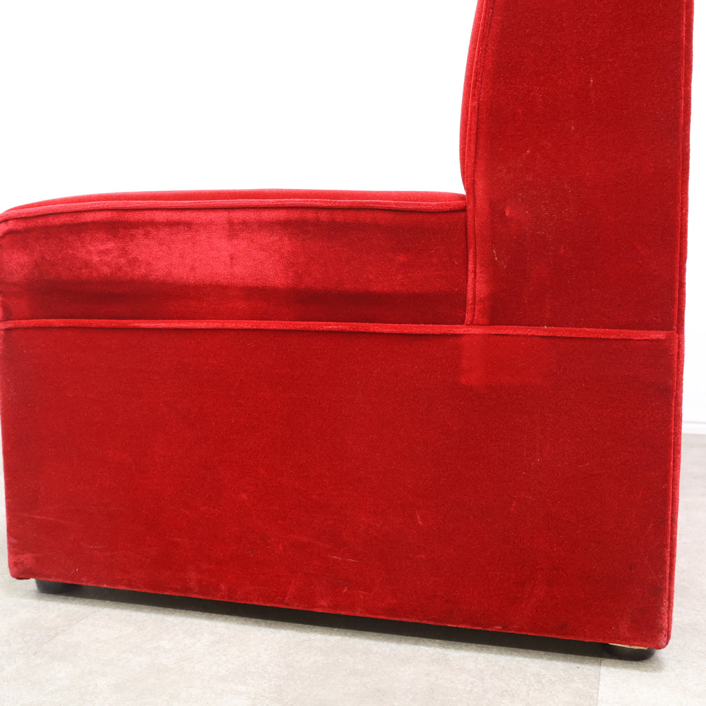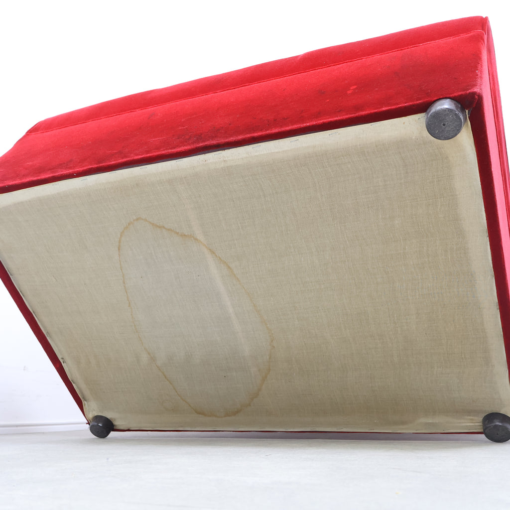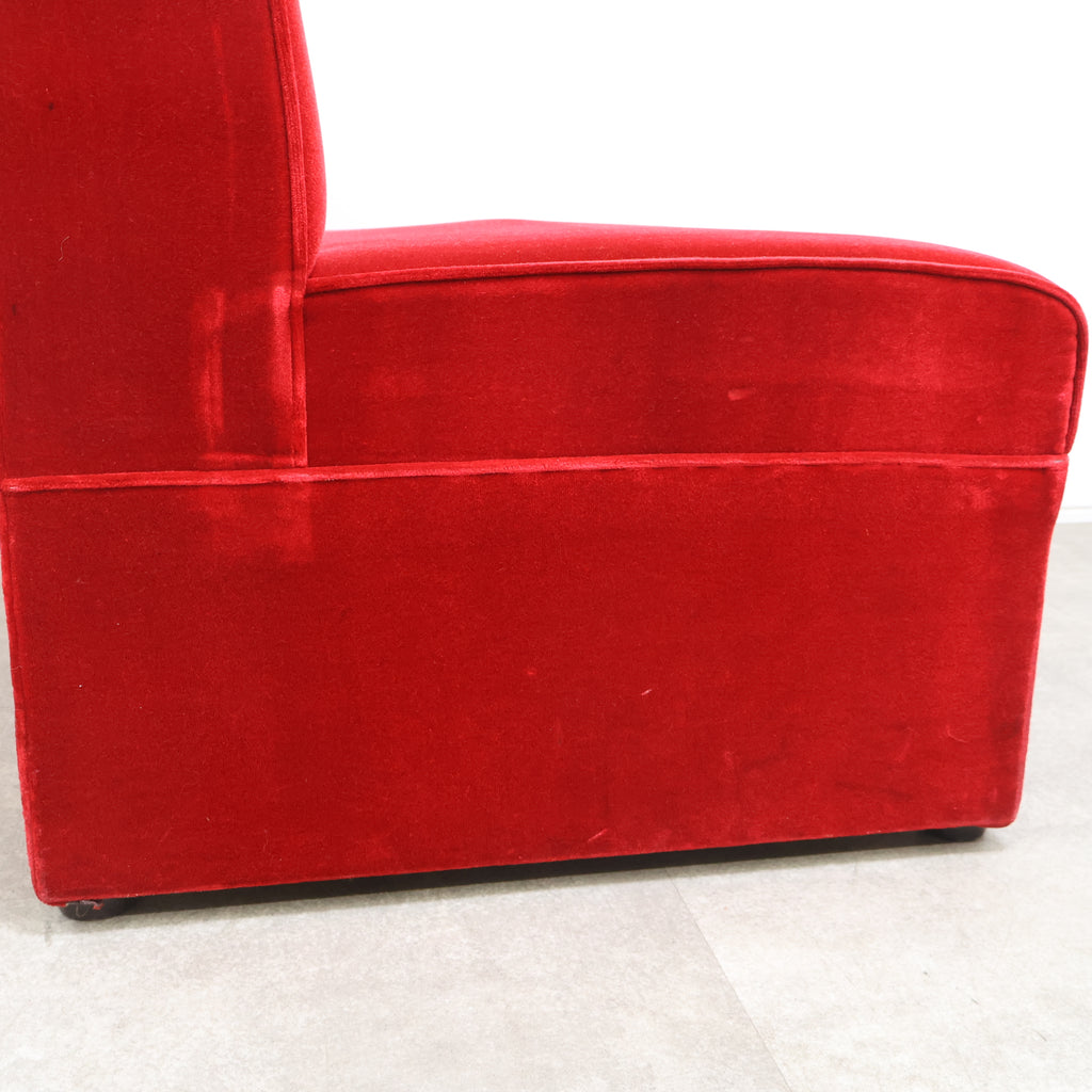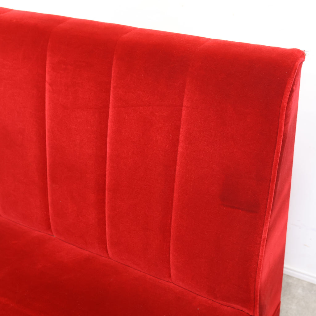 鮮やかなレッドカラーが印象的な、喫茶店・ラウンジで使用されていた2人掛けボックスソファです。