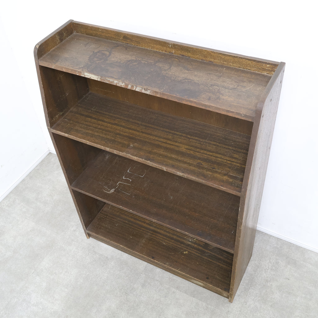 味わい深い木の質感が魅力の、古い木製本棚・ブックシェルフです。