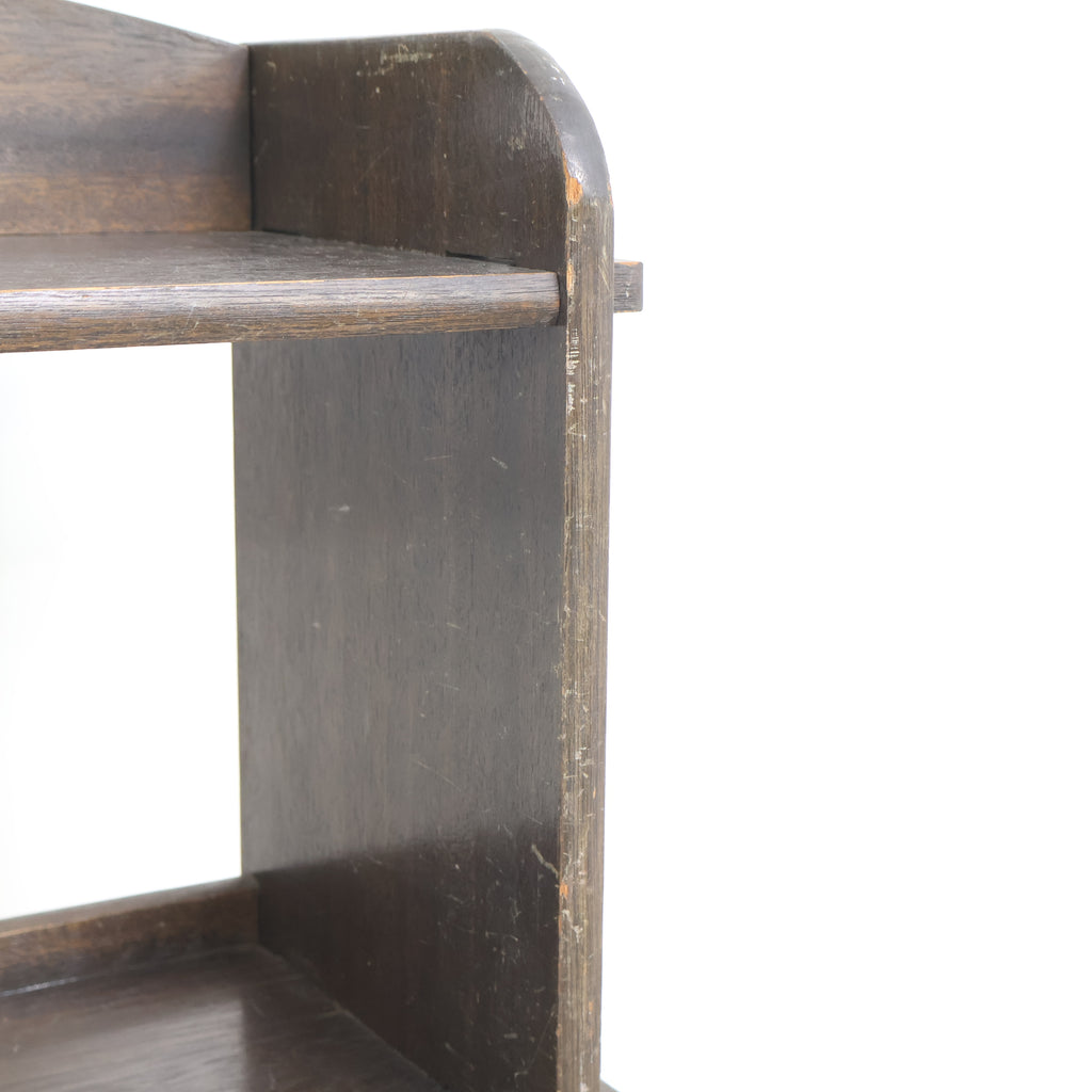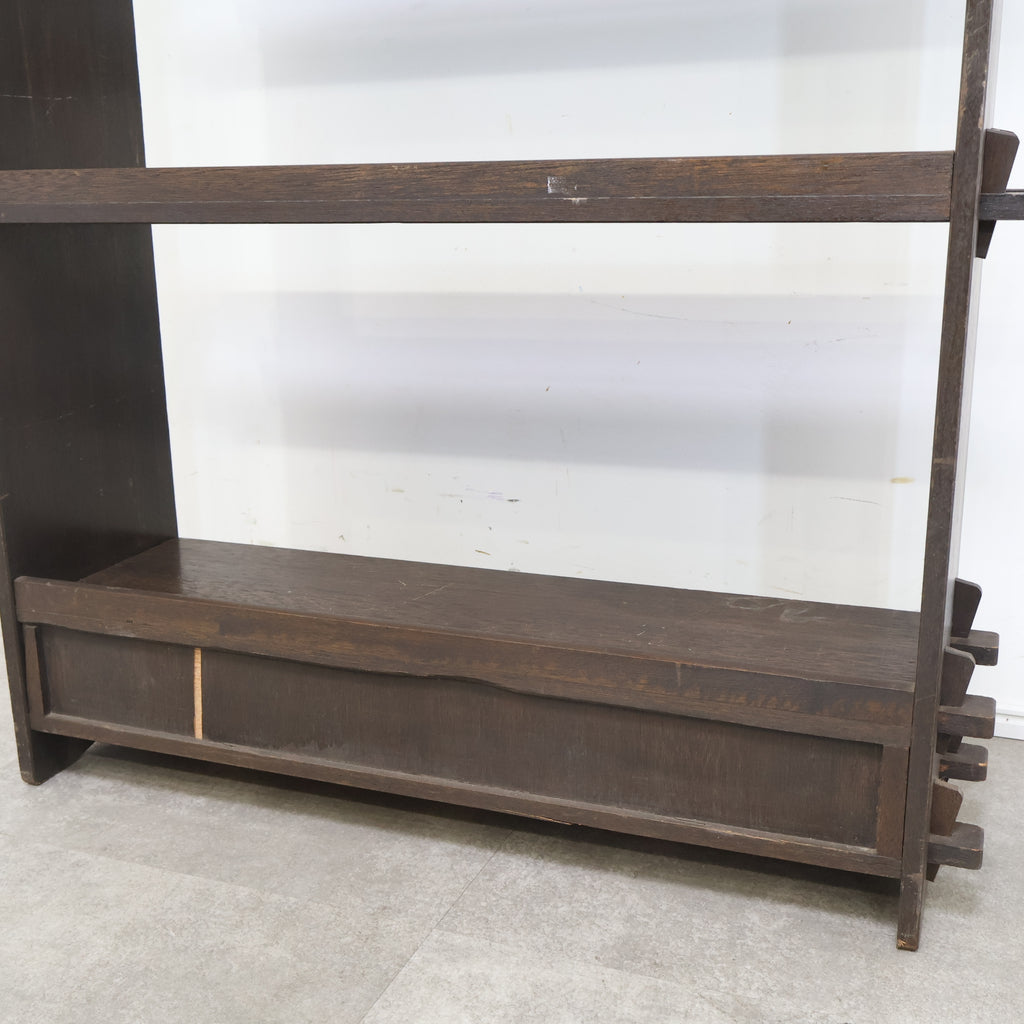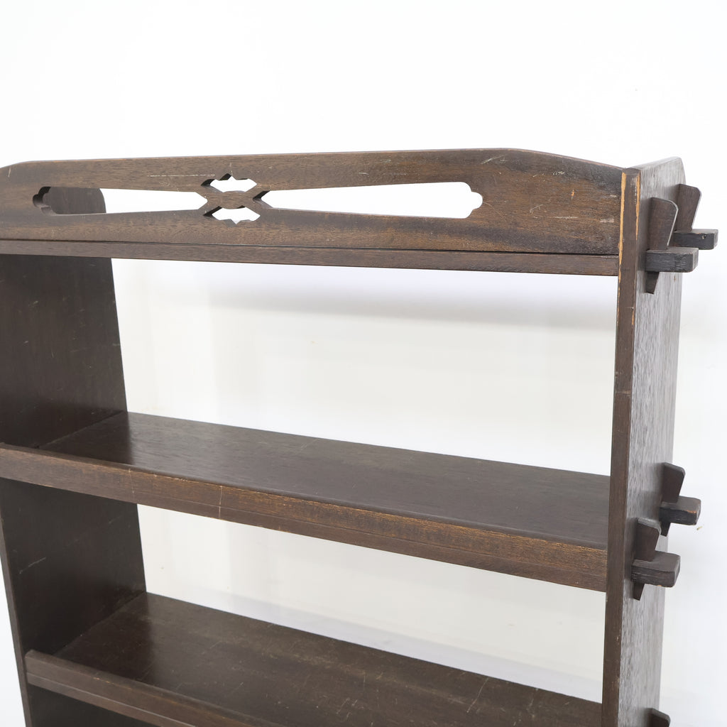 味わい深い雰囲気をまとった、古い木製のくさび式シェルフ(本棚)です。
