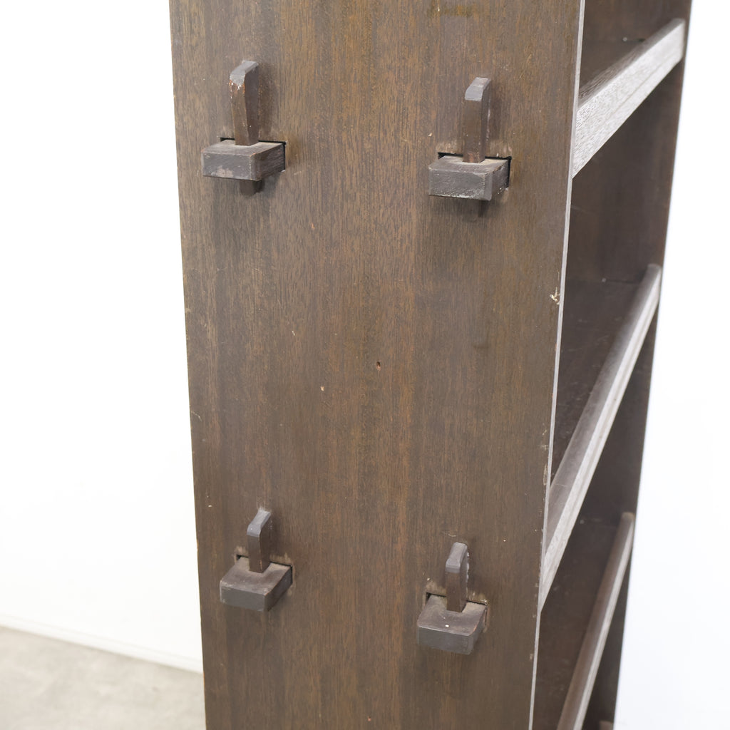 棚板をくさびで固定するシンプルかつ合理的な構造は、昔ながらの木工技術が生んだ特徴的なデザイン。 工具を使わずに組み立て・分解ができ、実用性にも優れています。
