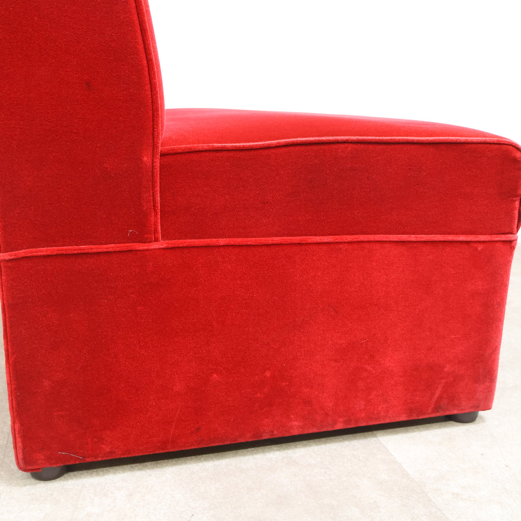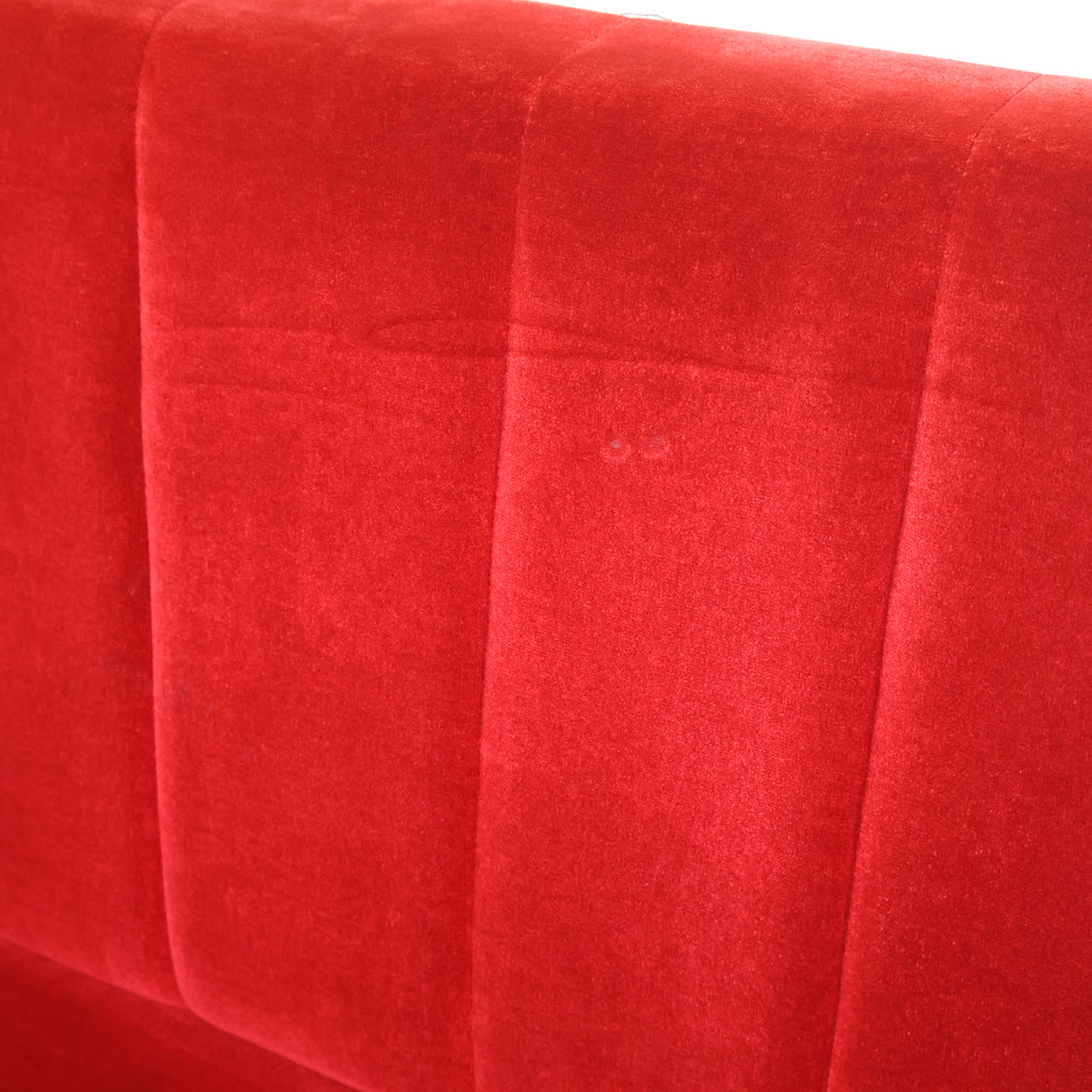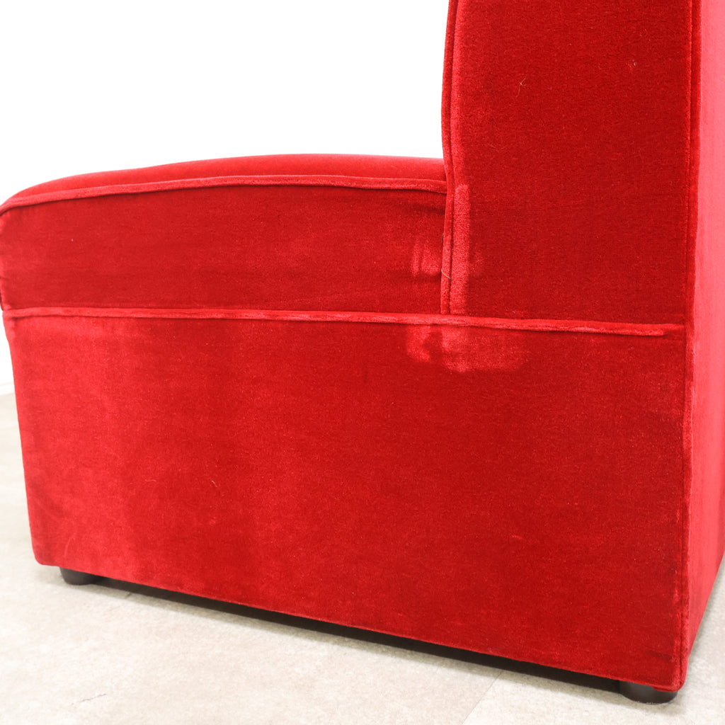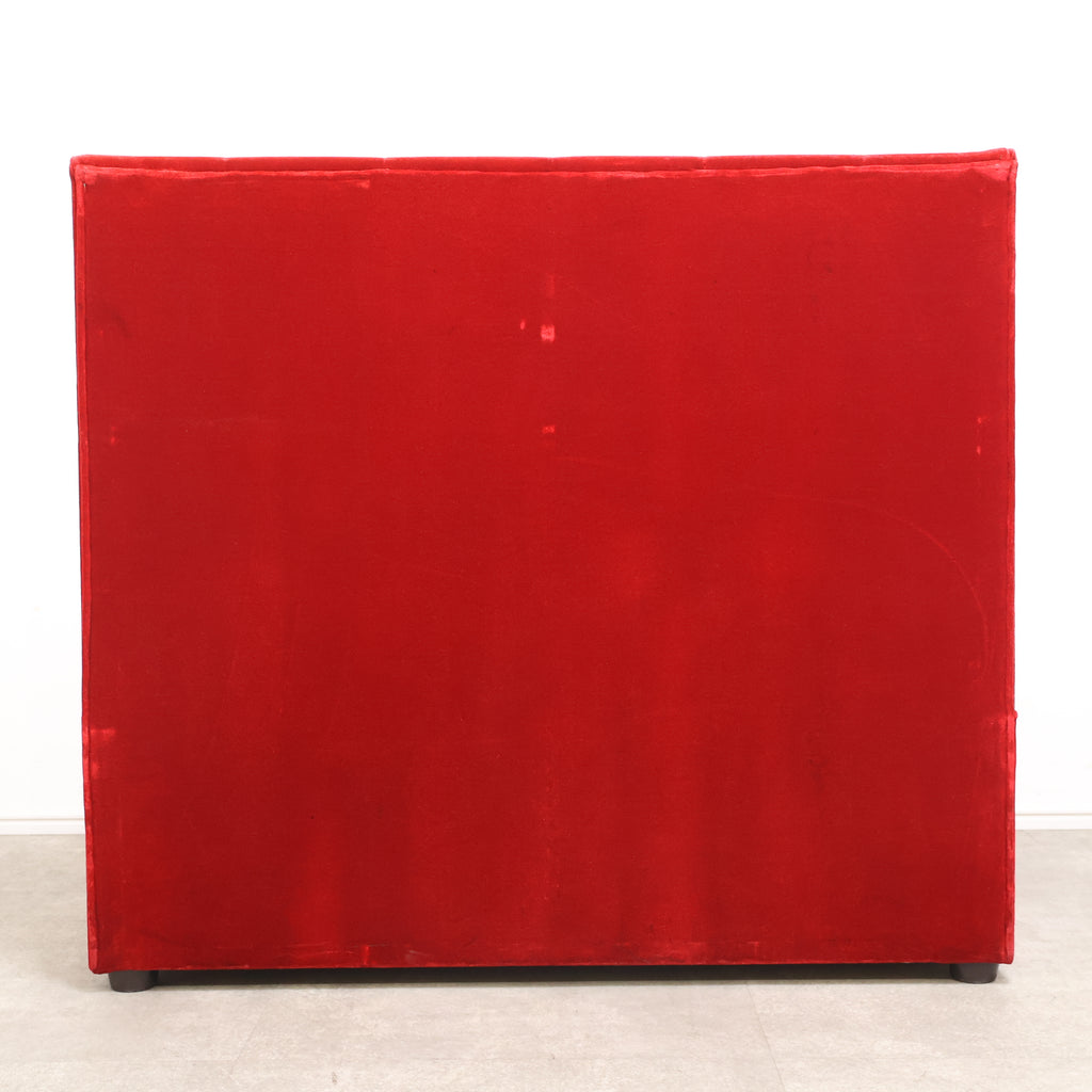 鮮やかなレッドカラーが印象的な、喫茶店・ラウンジで使用されていた2人掛けボックスソファです。