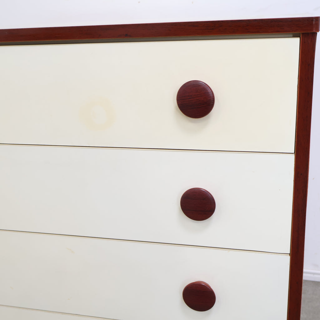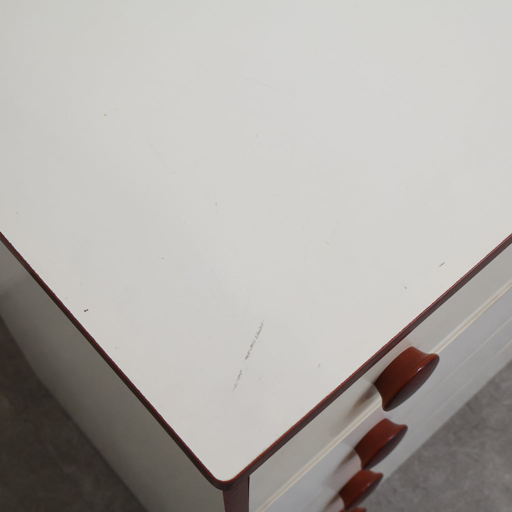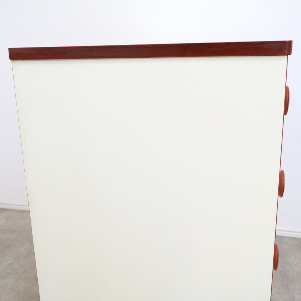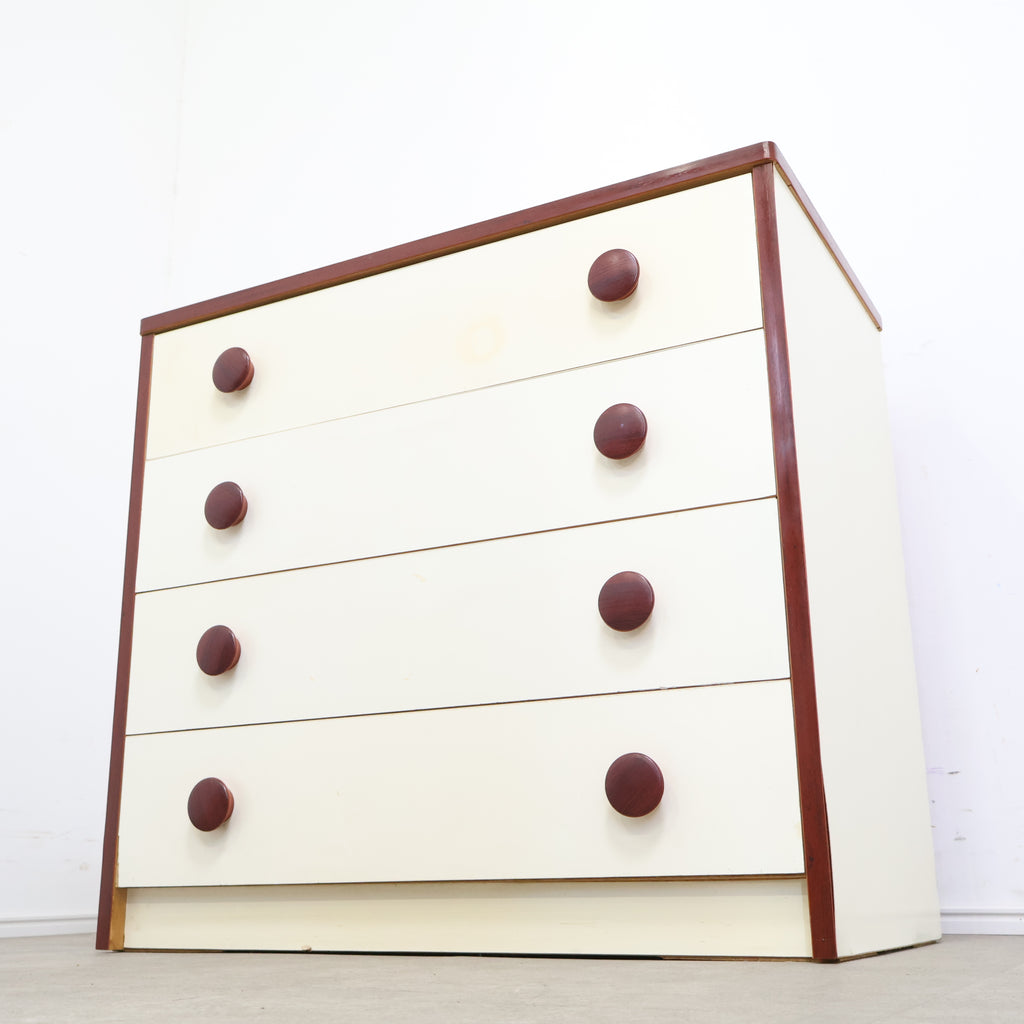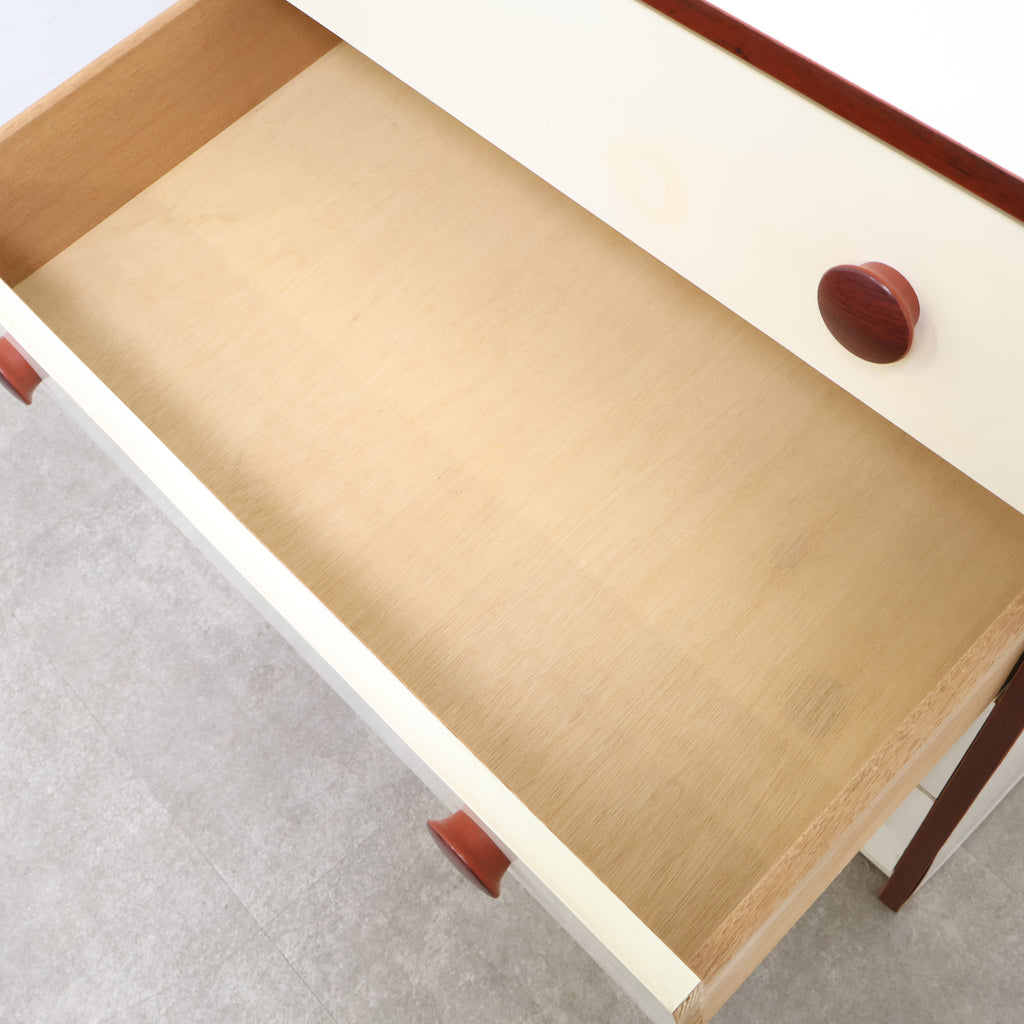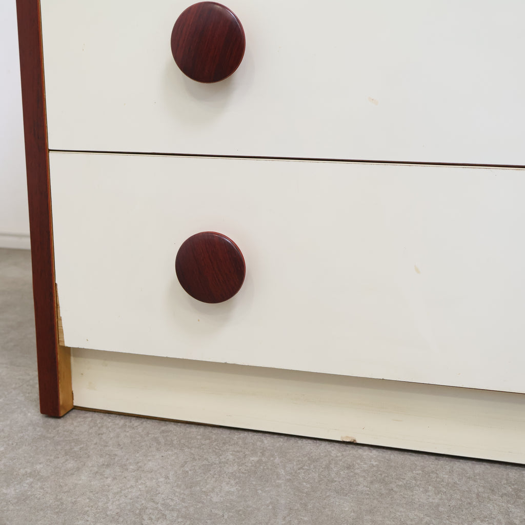 4段の引き出しは衣類や小物の整理に使いやすく、リビングや寝室、子ども部屋など幅広いシーンで活躍。 主張しすぎない配色のため、昭和レトロはもちろん、北欧テイストやナチュラルインテリアとも相性良く馴染みます。