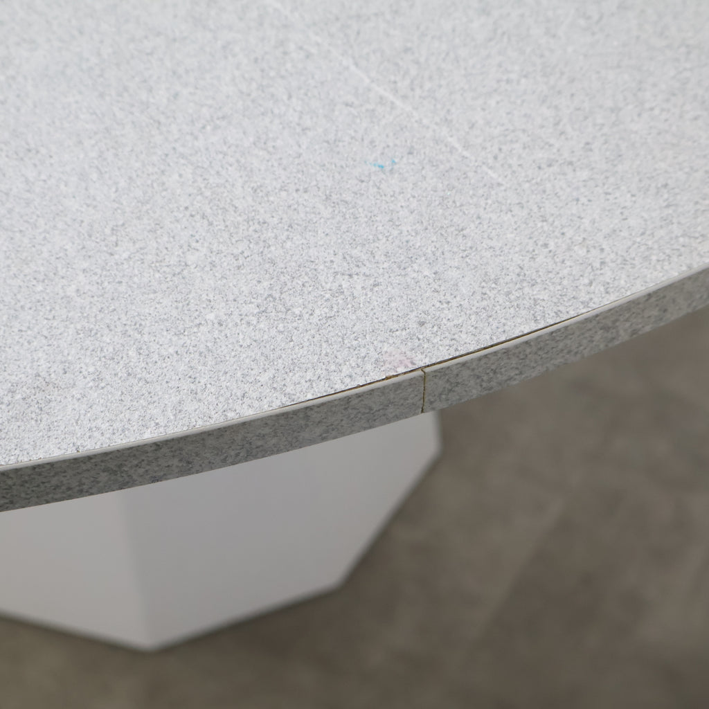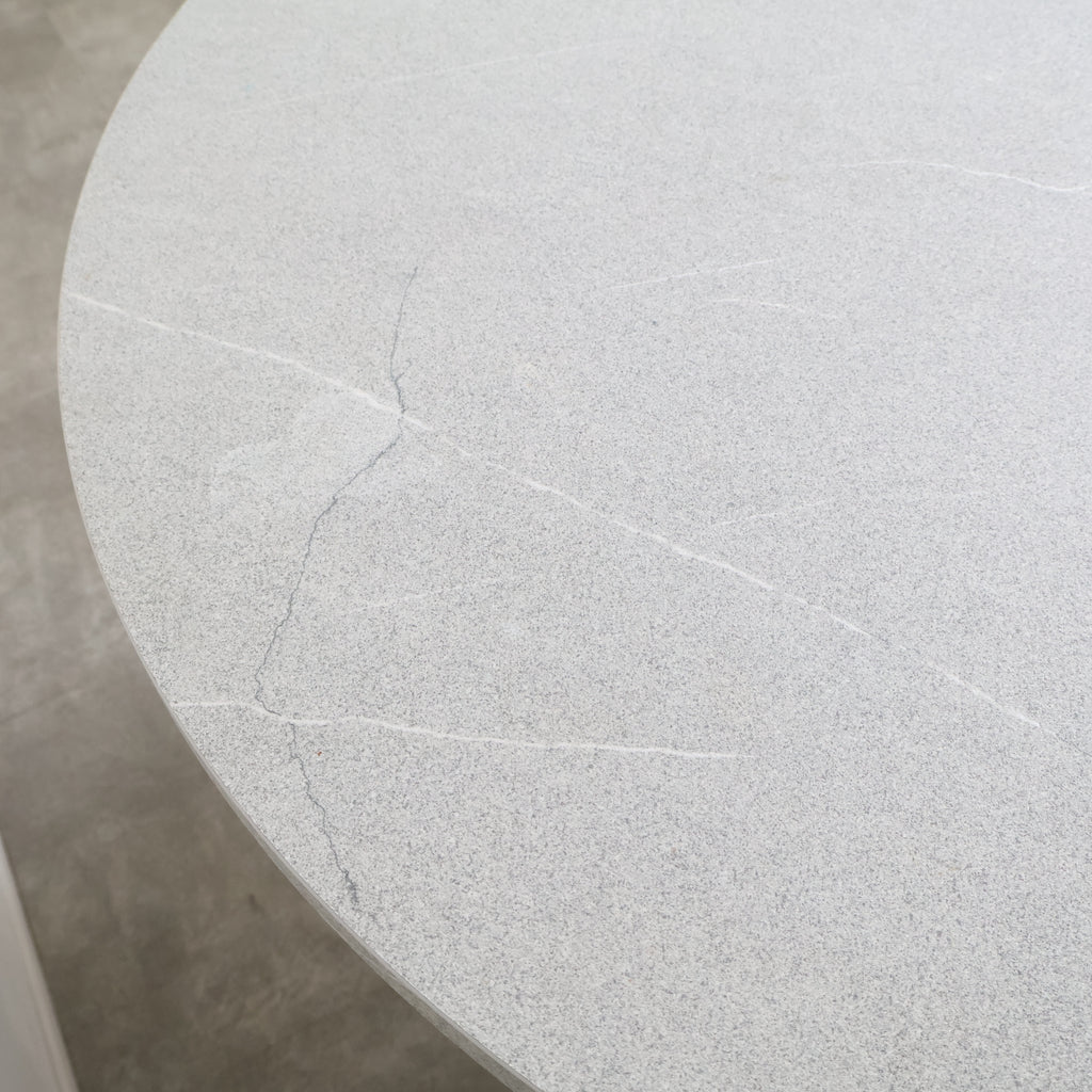 直径120cmのラウンド天板は、家族や来客との距離を自然に近づけ、ダイニング空間に柔らかな印象を与えてくれます。 安定感のある一本脚デザインは、足元がすっきりとしてチェアの配置自由度が高く、日常使いから来客時まで幅広く対応。 ホワイトカラーの天板とベースは空間を明るく見せ、北欧・モダン・ミニマルなど様々なインテリアテイストと好相性です。