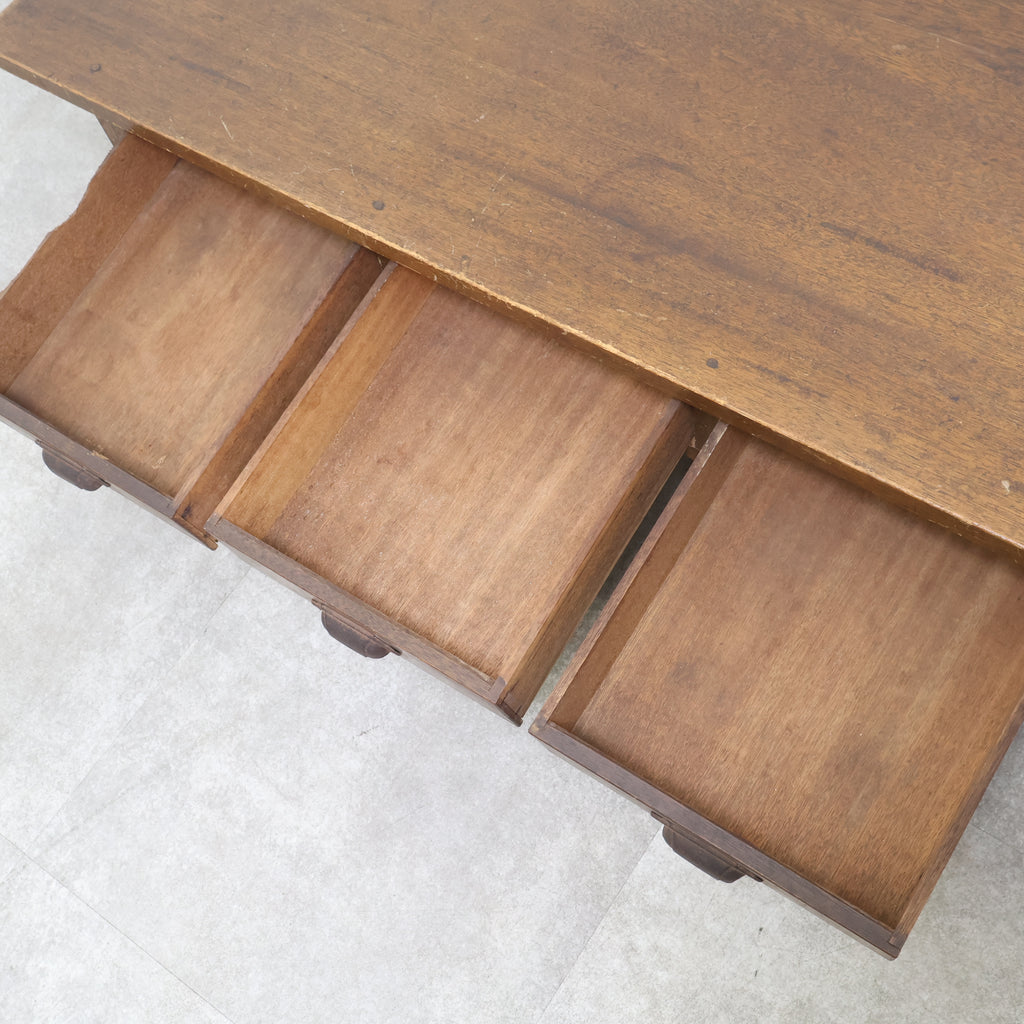文机としてはもちろん、ローテーブルや作業台、ショップ什器としても活躍。和室にはもちろん、和モダンや古道具を取り入れたインテリア、無骨な雰囲気の空間とも相性が良く、置くだけで部屋の雰囲気がぐっと深まります。暮らしの中心に据えて、長く付き合いたくなる古家具です。