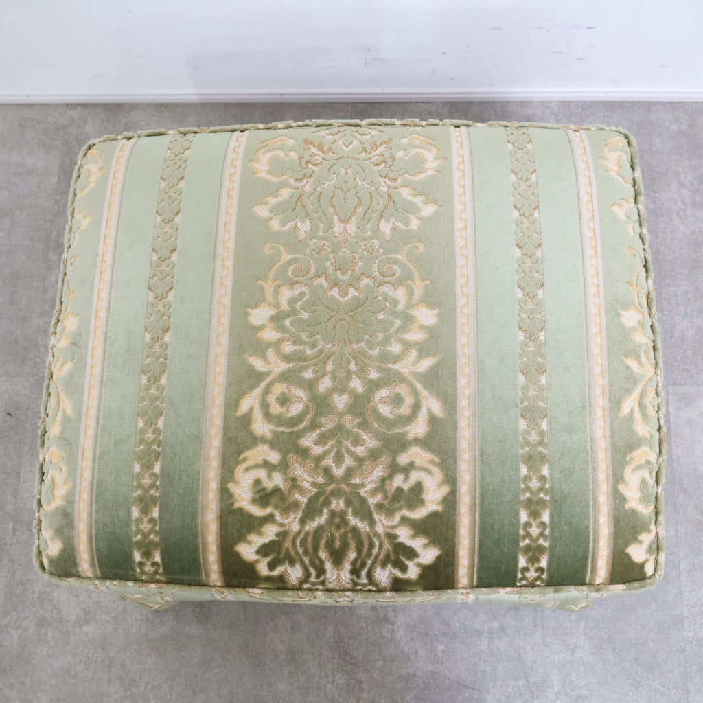 ソファと合わせてフットレストとして使うのはもちろん、来客時の簡易スツールや、トレイを置いてサイドテーブル感覚でも活躍。リビングをワンランク上のクラシックな雰囲気に仕上げたい方や、アメリカンヴィンテージ家具がお好きな方におすすめの一台です。