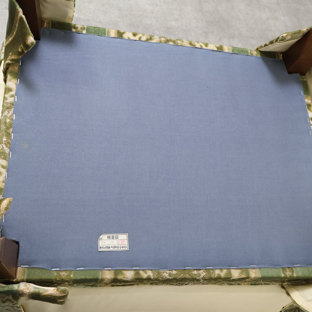 アメリカの伝統家具ブランドならではの、重厚感とやわらかさを併せ持つデザインが印象的。淡いグリーンを基調にしたダマスク調のファブリックは、空間にさりげない華やかさと落ち着きをプラスしてくれます。