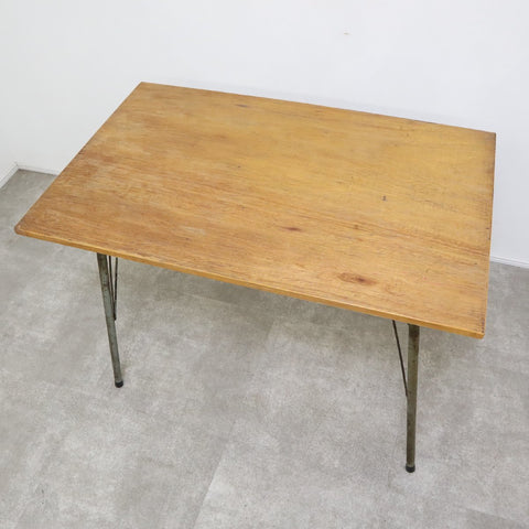 | 昭和レトロなアイアンレッグのテーブルです。 細い鉄脚がおしゃれで雰囲気のあるデザインと全体のフォルムが可愛らしいですね。 所々にあるサビや擦り傷が長年使われてきた証です。作業台としても使い勝手がいいと思います。 また、シンプルなデザインが店舗什器として、花瓶を置いたりディスプレイ台として使用するのにもピッタリですね! 使用した際の汚れ・キズ、がありますが、がたつきはなく、まだまだ問題なくご使用頂けるかと思われます。 |