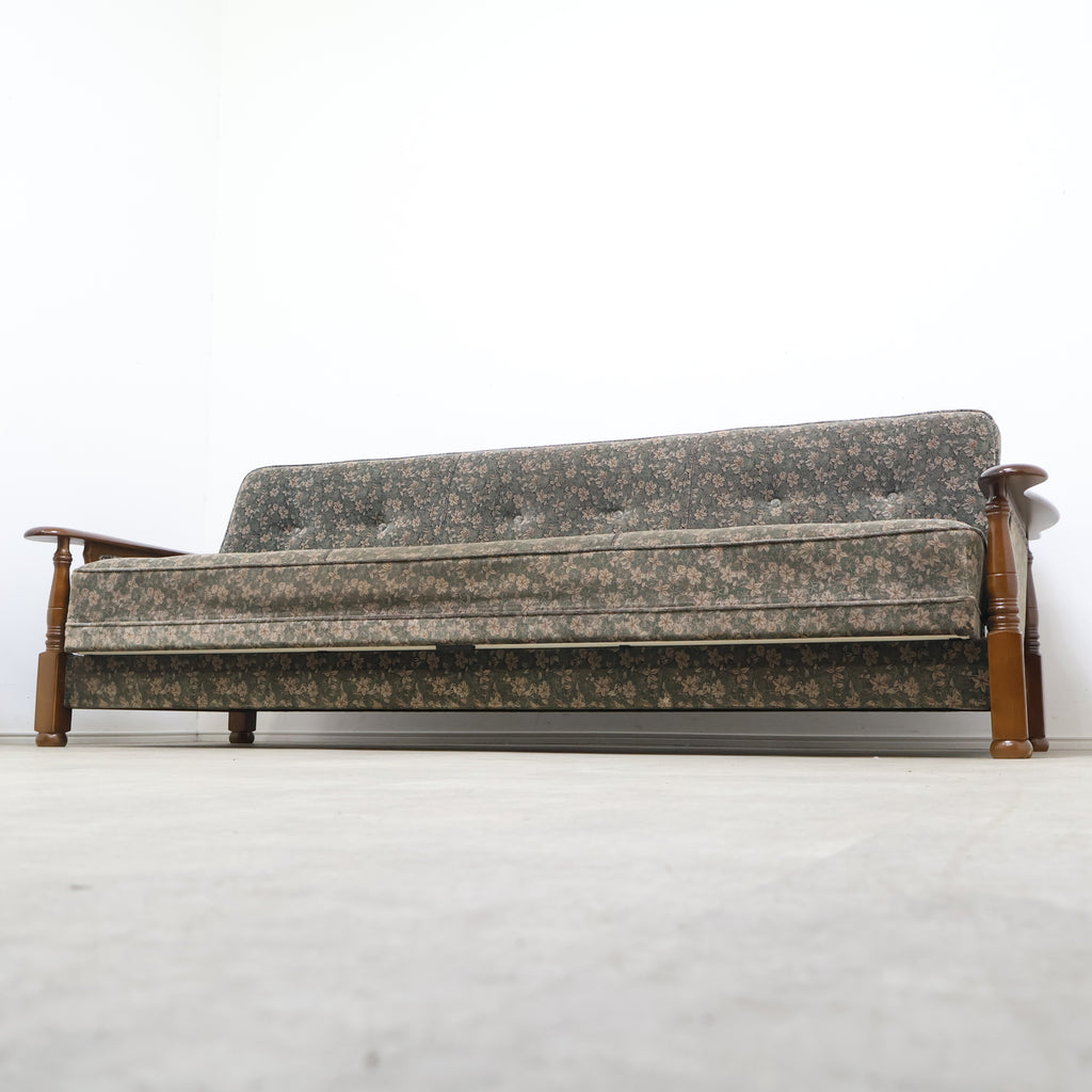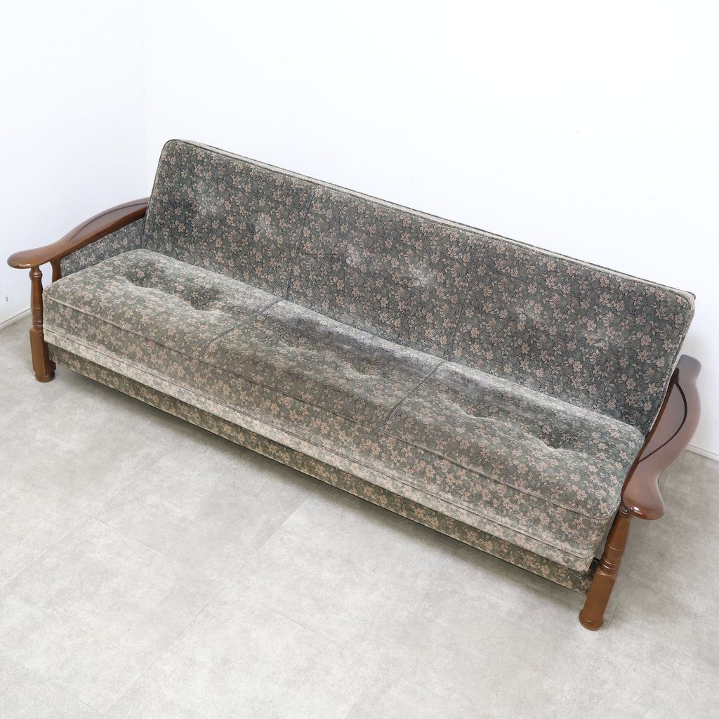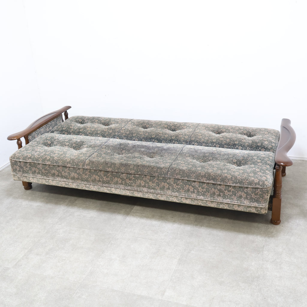 ソファとしてゆったりくつろげるのはもちろん、ベッドとしても使える実用性の高さも魅力。リビングや書斎、来客用のお部屋にもおすすめで、レトロ家具ならではの存在感が空間の主役になります。