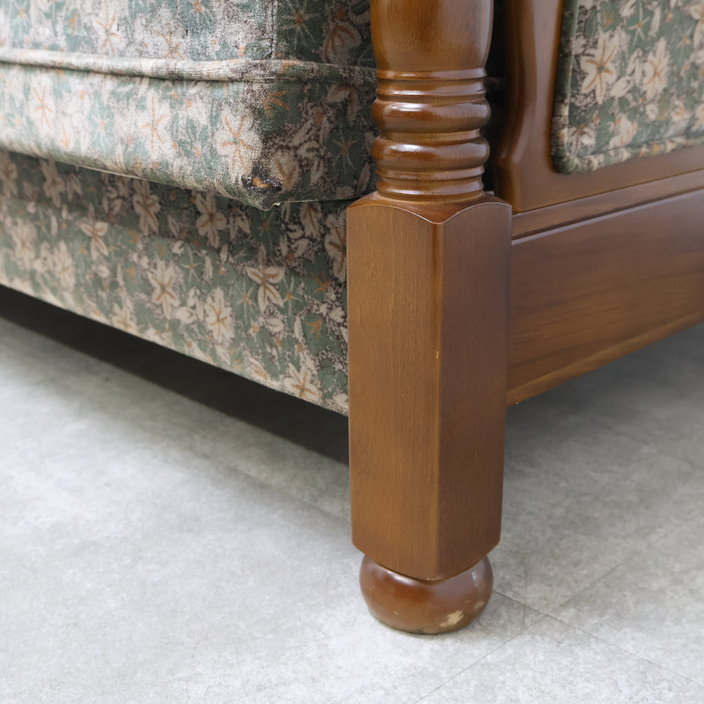 木製フレームと落ち着いた花柄ファブリックの組み合わせが、どこか懐かしく温かみのある空間を演出してくれます。コロニアルシリーズらしい丸みのあるアームや脚部のデザインは、和洋どちらのインテリアにも自然に馴染み、長く愛されてきた理由を感じさせます。