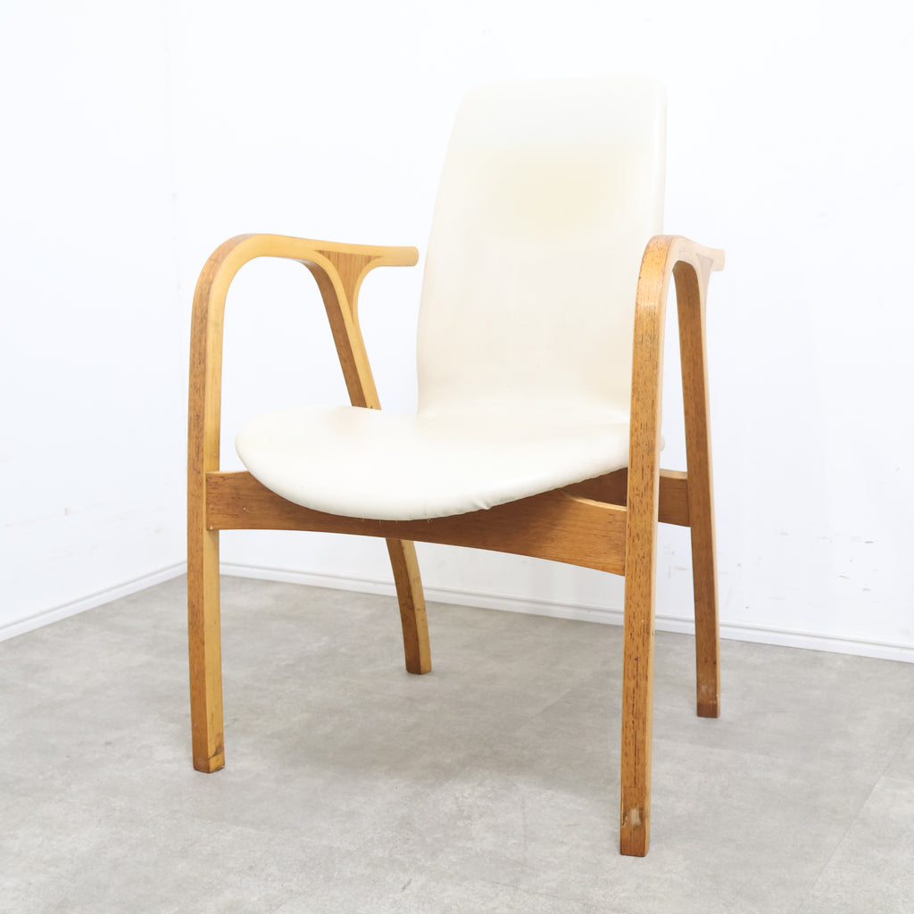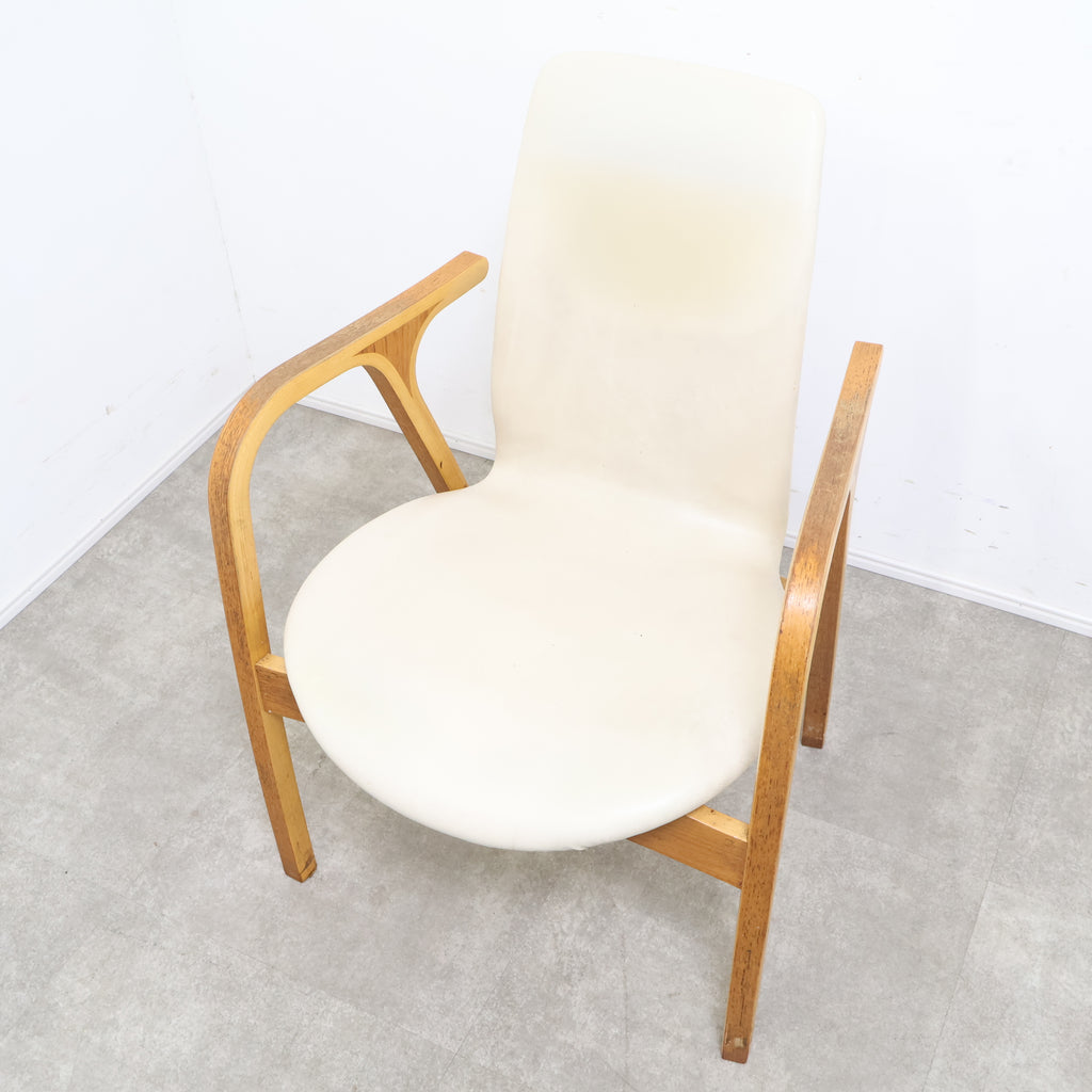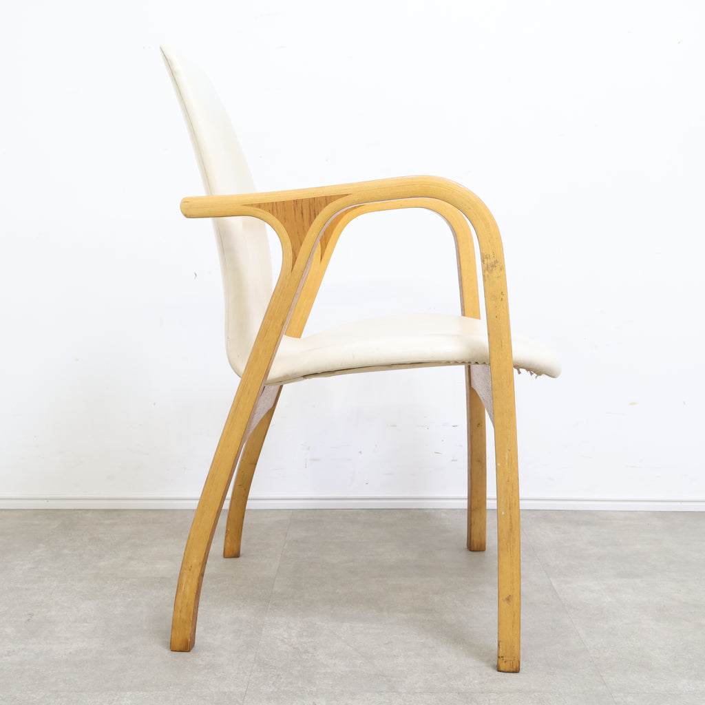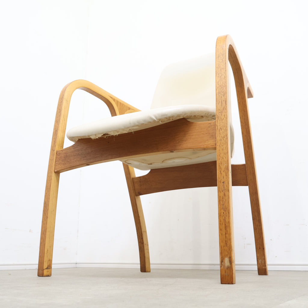 成形合板家具の名門・天童木工らしい、剣持勇デザインの美しい曲線が印象的なヴィンテージアームチェア。