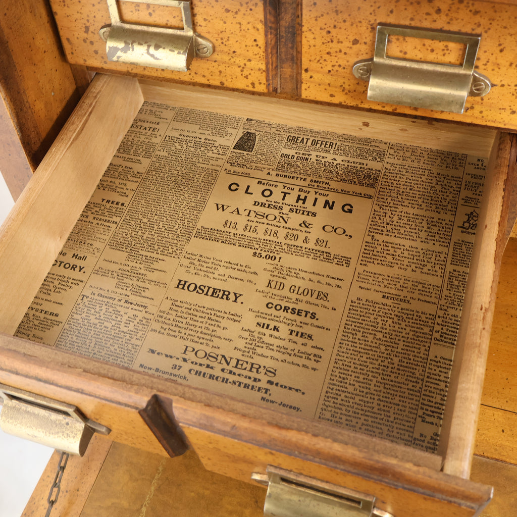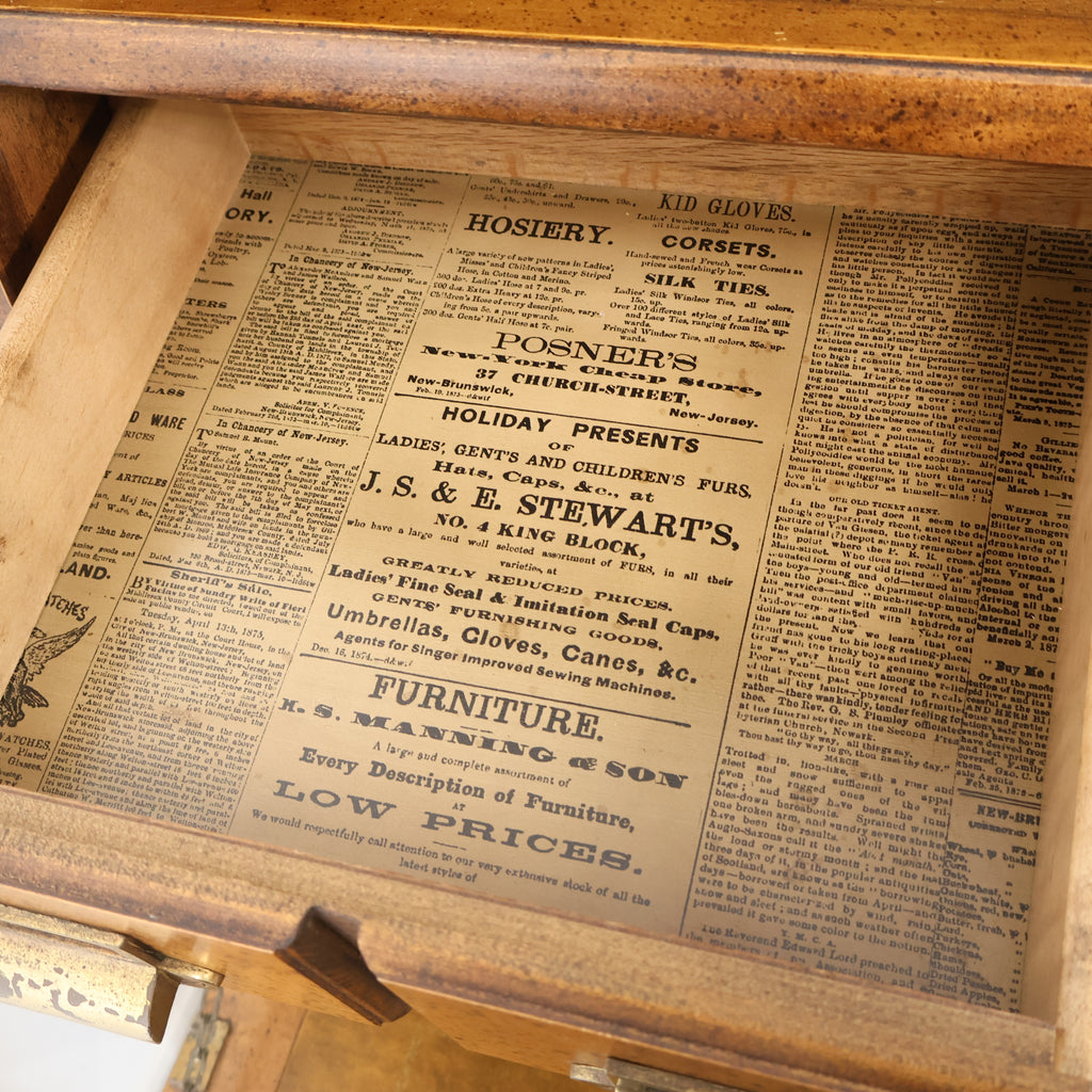内部には小引き出しや仕切り棚が備えられ、文具や書類を整理しながら使えるのも魅力のひとつです。木の風合いを活かした落ち着いた佇まいは、書斎やリビングはもちろん、ショップ什器としても存在感を発揮します。