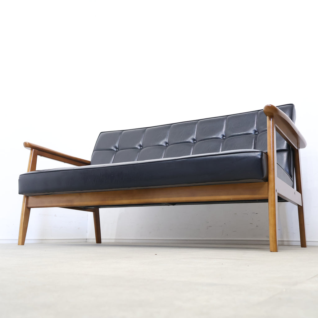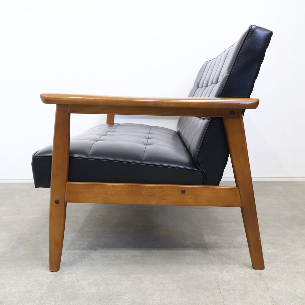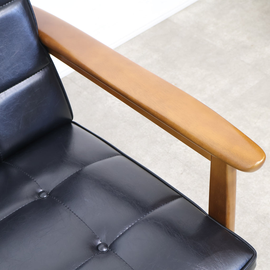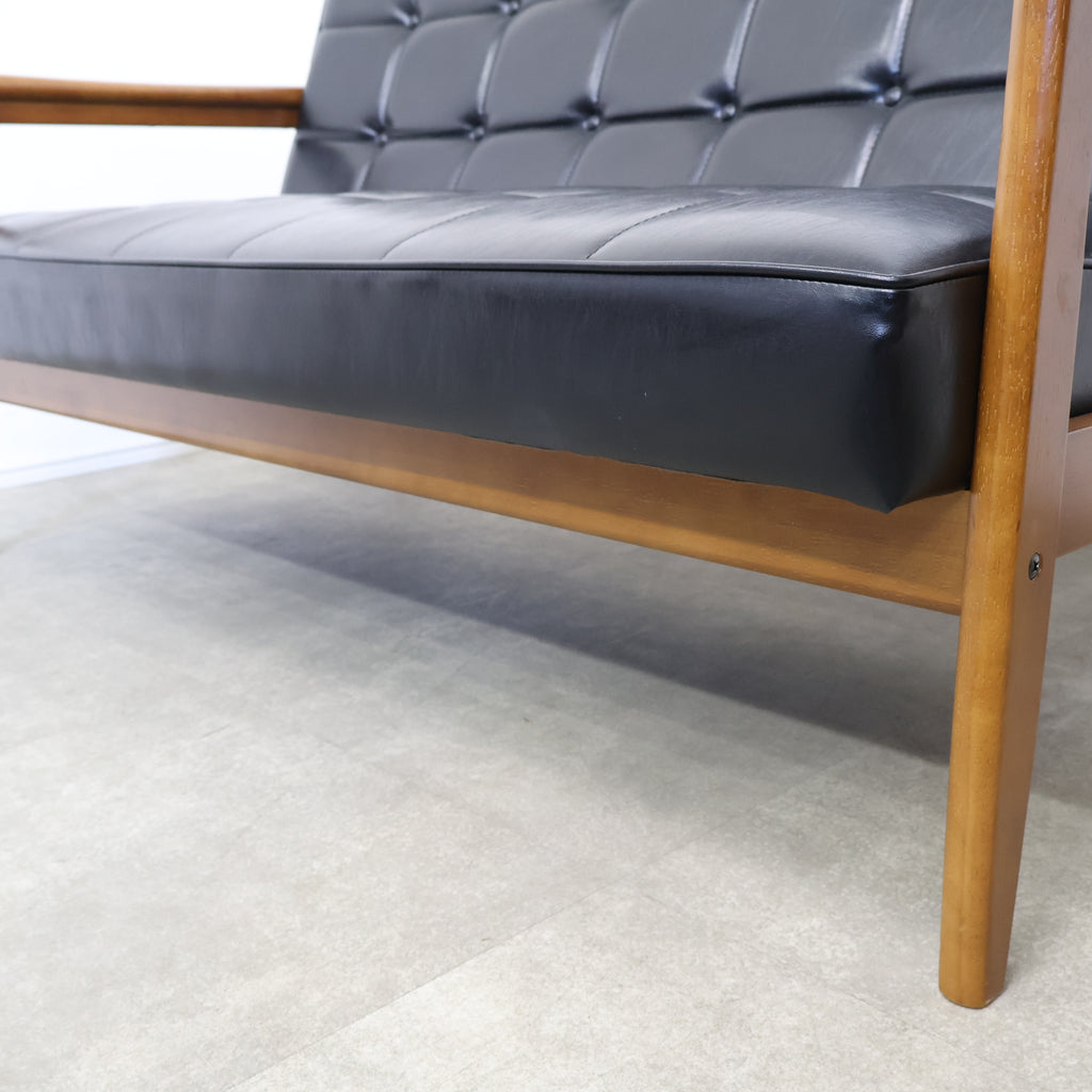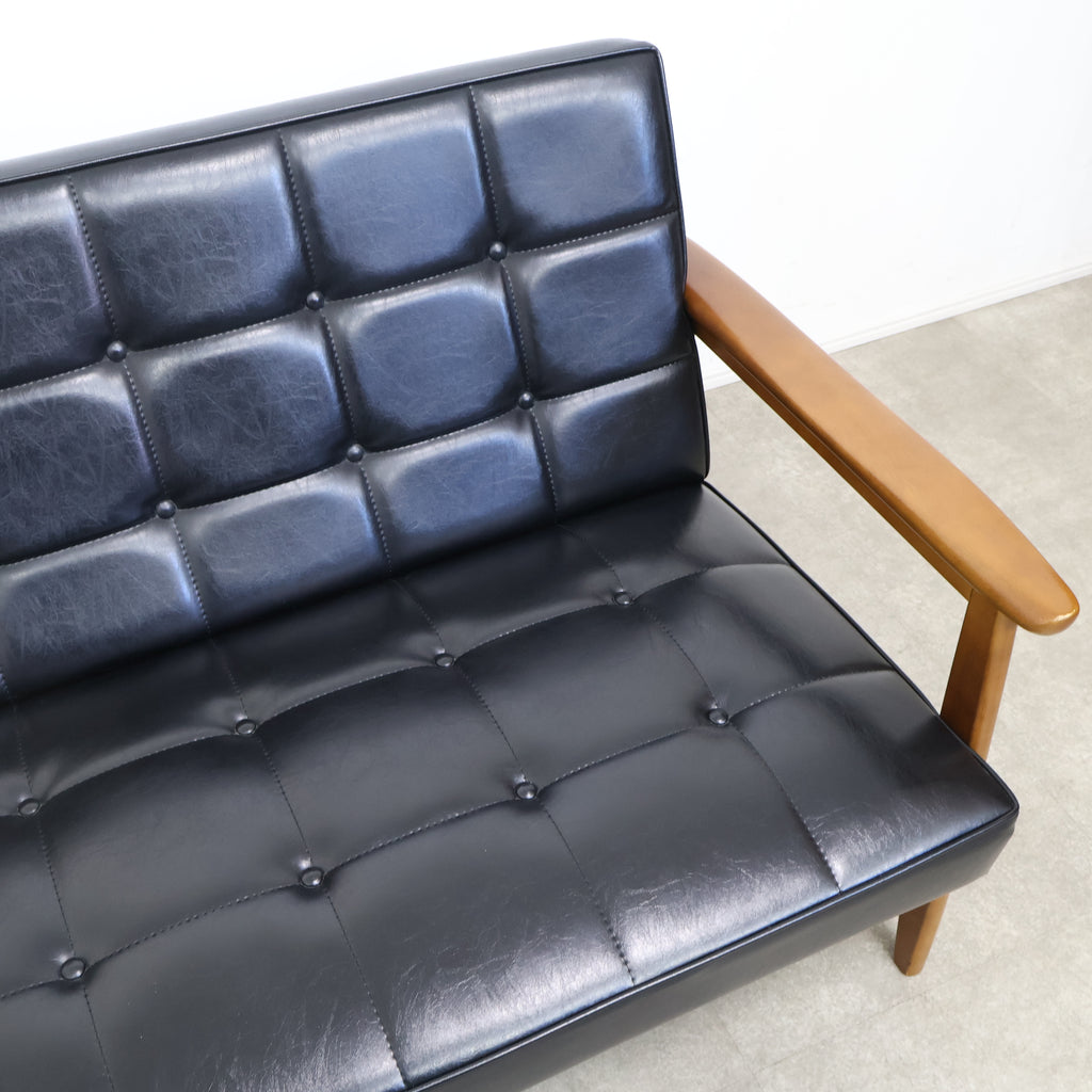 直線的で無駄のないフレームに、ボタン留めの張地が組み合わさり、どこか懐かしくも色あせない存在感を放ちます。日本の住空間に合わせて設計されたサイズ感で、リビングに取り入れても圧迫感が少なく、自然と暮らしに溶け込んでくれます。