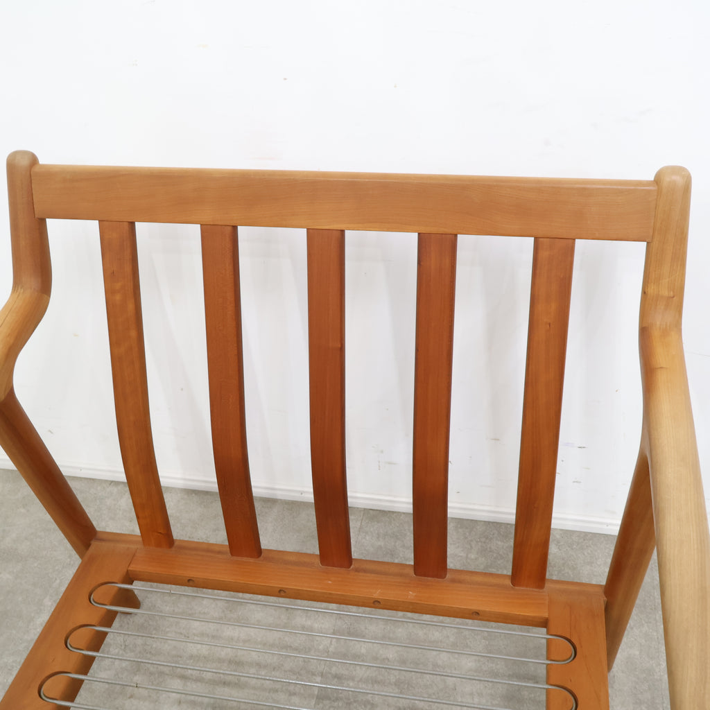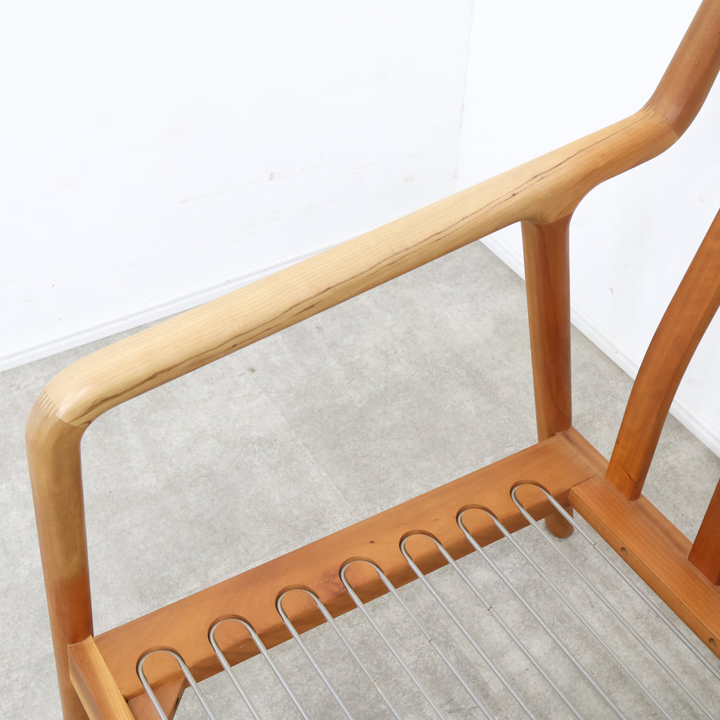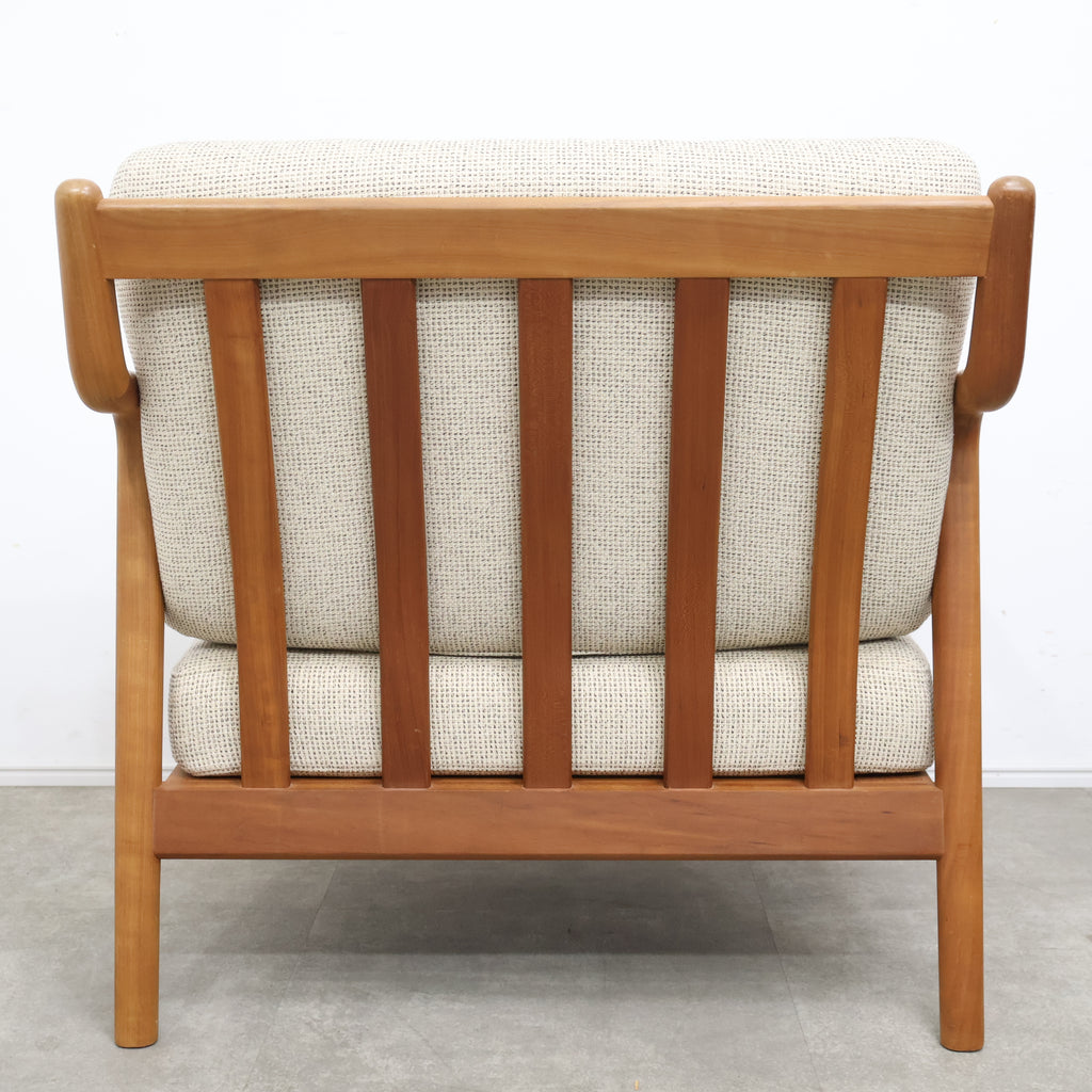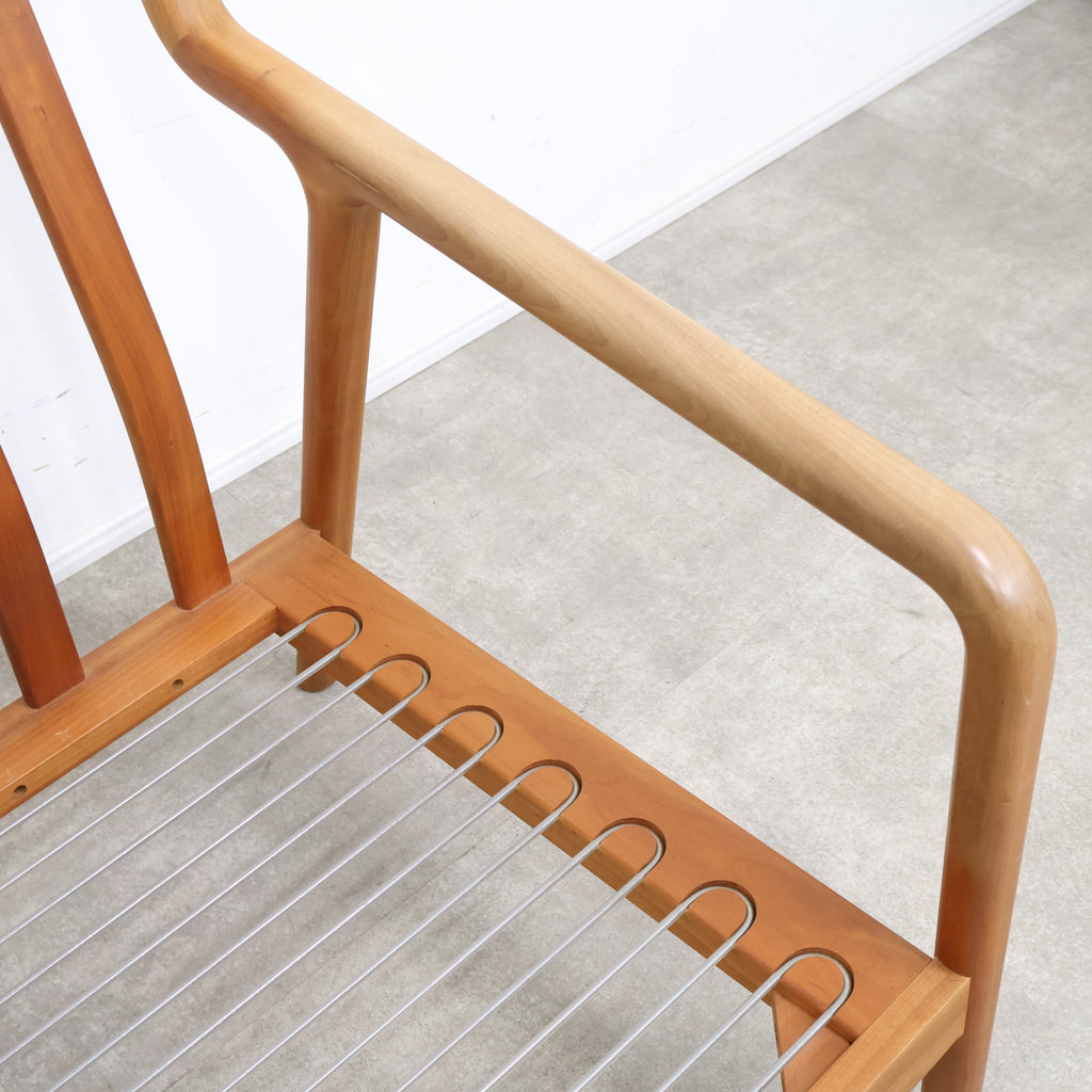 無垢材を贅沢に使用したフレームは、やわらかな曲線と丁寧な削り出しが印象的。シンプルでありながら、木の温もりと上質さがしっかりと伝わる一脚です。