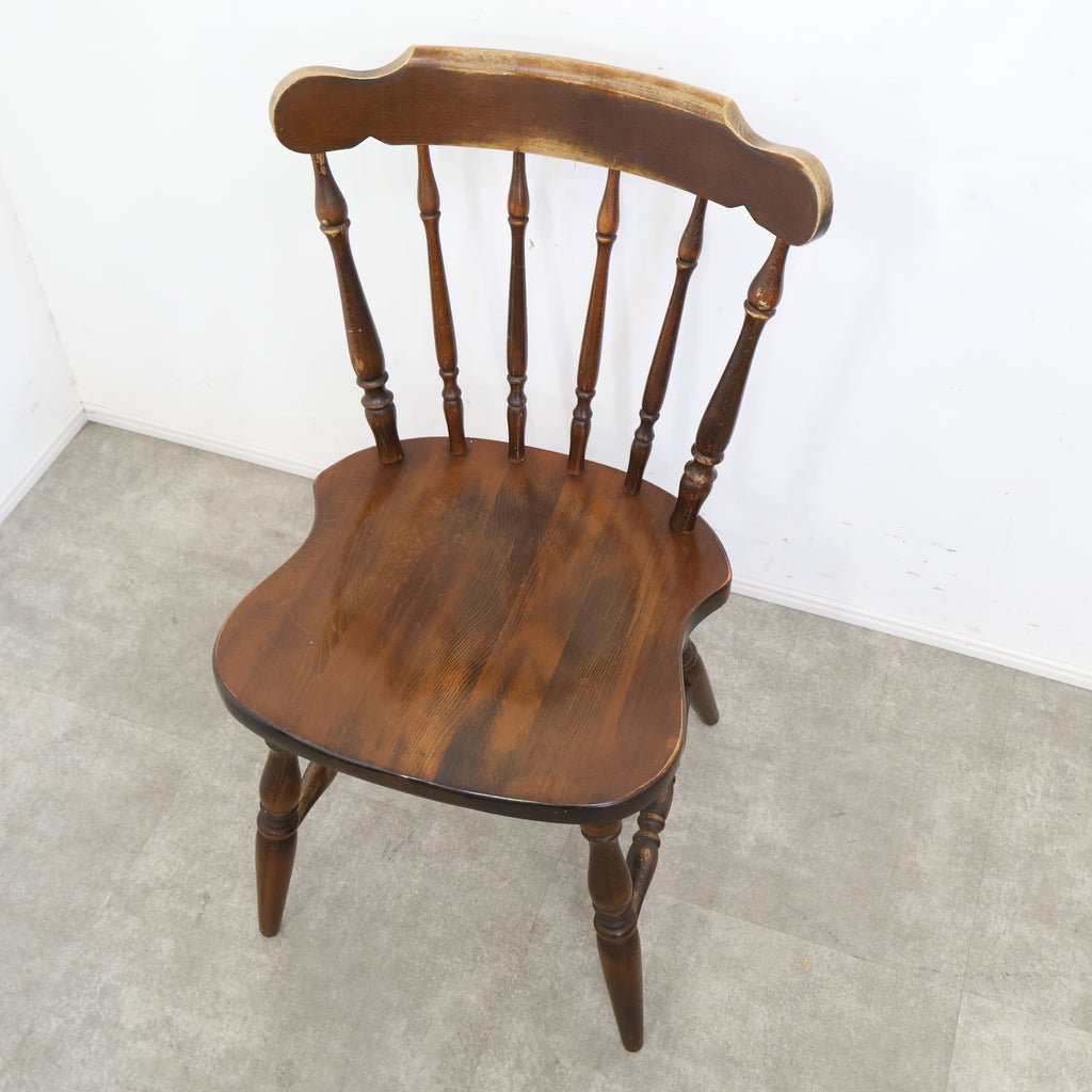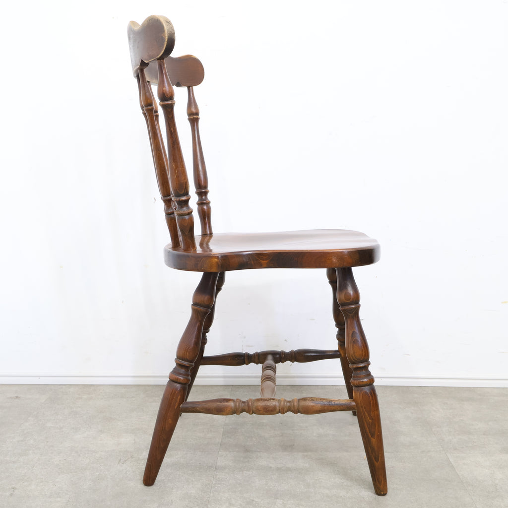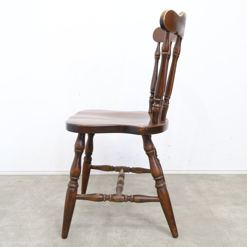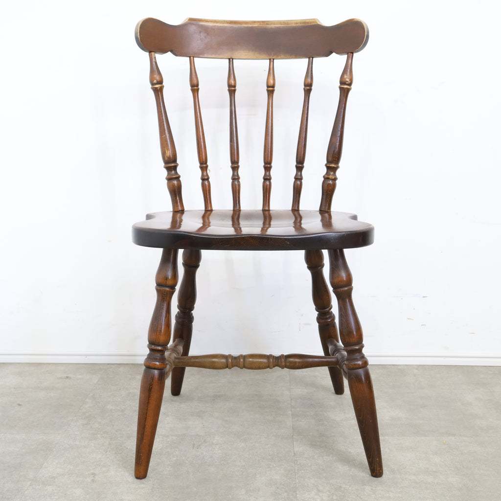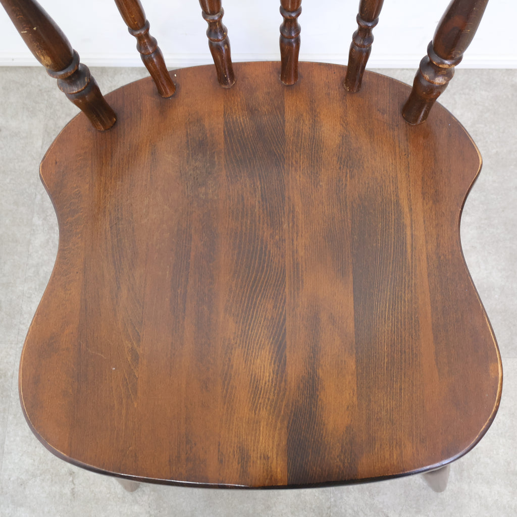クラシカルな背もたれのスポークデザインと、ろくろ挽きの脚部が印象的な一脚。飛騨家具ならではの丁寧な木工技術が感じられ、しっかりとしたつくりと温もりある風合いが魅力です。
