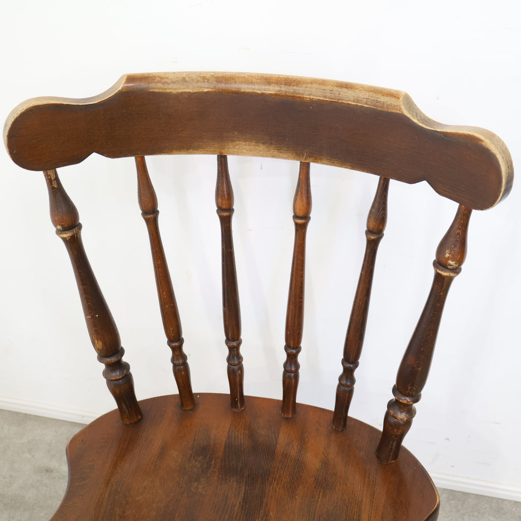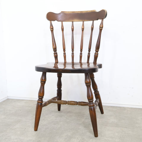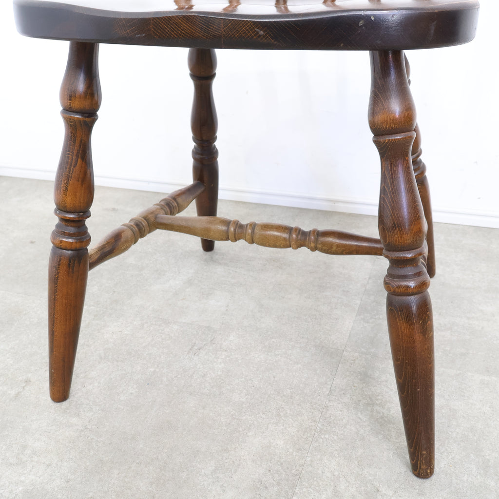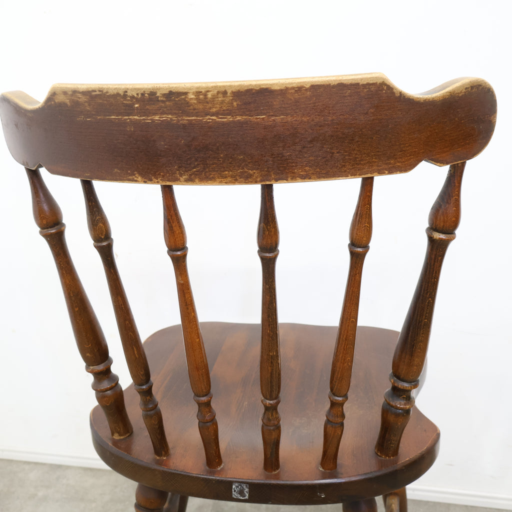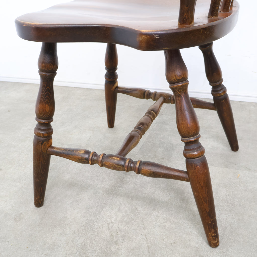 クラシカルな背もたれのスポークデザインと、ろくろ挽きの脚部が印象的な一脚。飛騨家具ならではの丁寧な木工技術が感じられ、しっかりとしたつくりと温もりある風合いが魅力です。
