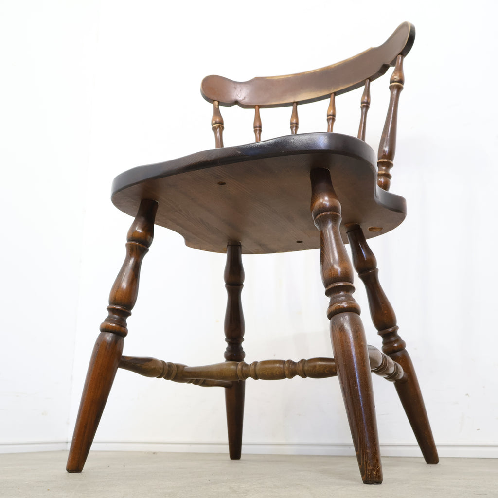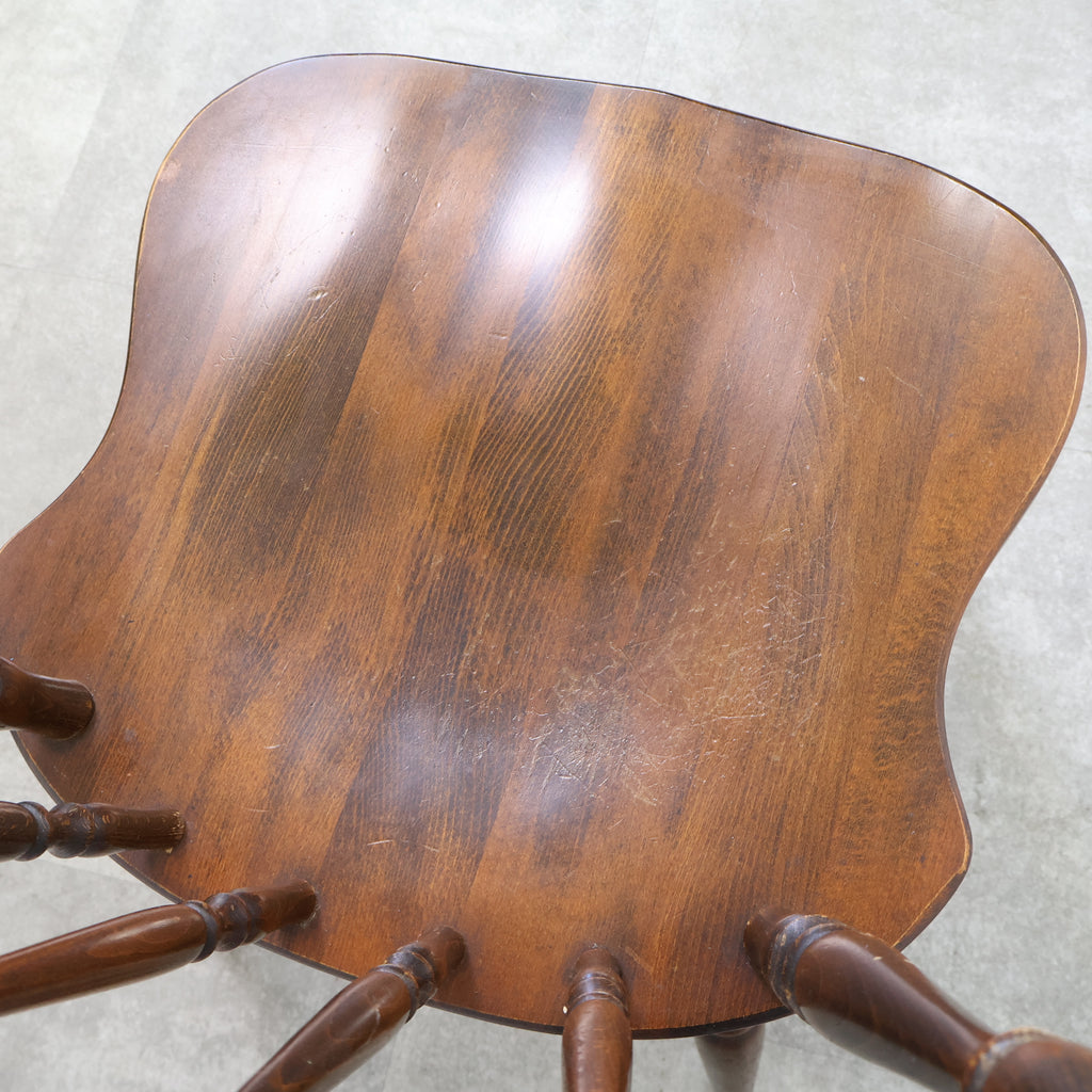 丸みのある座面は身体にやさしくフィットし、日常使いのダイニングチェアとしても安心感のある座り心地。経年による木肌の艶や味わいも楽しめ、ヴィンテージならではの存在感があります。