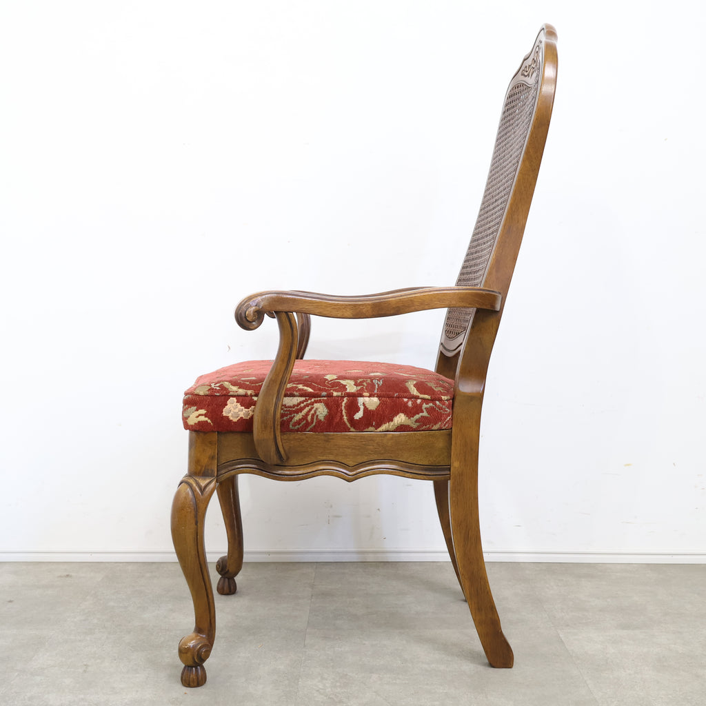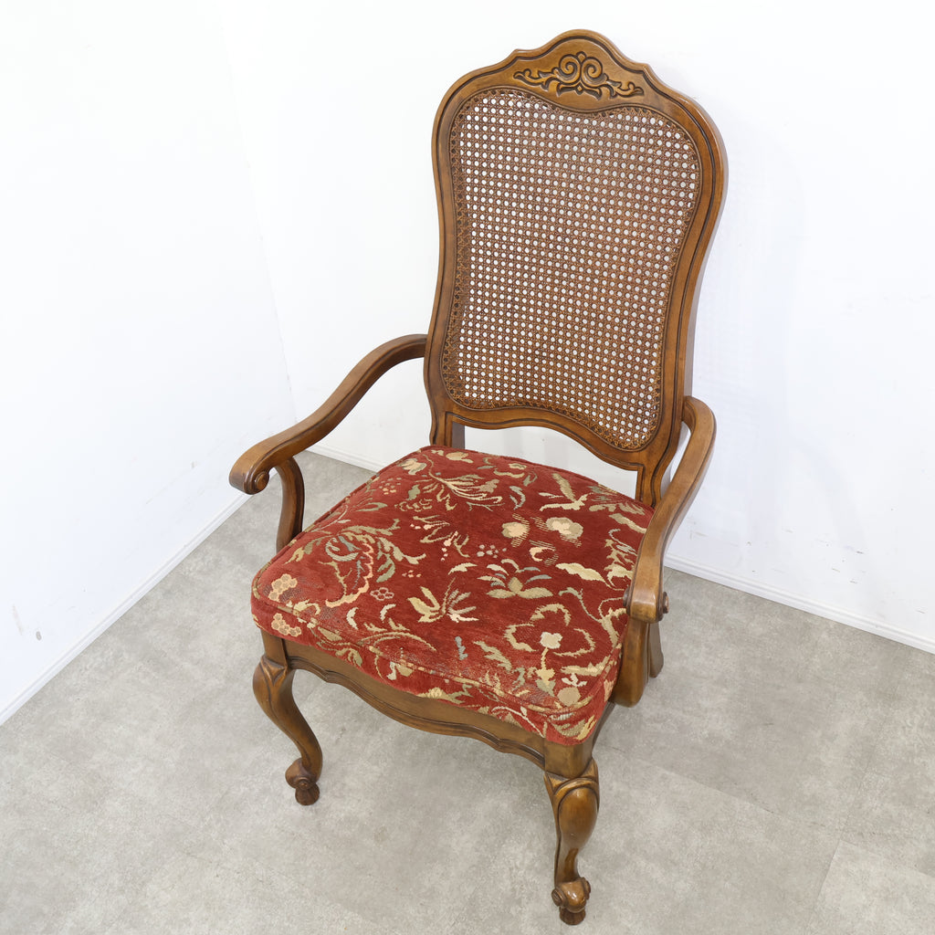 アンティーク調のラタン張りアームチェア