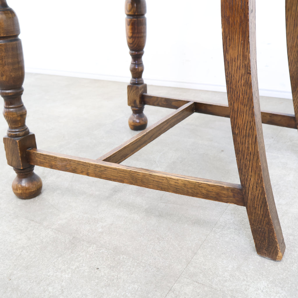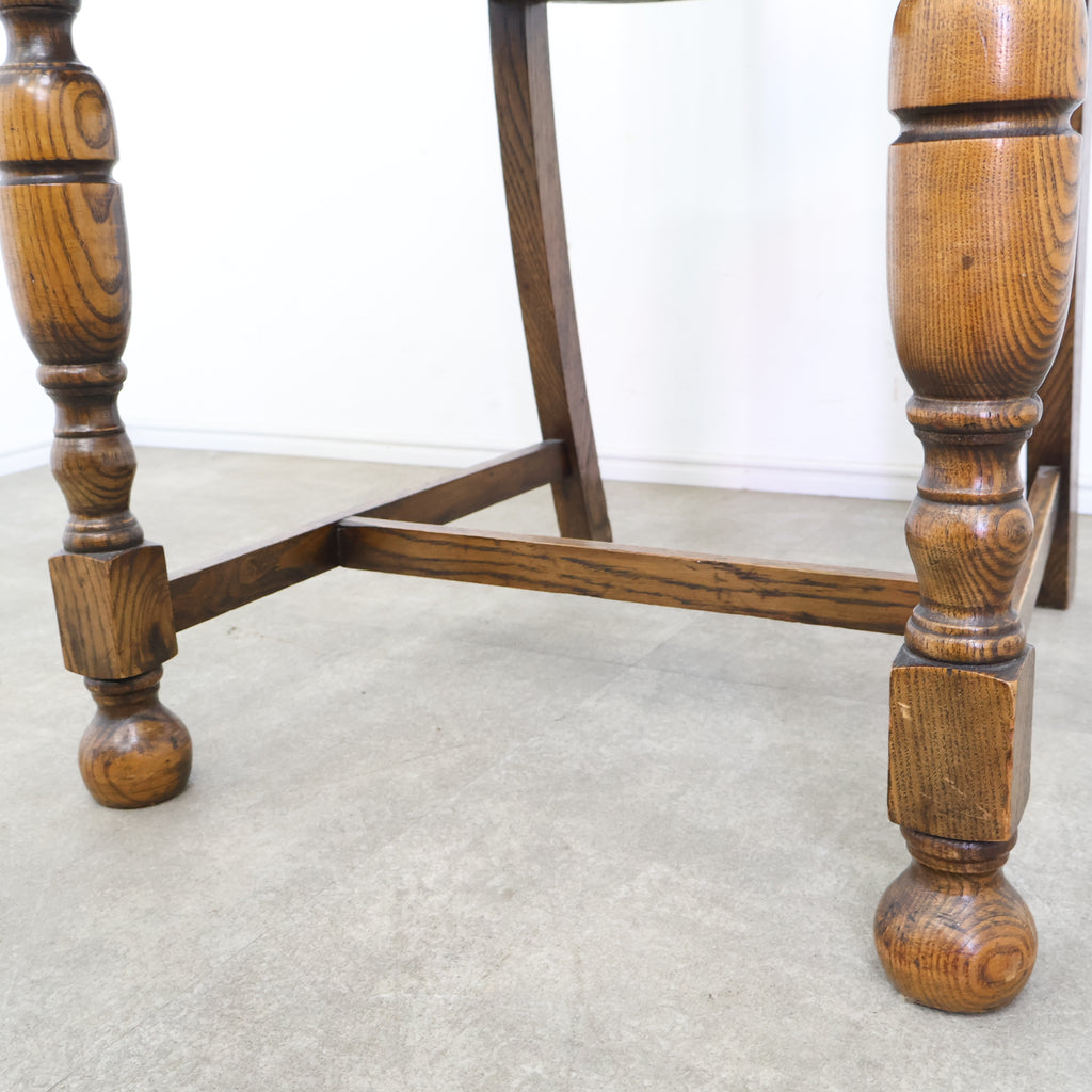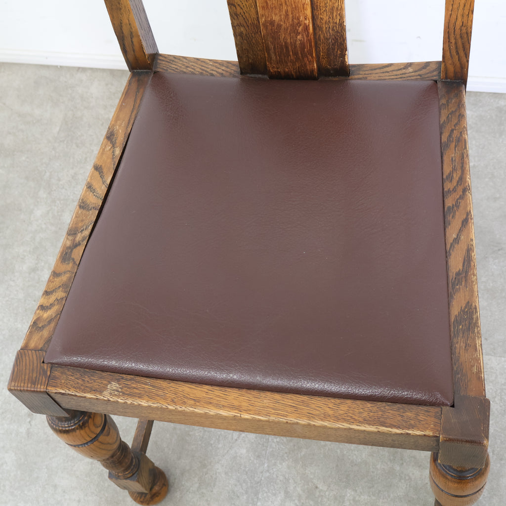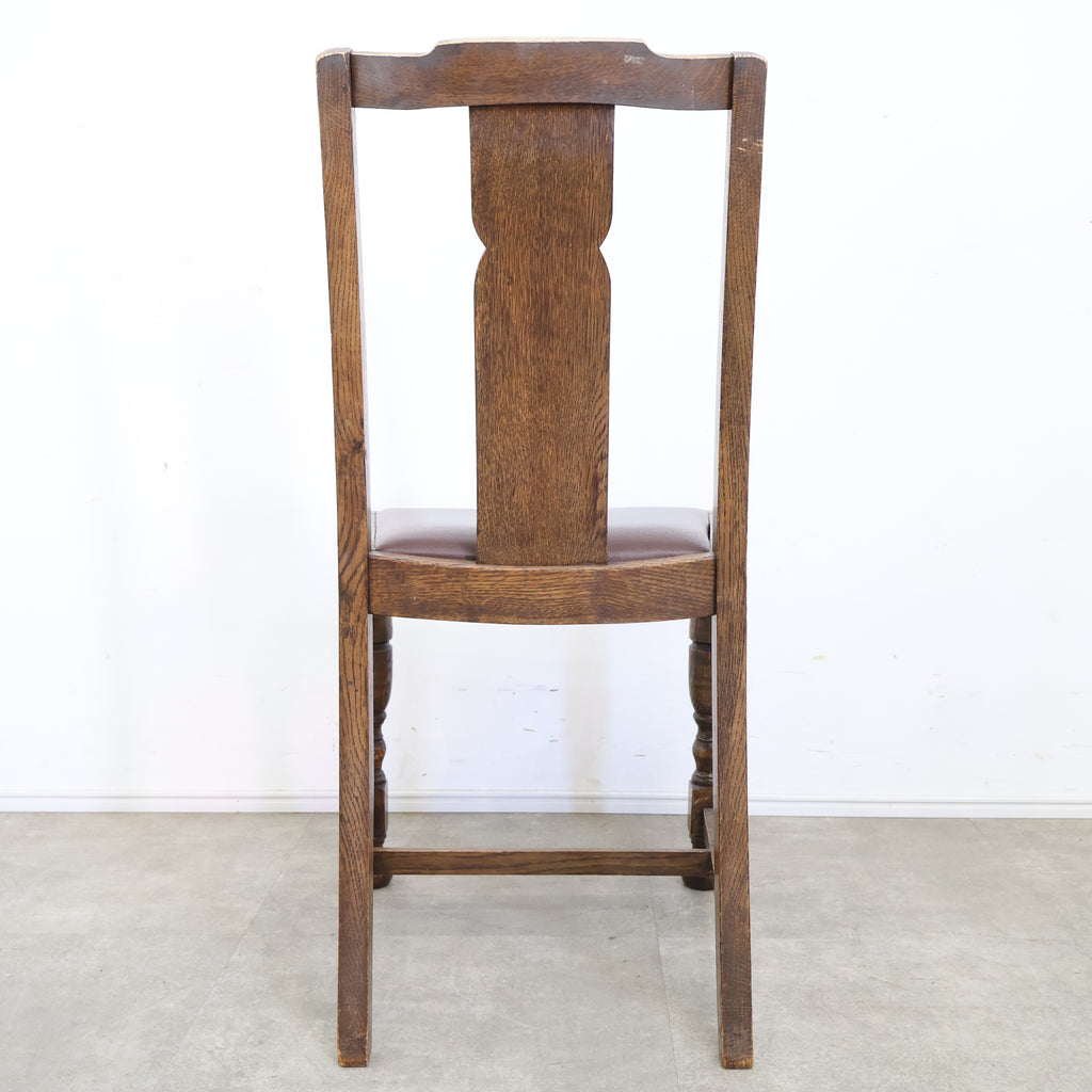 英国アンティークのダイニングチェアです。 無垢材の重厚な木の風合いと、美しい木目が印象的な一脚。ろくろ加工が施された脚部や背もたれの装飾が、クラシックで気品ある雰囲気を演出しています。