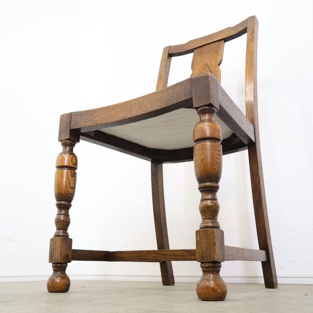 ダイニングチェアとしてはもちろん、書斎や玄関のアクセントチェアとしてもおすすめ。レザー調の座面が空間に落ち着きを与え、使い勝手の良さとデザイン性を兼ね備えています。英国アンティークらしい重厚感があり、置くだけで空間の印象を引き締めてくれます。 クラシックやアンティーク、ヨーロピアンテイストのインテリアと相性が良く、長く愛用できる一品。