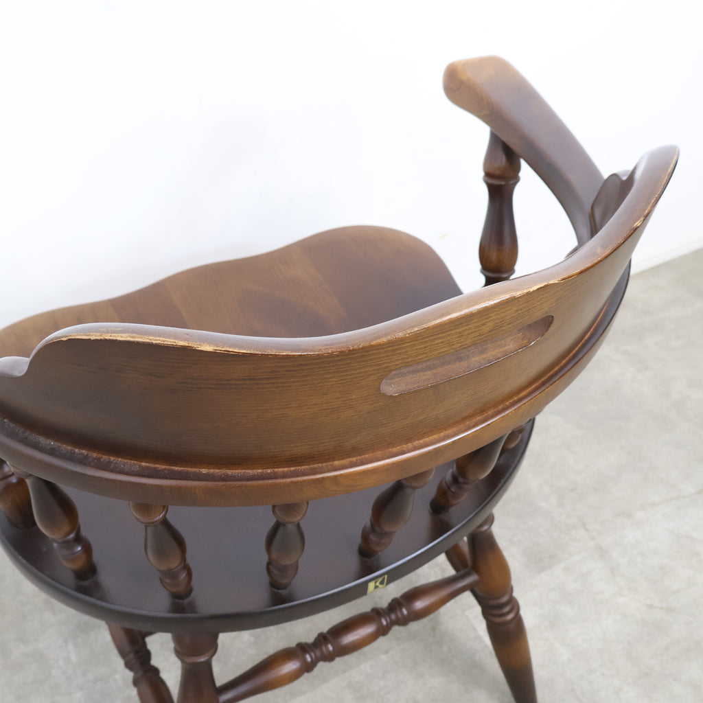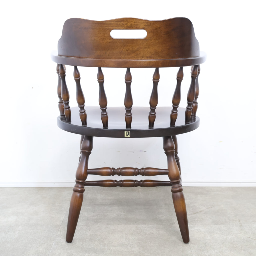 飛騨産業のキツツキマークが入ったダイニングチェアです。 滑らかな木肌と丁寧なろくろ加工が美しく、クラシックなウィンザースタイルが空間に落ち着いた雰囲気をもたらします。