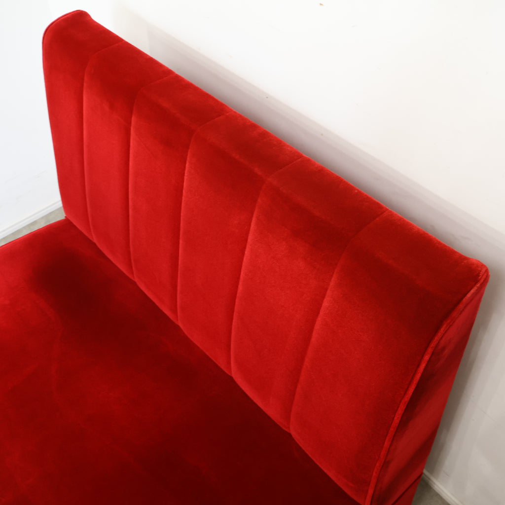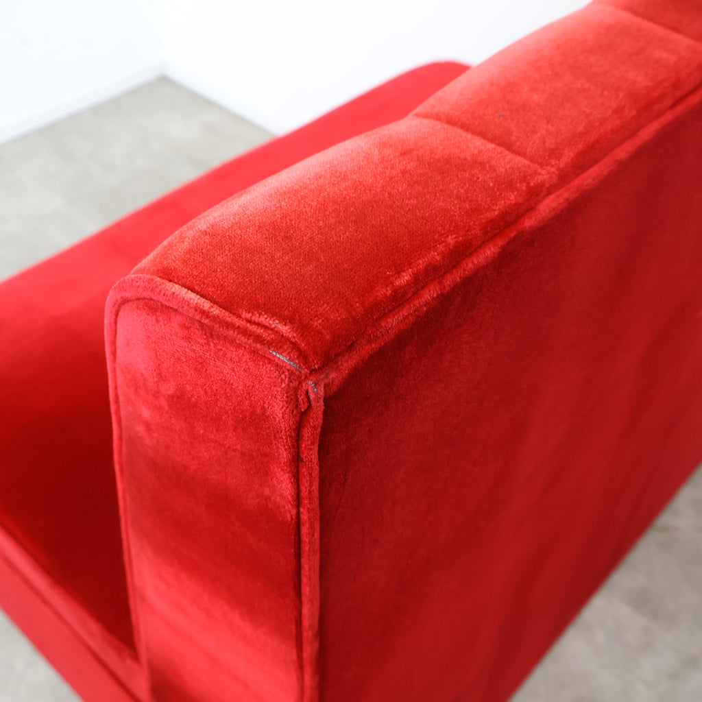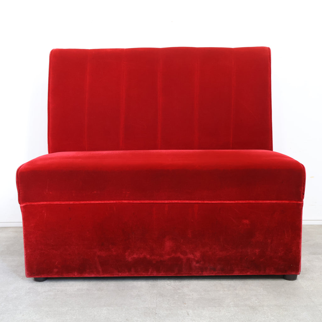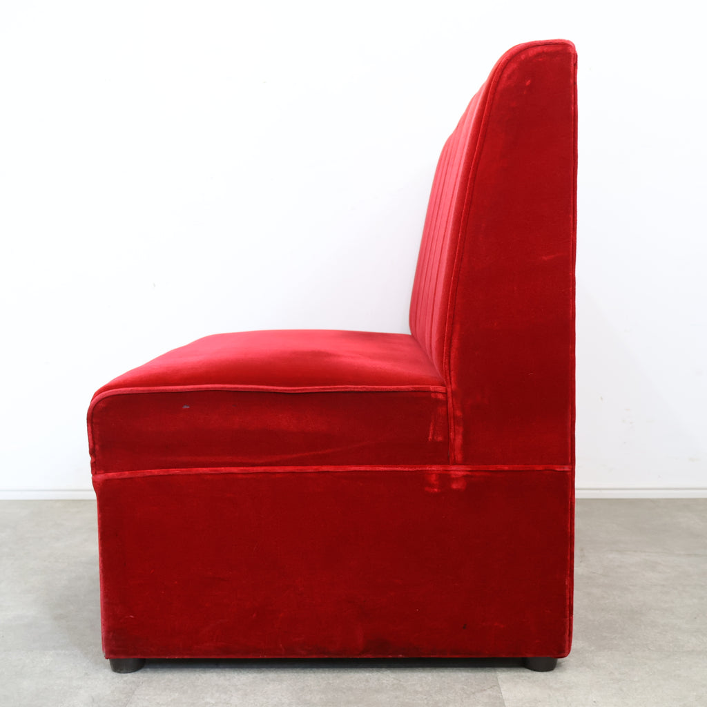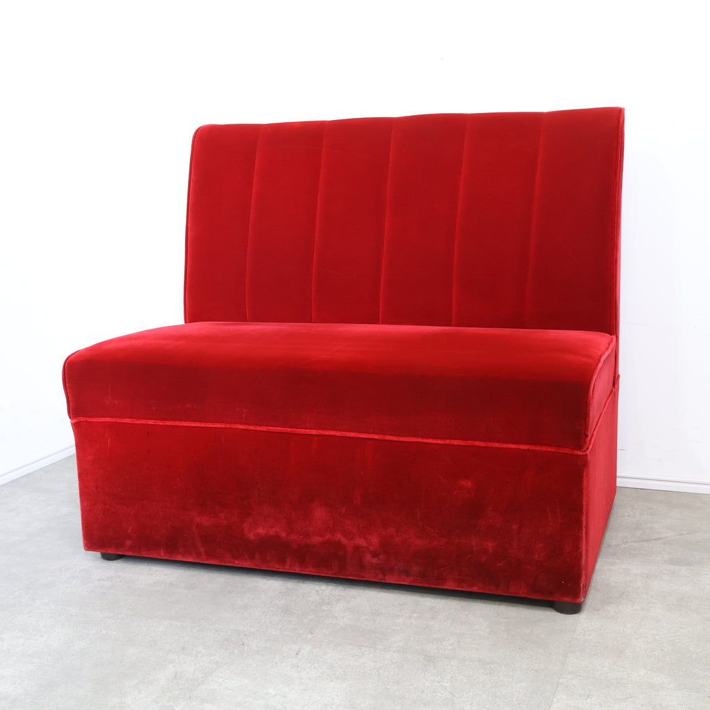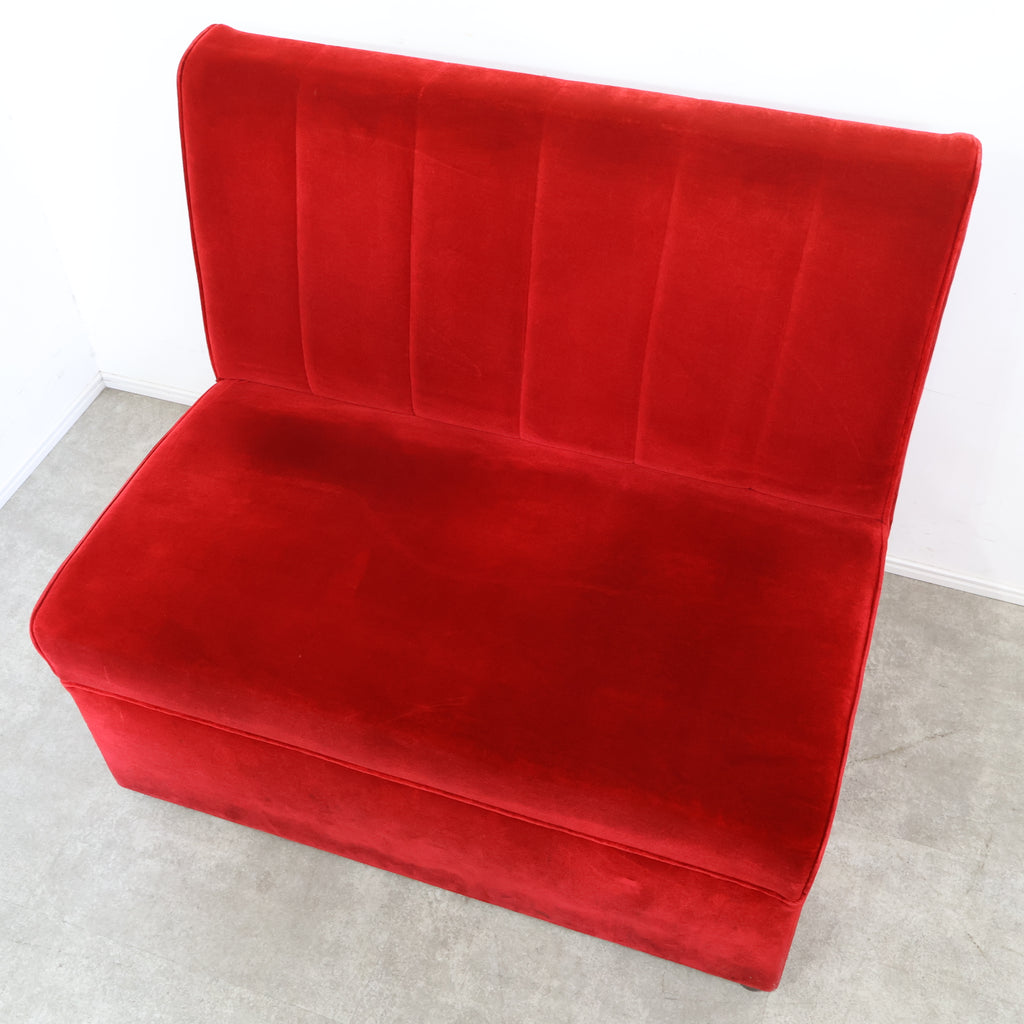 鮮やかなレッドカラーが印象的な、喫茶店・ラウンジで使用されていた2人掛けボックスソファです。