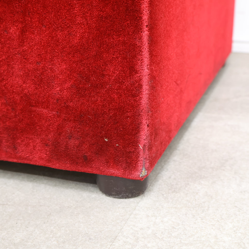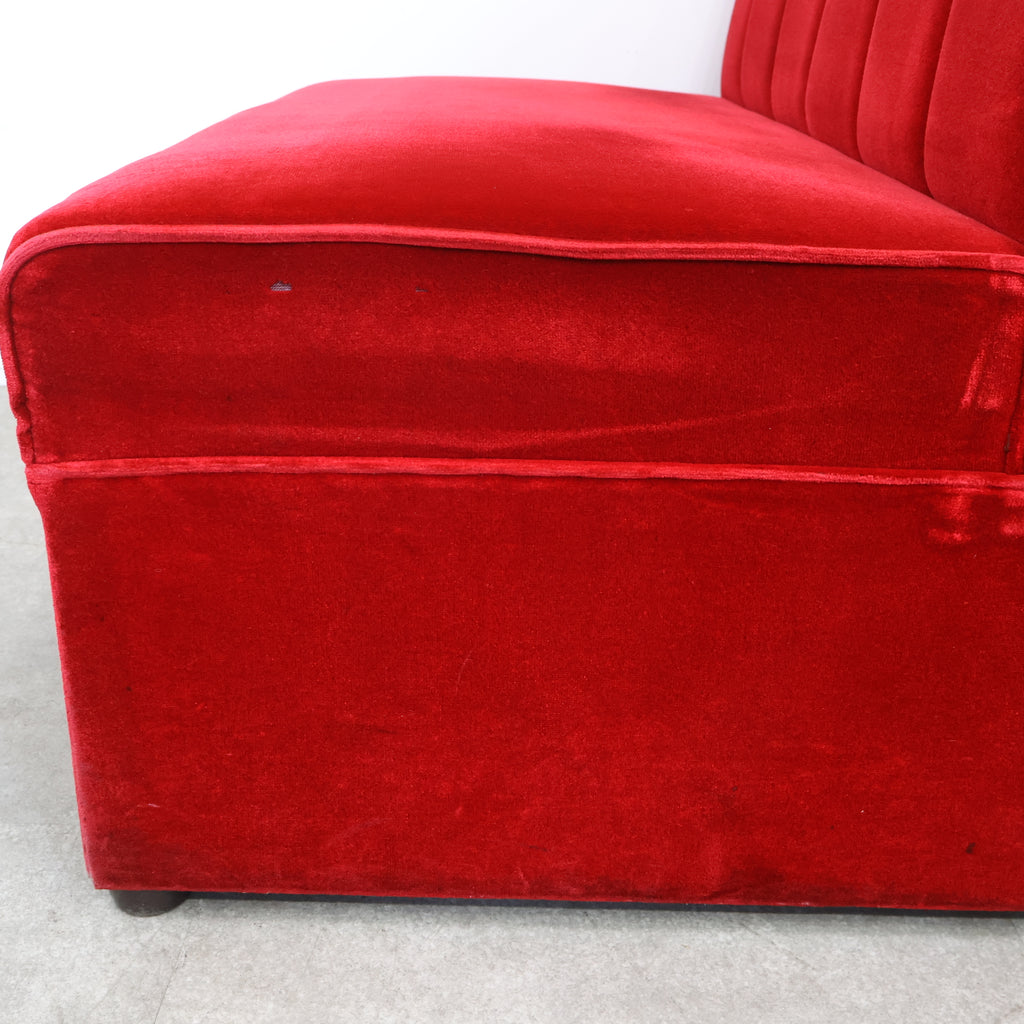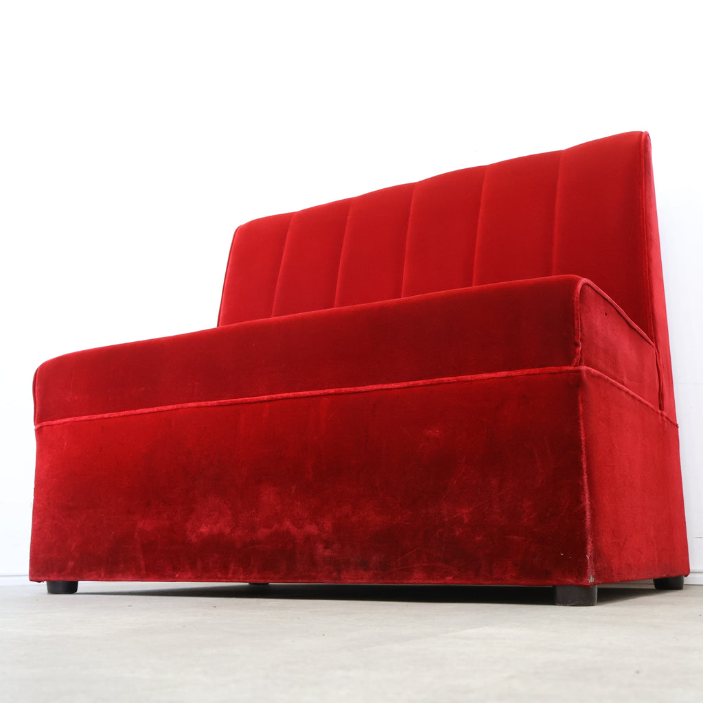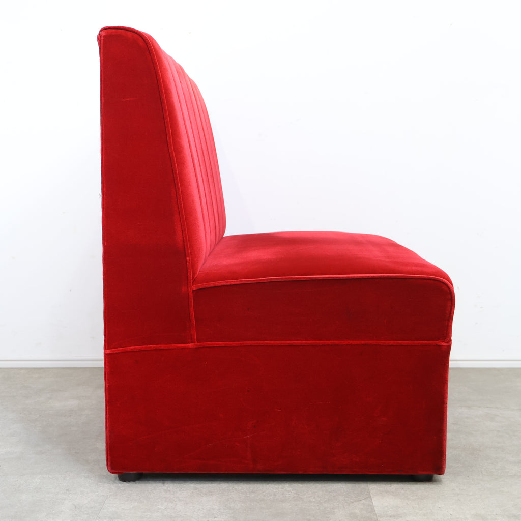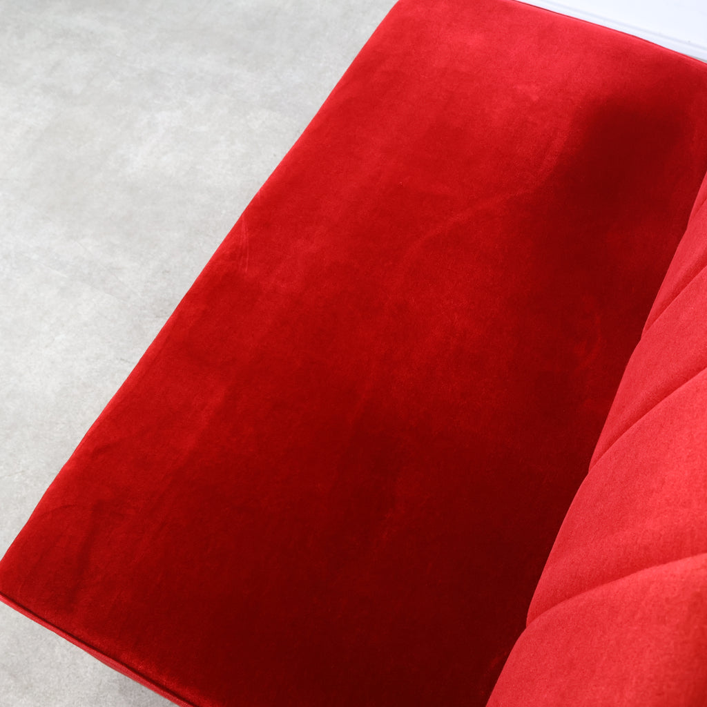鮮やかなレッドカラーが印象的な、喫茶店・ラウンジで使用されていた2人掛けボックスソファです。