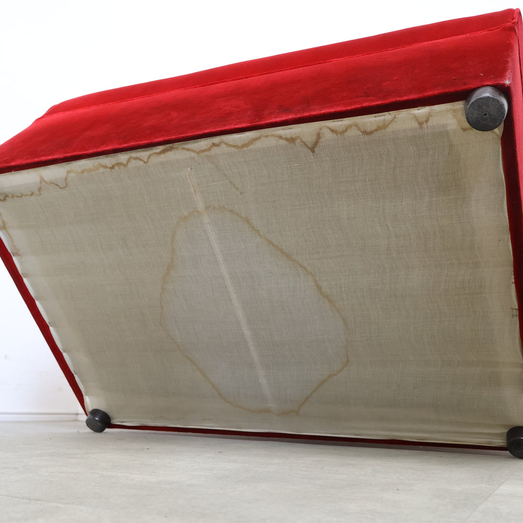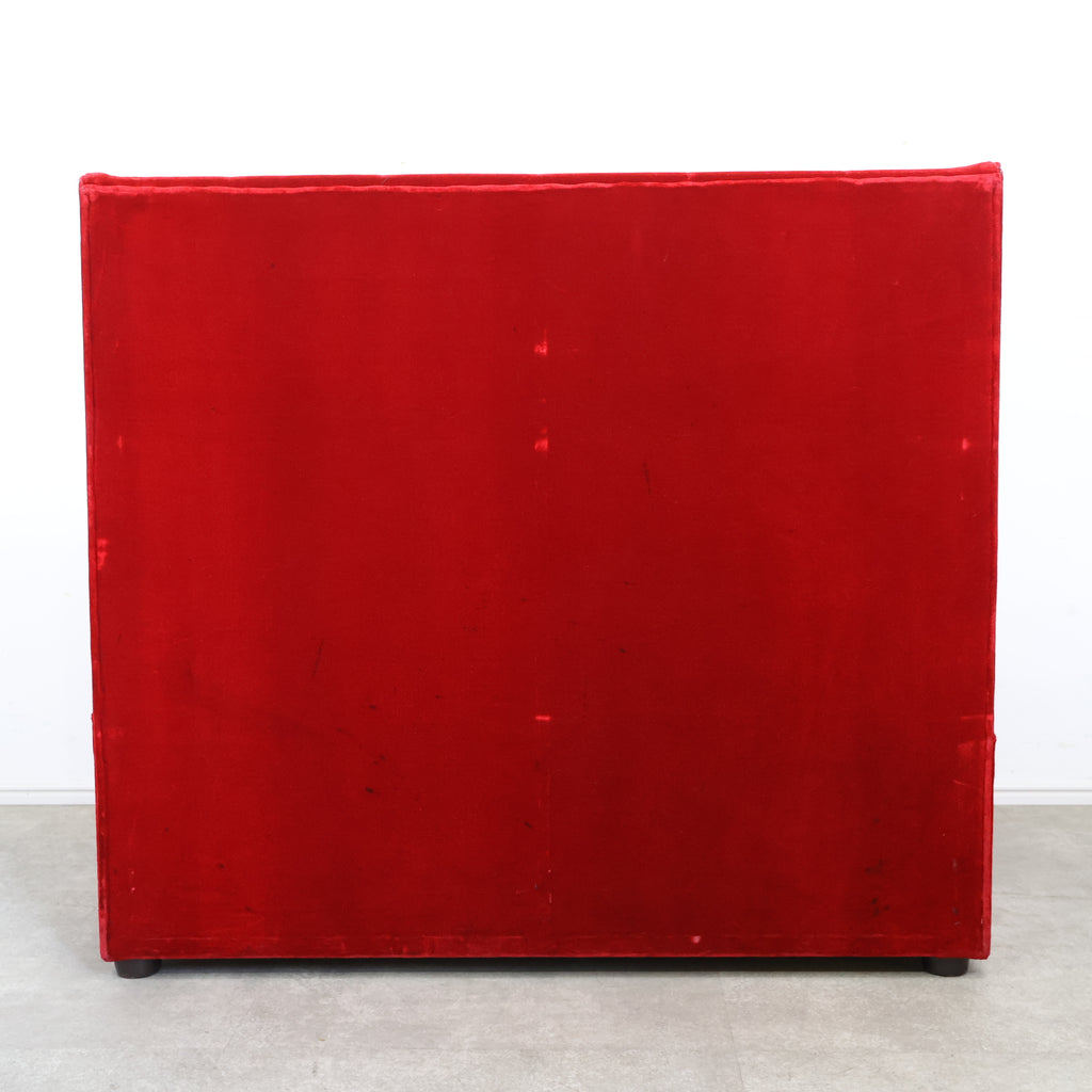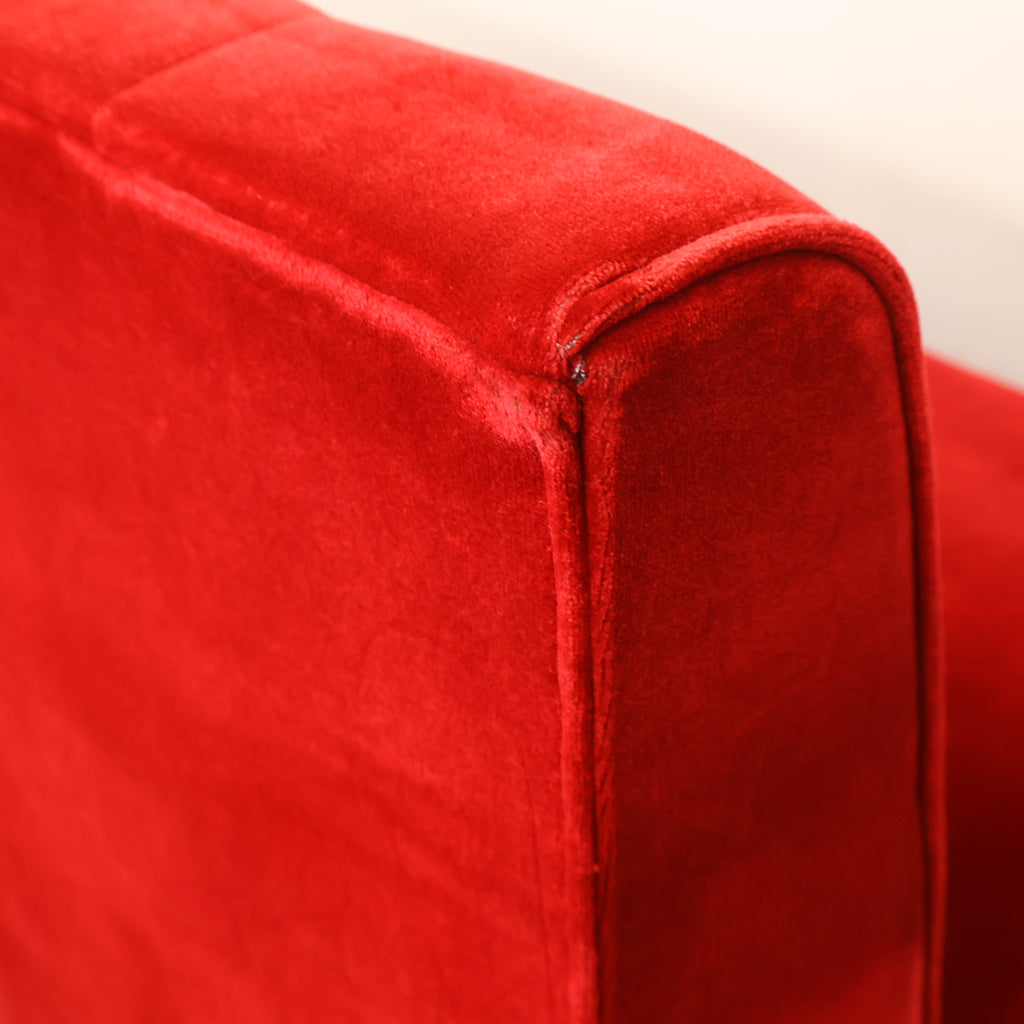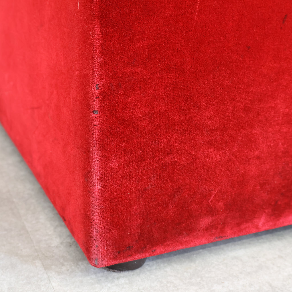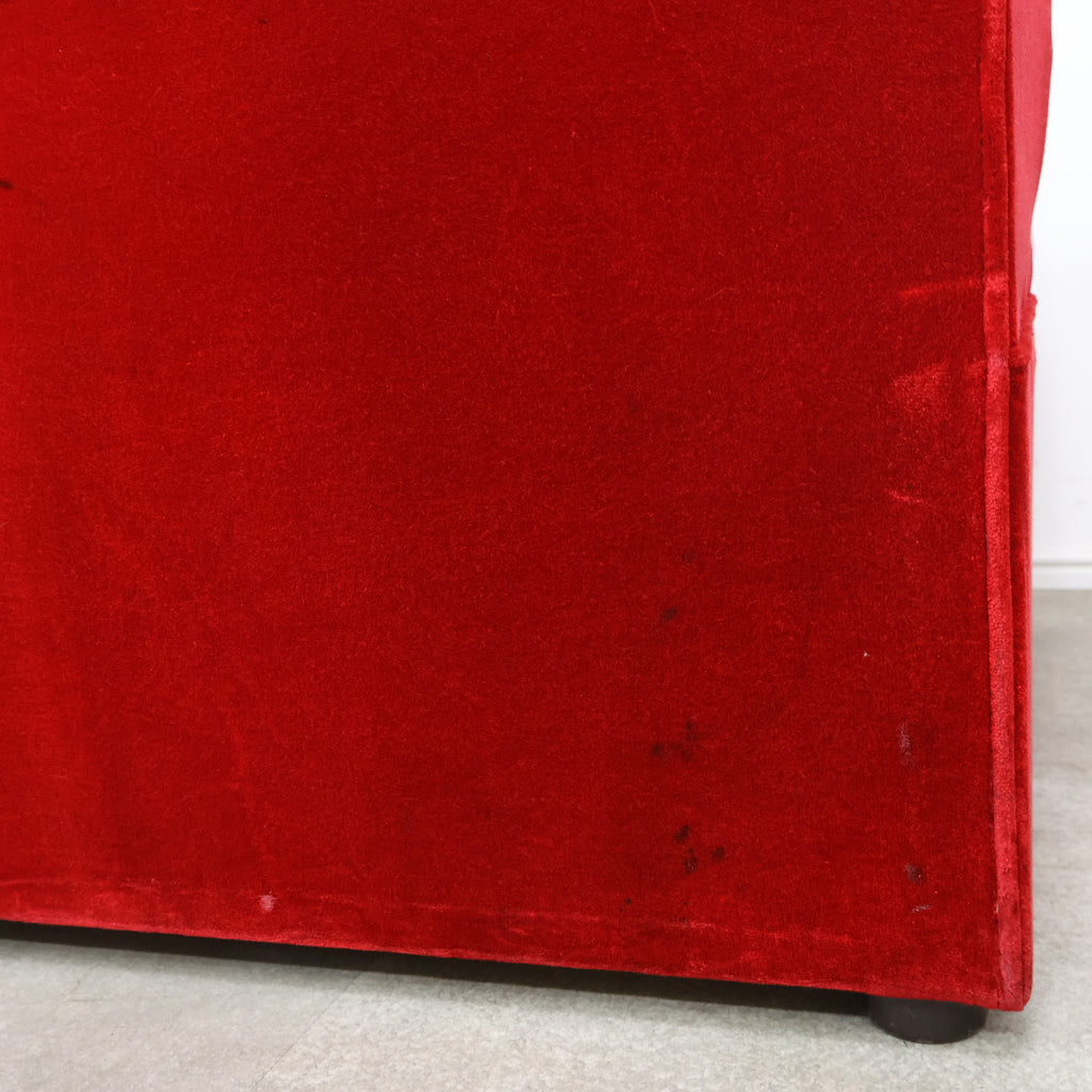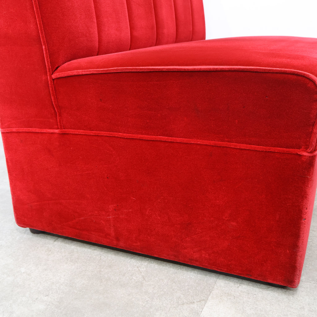 鮮やかなレッドカラーが印象的な、喫茶店・ラウンジで使用されていた2人掛けボックスソファです。